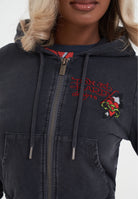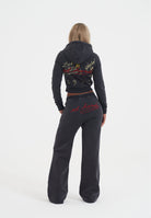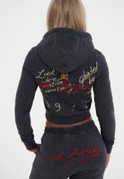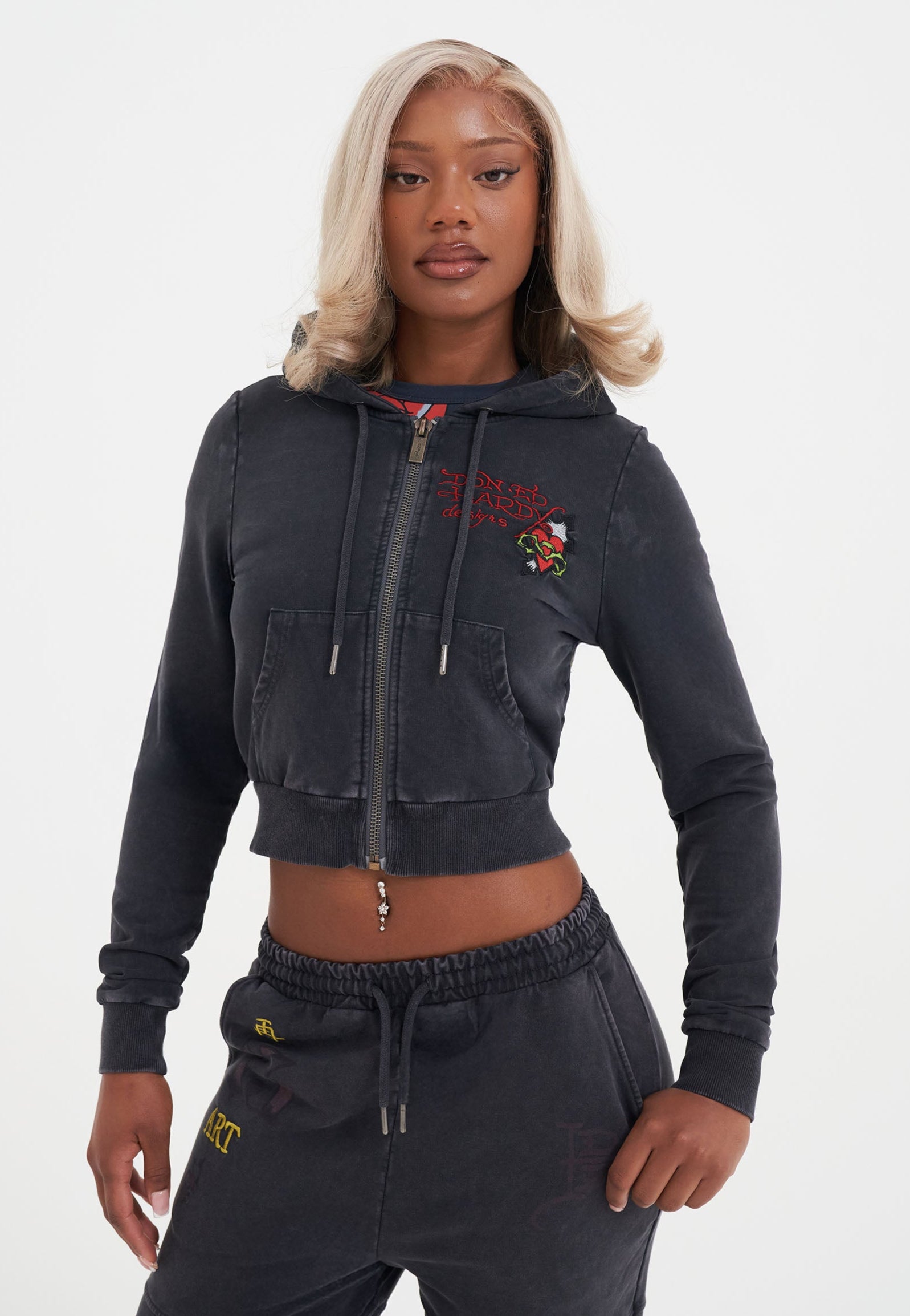WOMENS FLAMING TIGER CROPPED ZIP THRU HOODIE in Black