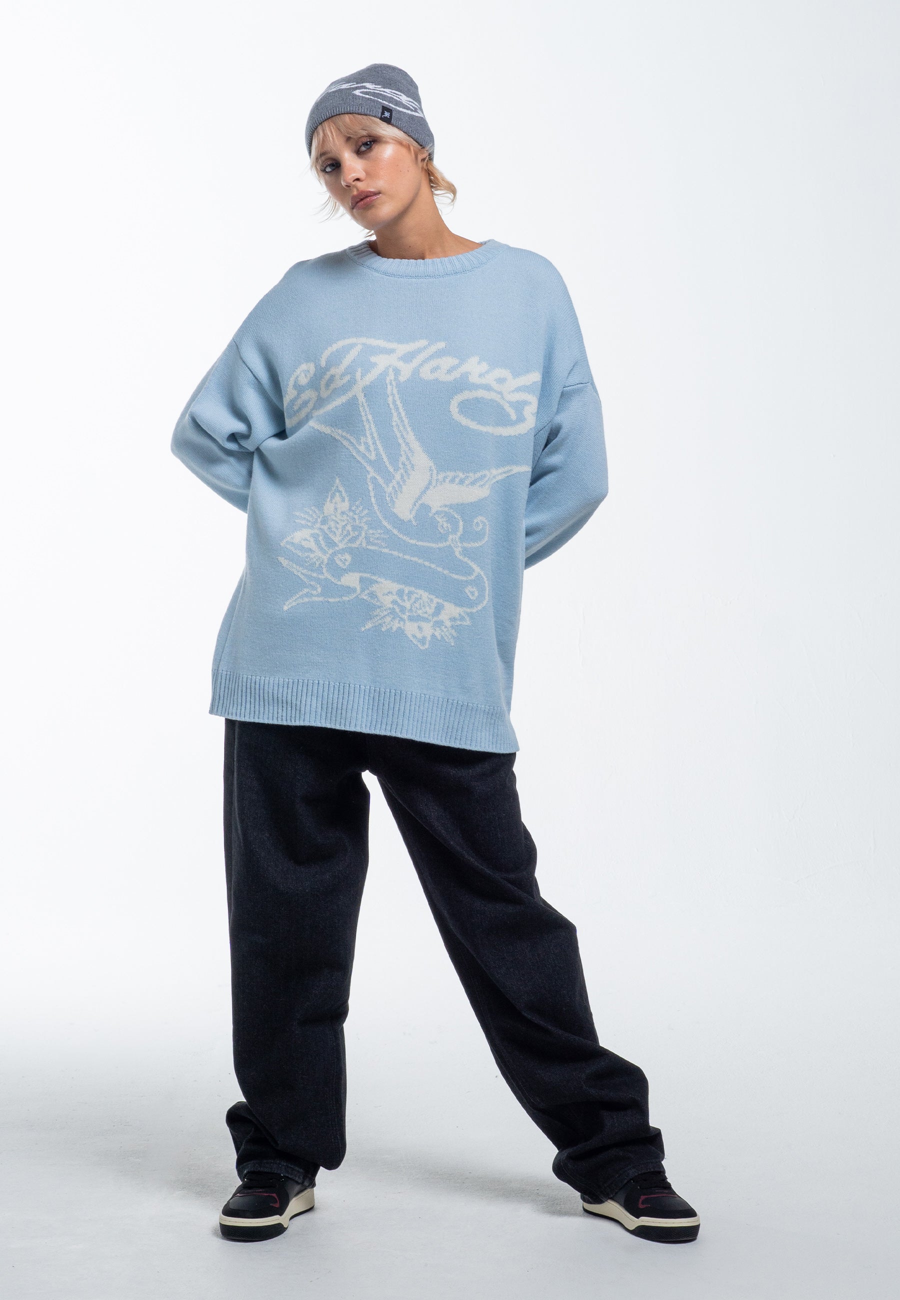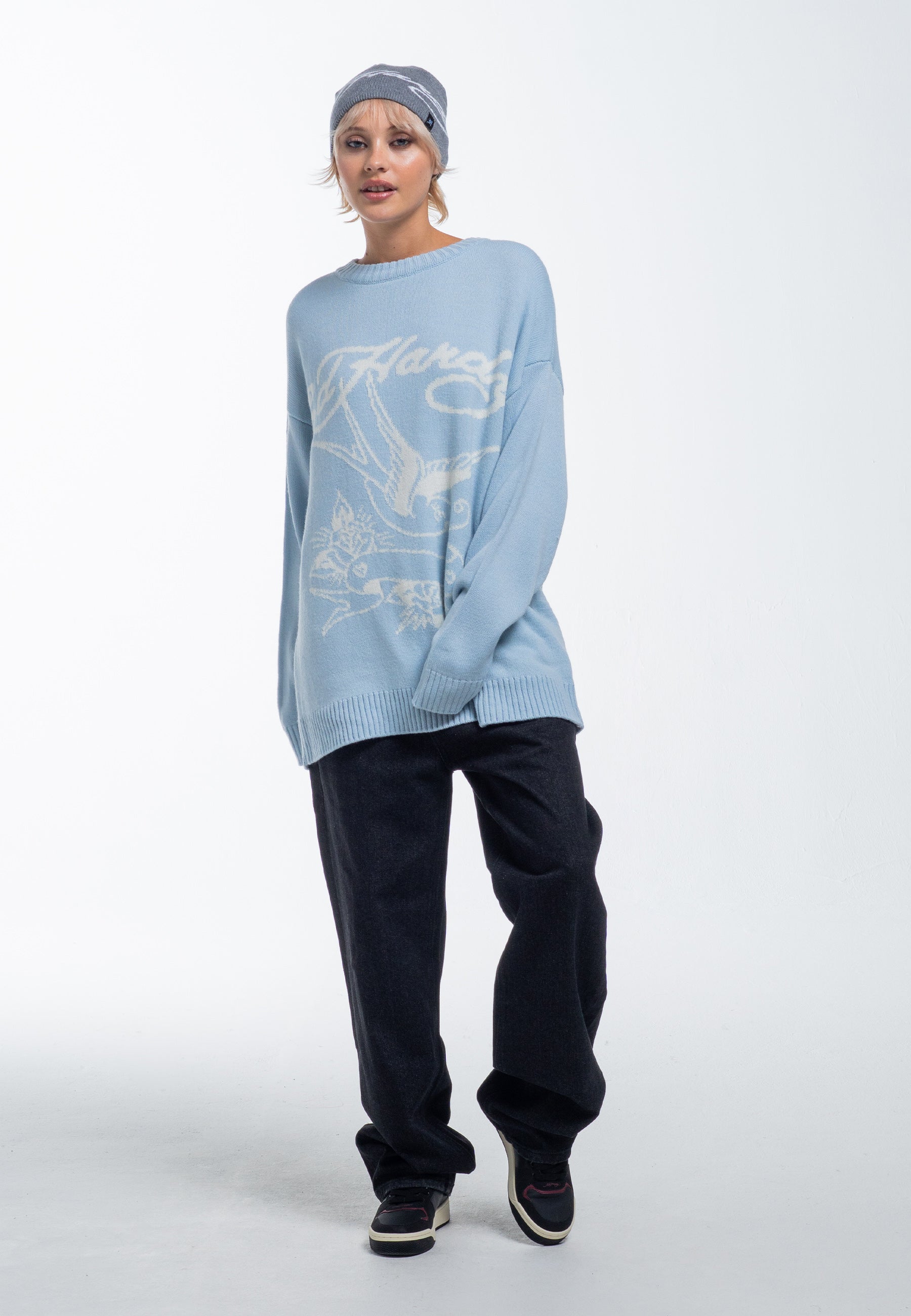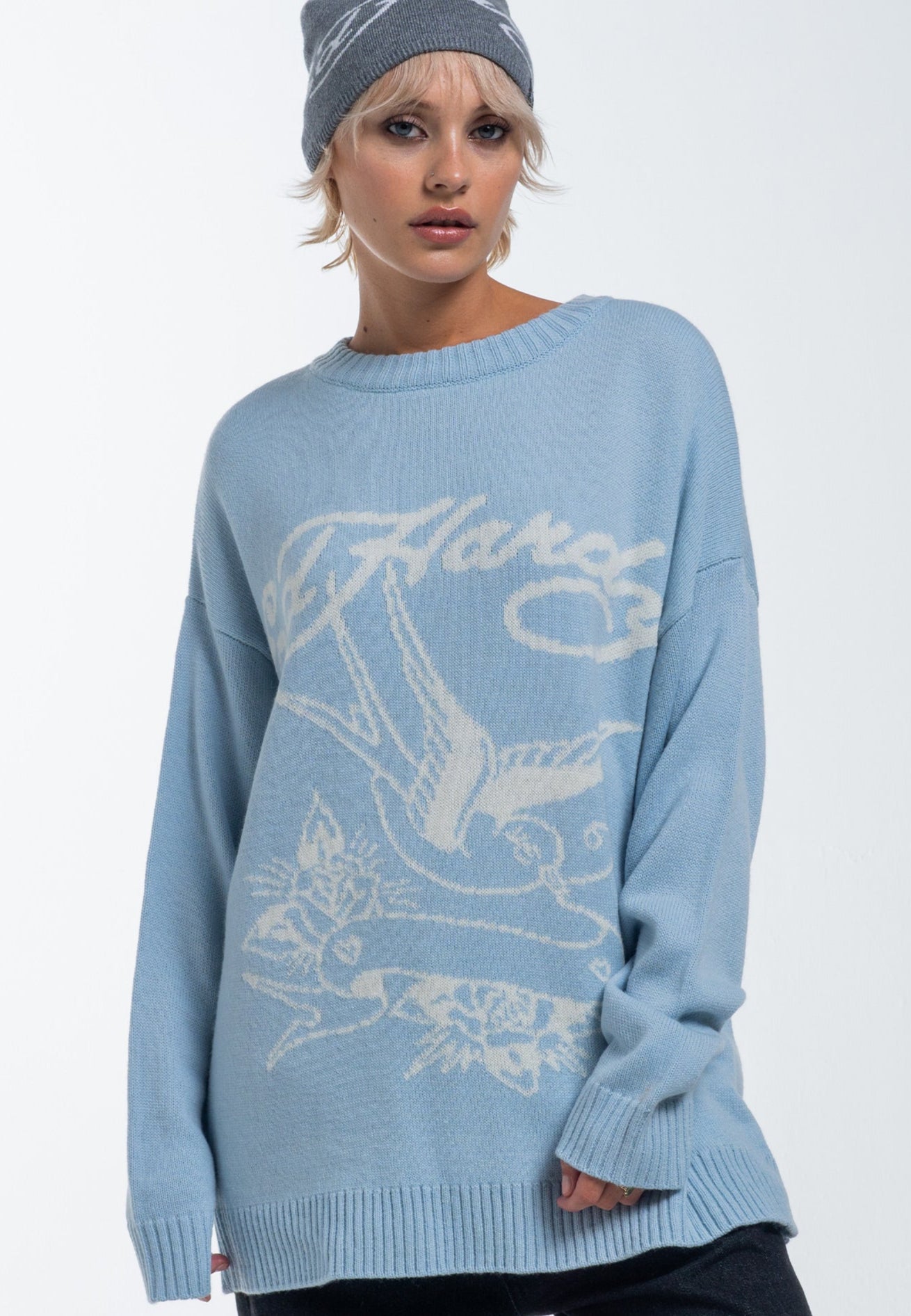 Step into your own, with our Women's Love Bird Jaquard Knitted Crewneck Jumper, an undeniable standout from Ed Hardy's A/W Collection.