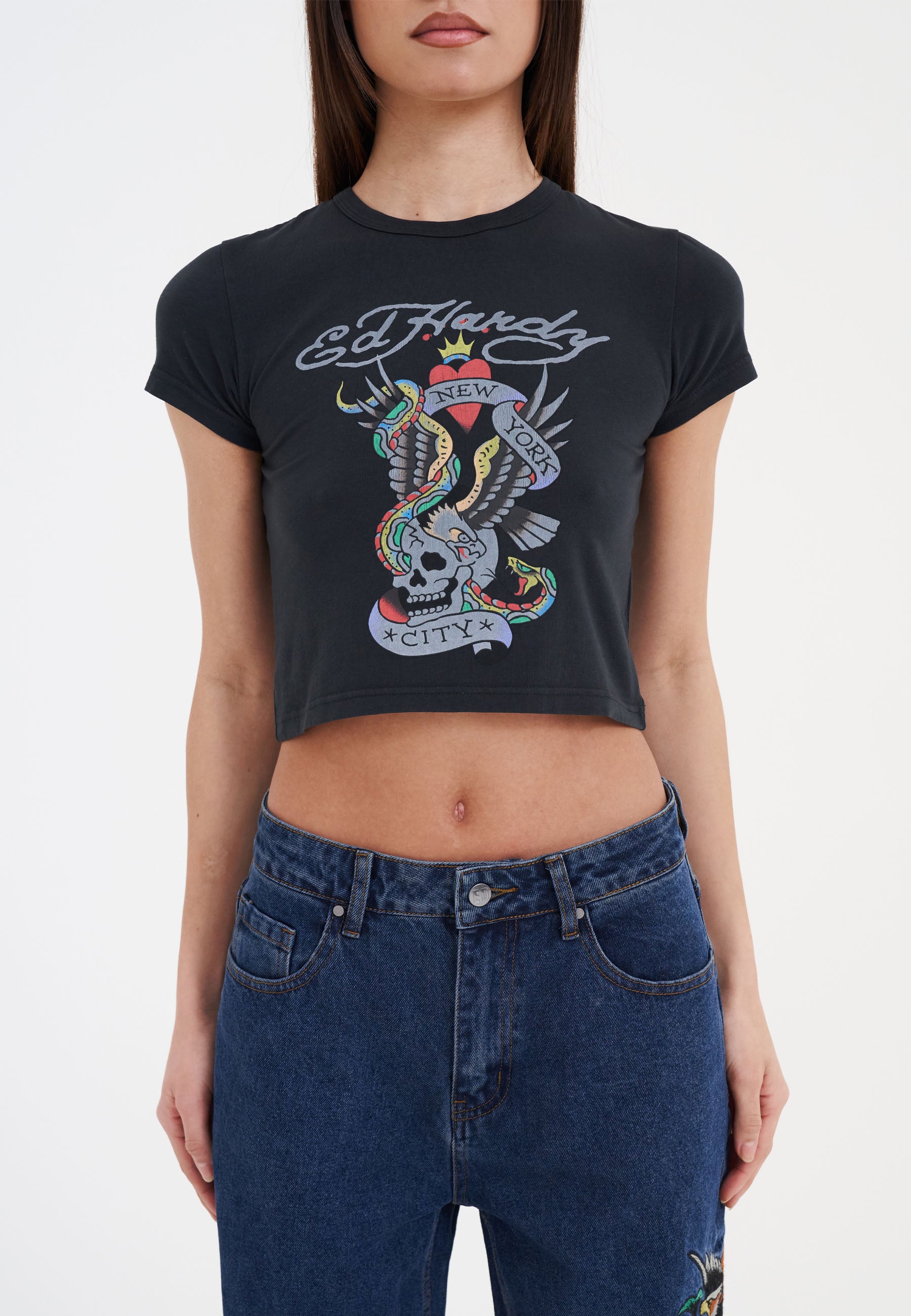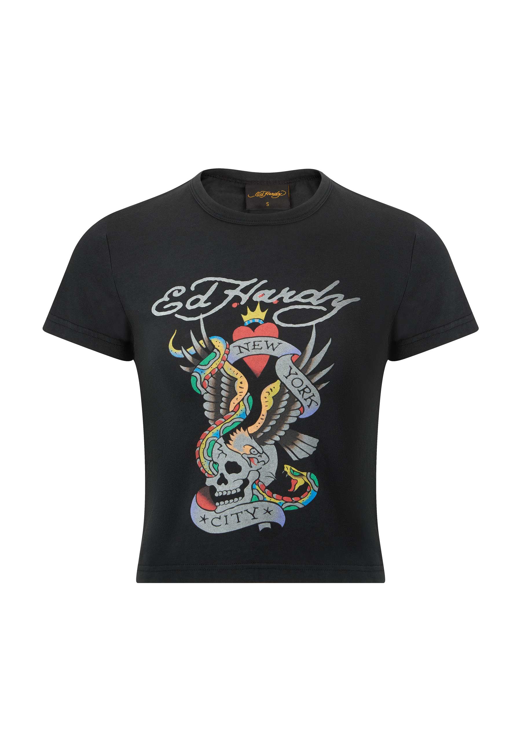 Experience the Legendary New York City Cropped Baby T-Shirt, showcasing Ed's most iconic graphic design.