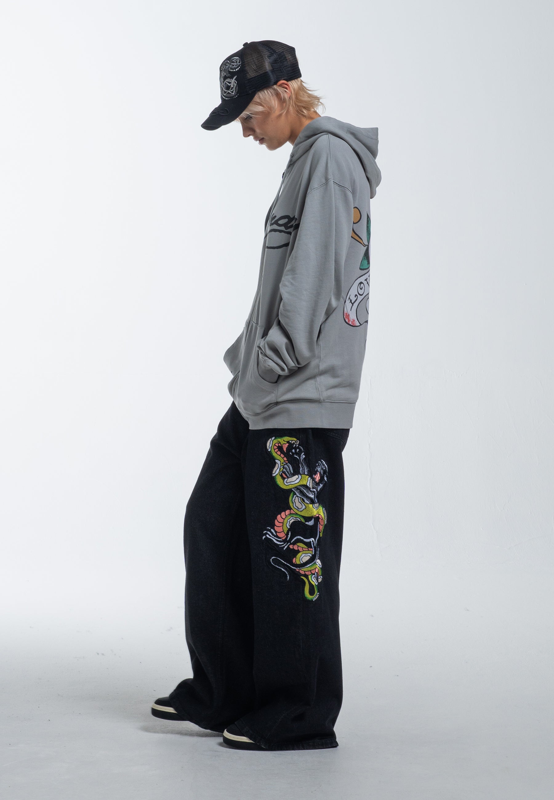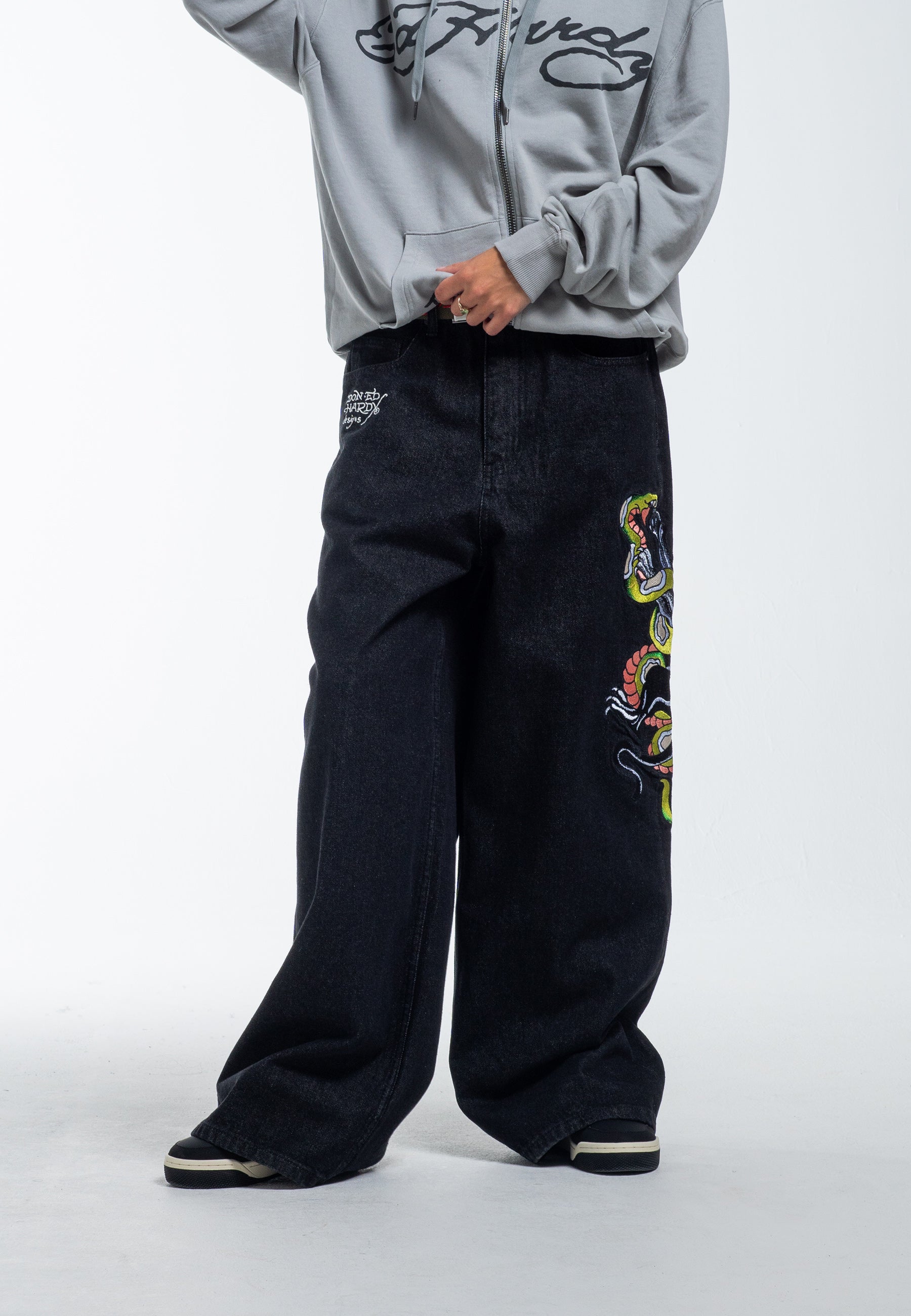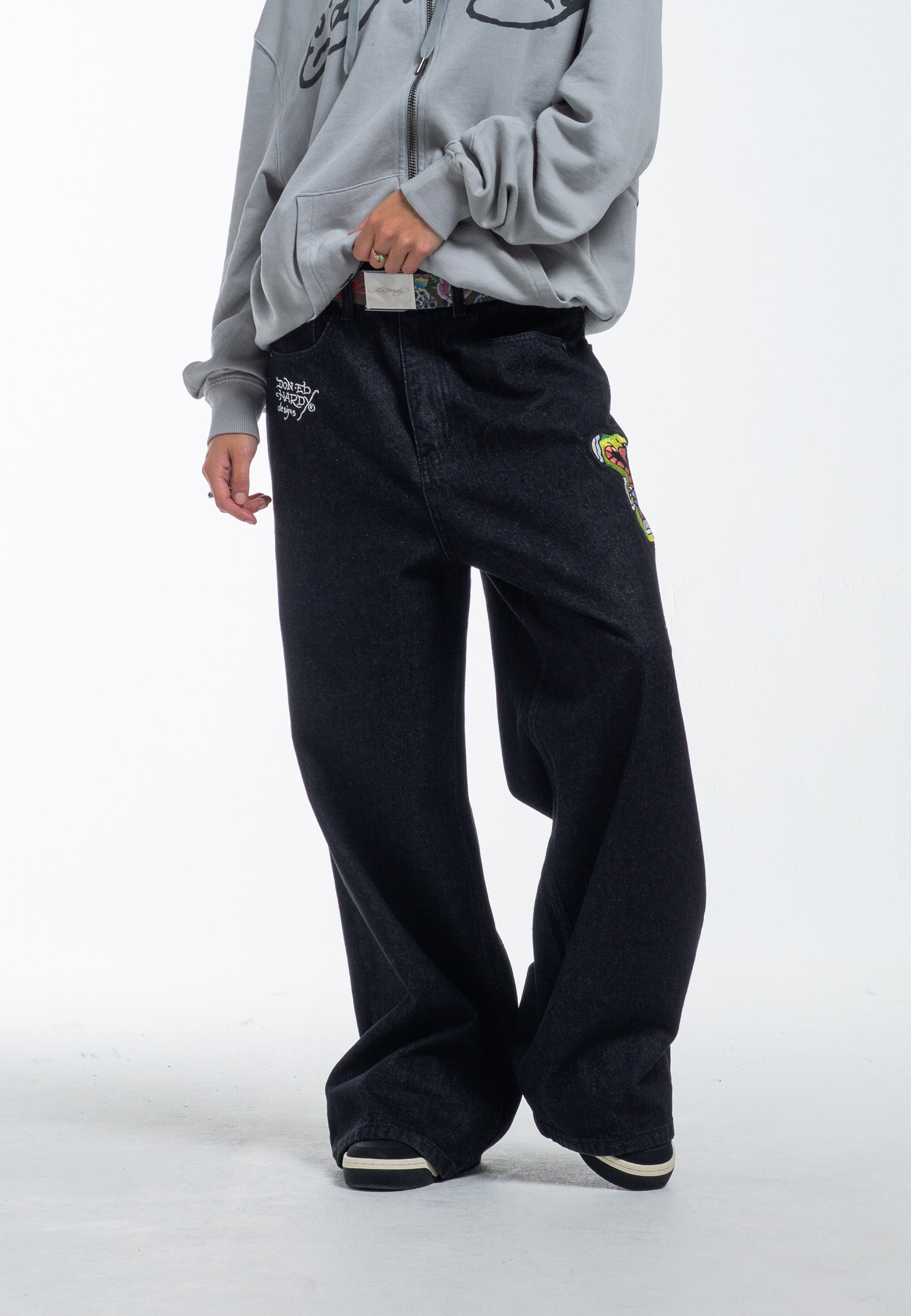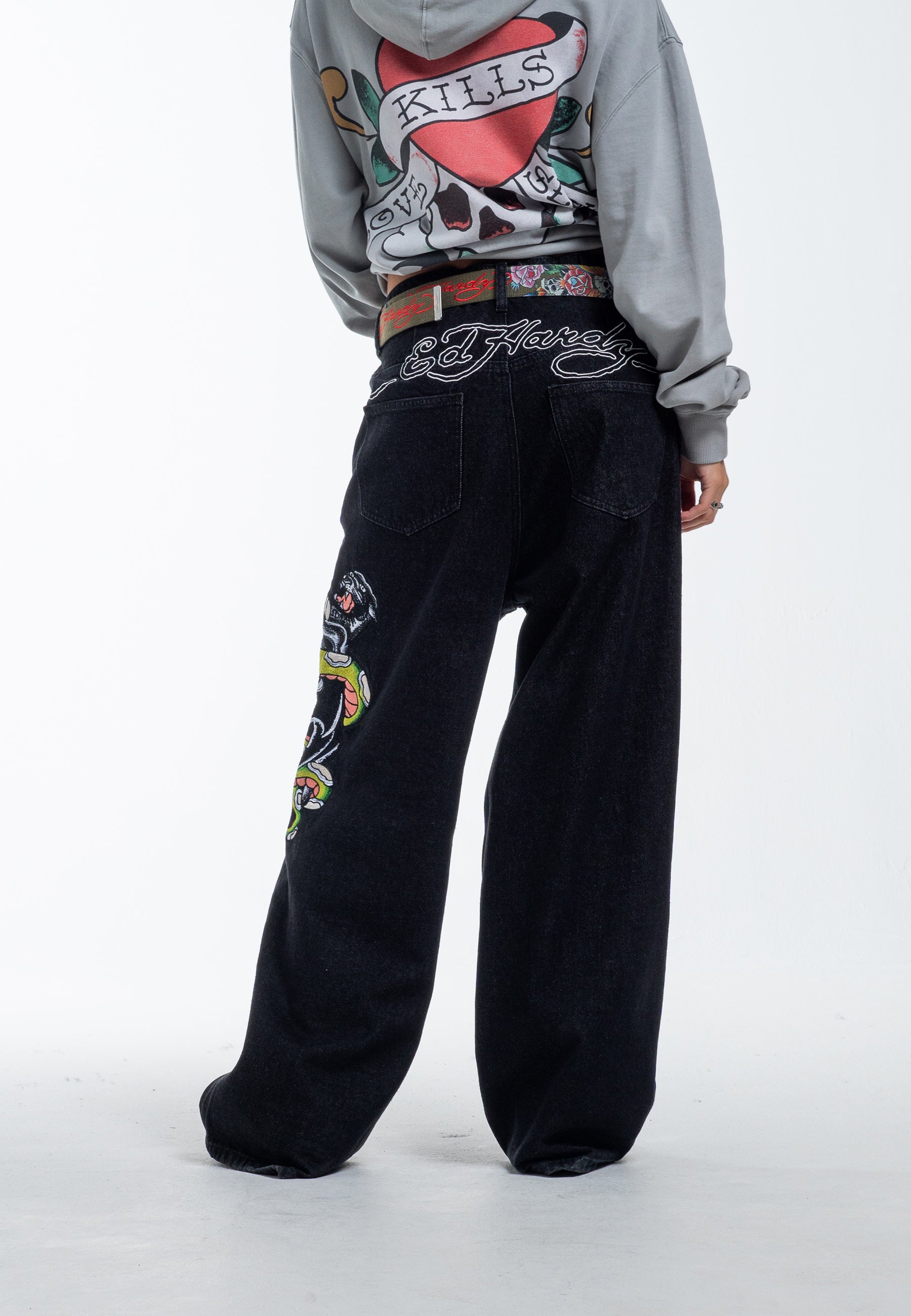 Womens Panther Battle Xtra Oversized Denim Trousers Jeans - Black