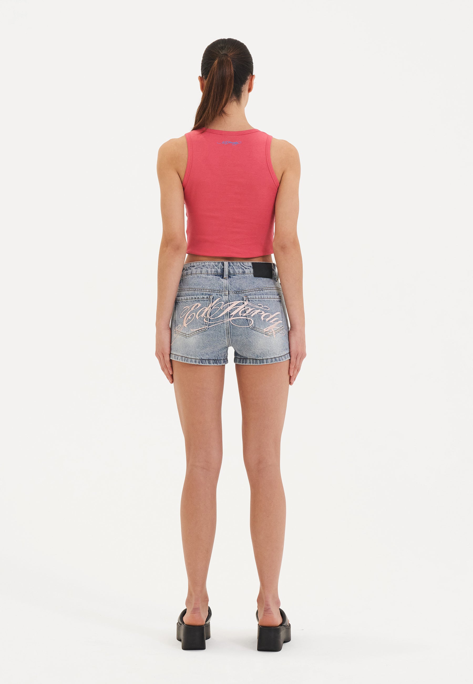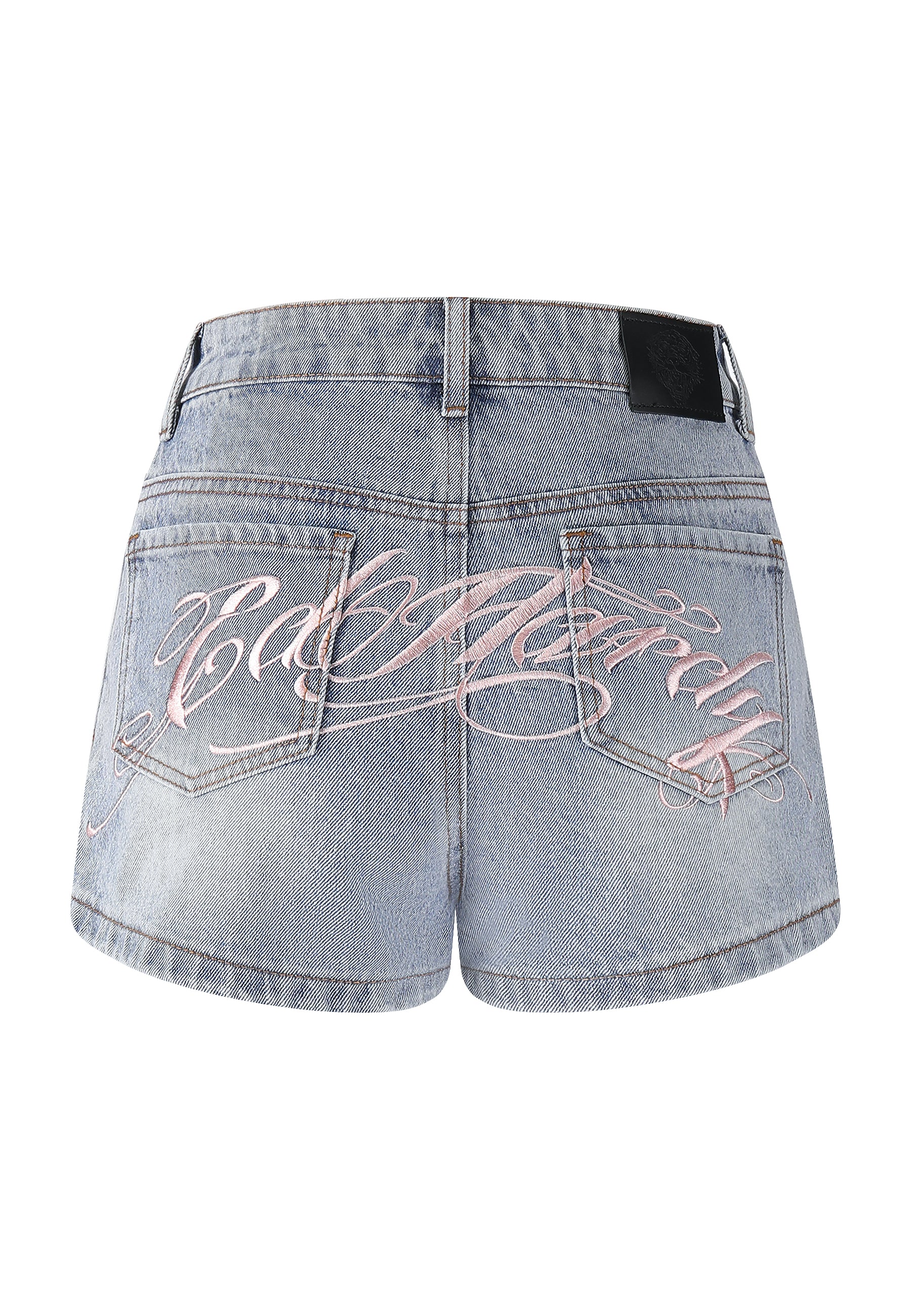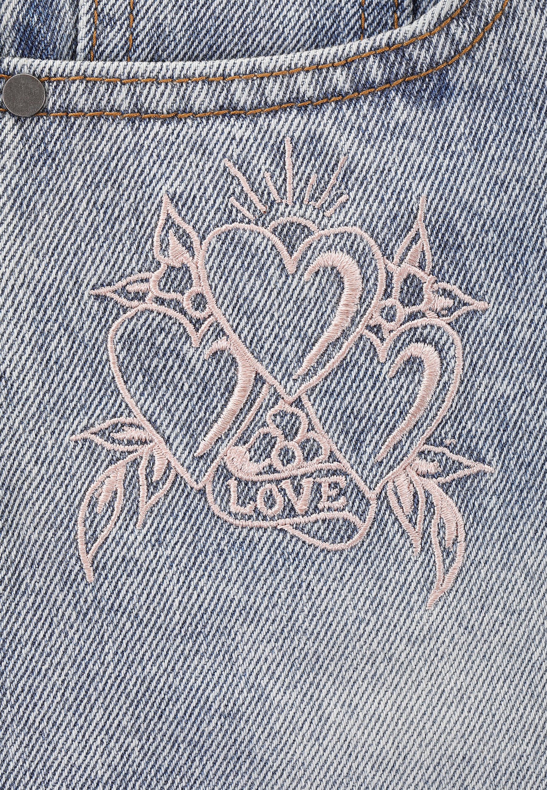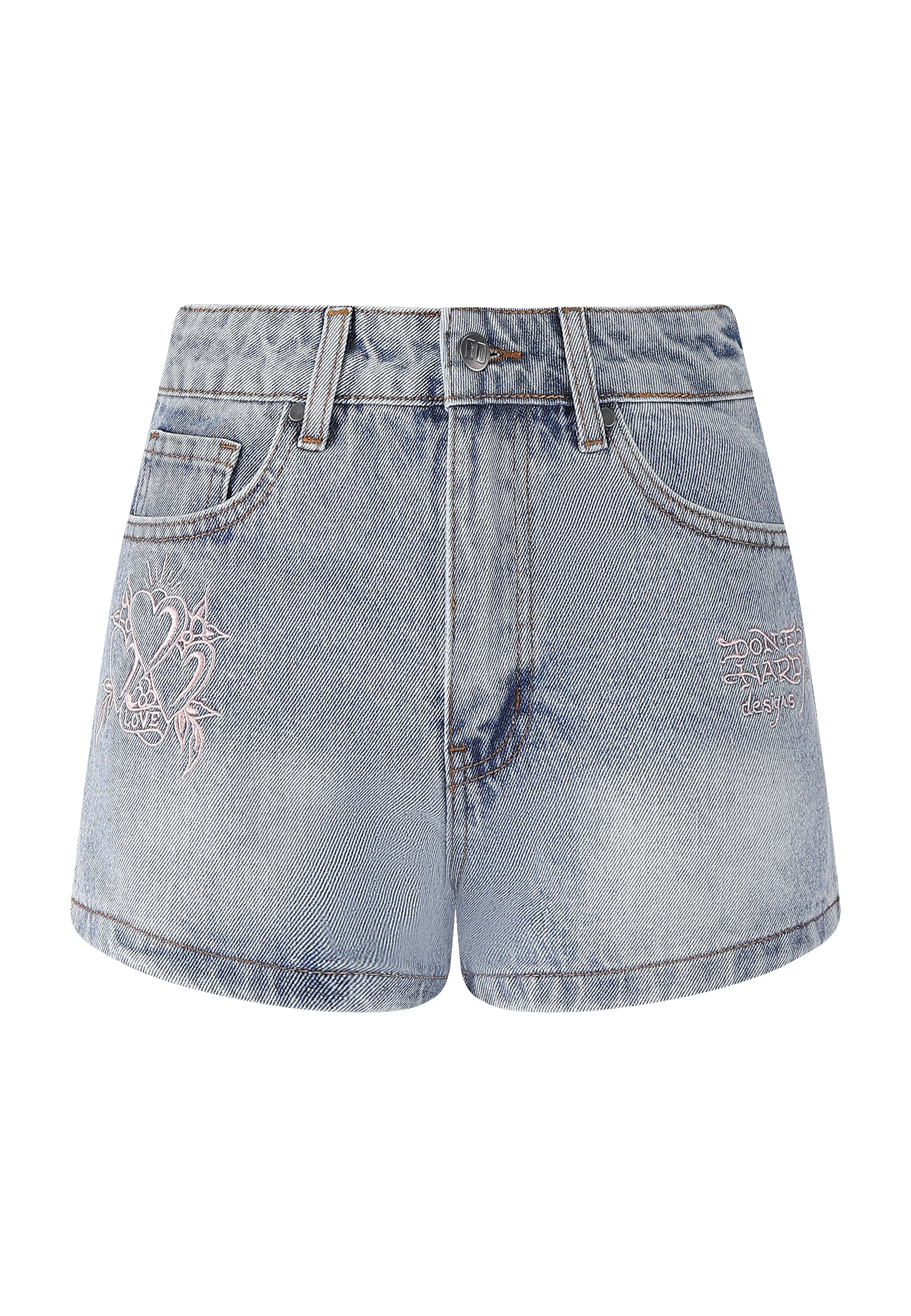 Womens Triple Heart Denim Jorts Shorts - Blue