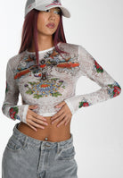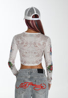 Womens Koi Paradise Mesh Long sleeve T-Shirt - White