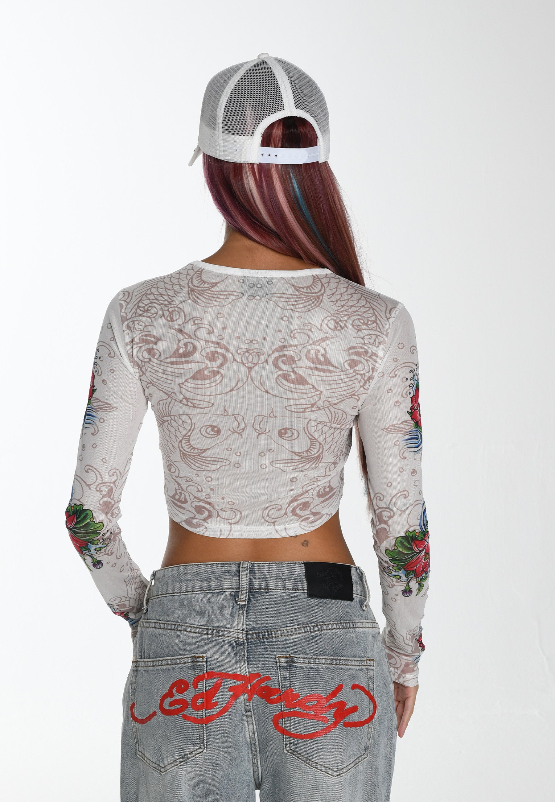The beautiful Koi fish has shaped Ed's artwork for decades, now for AW23, The Koi Paradise Mesh Long-Sleeve T-Shirt captures his enduring muse.