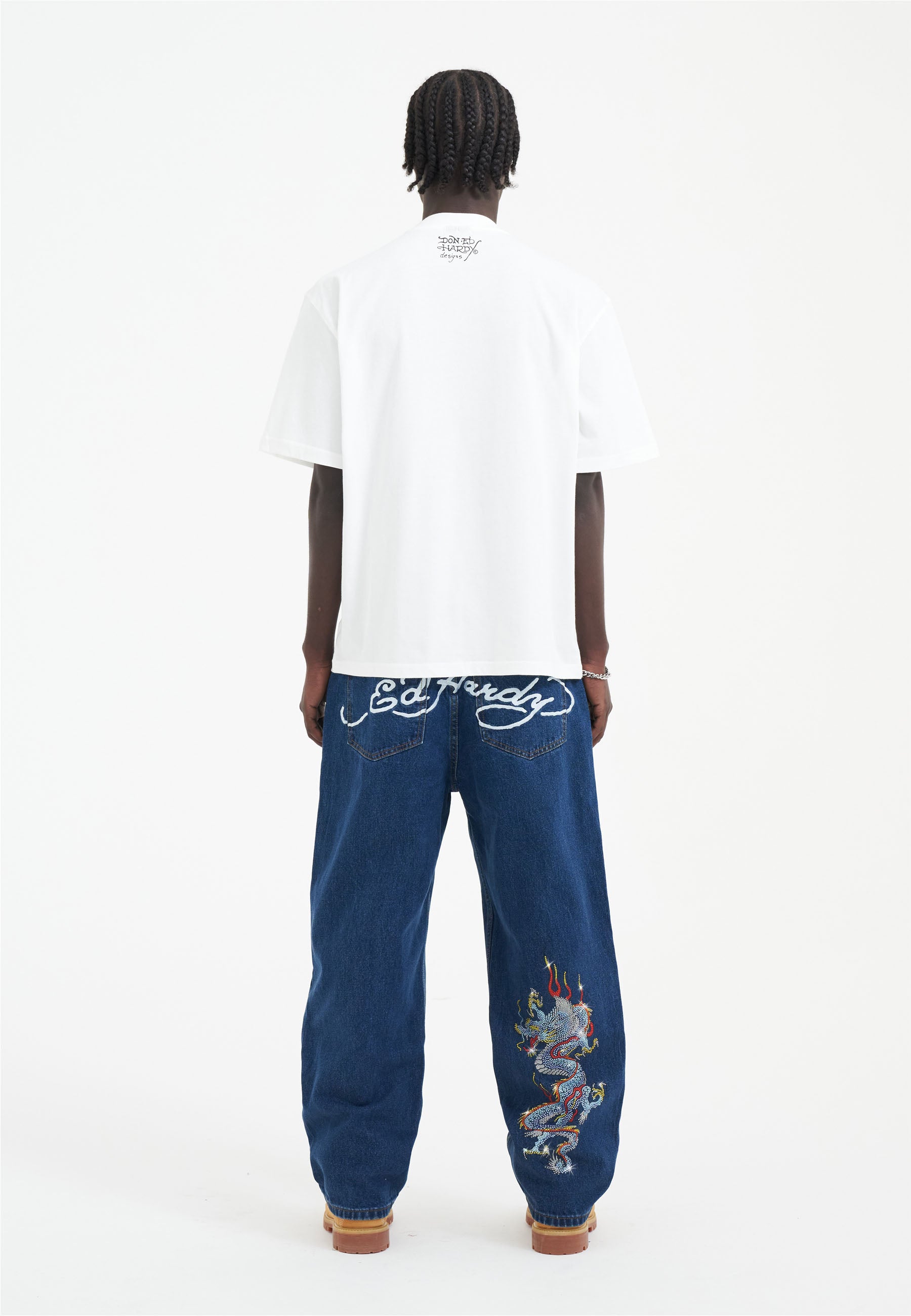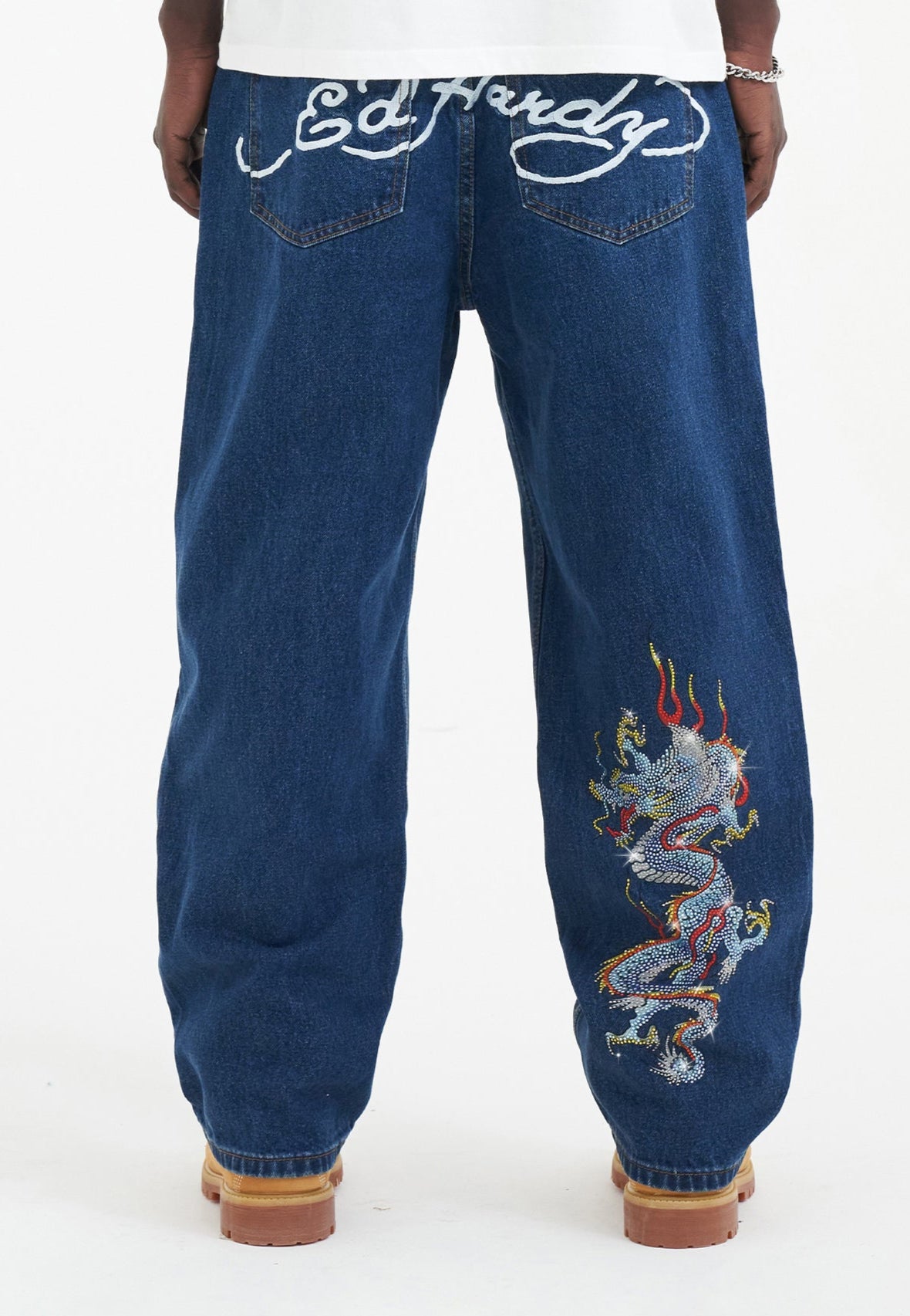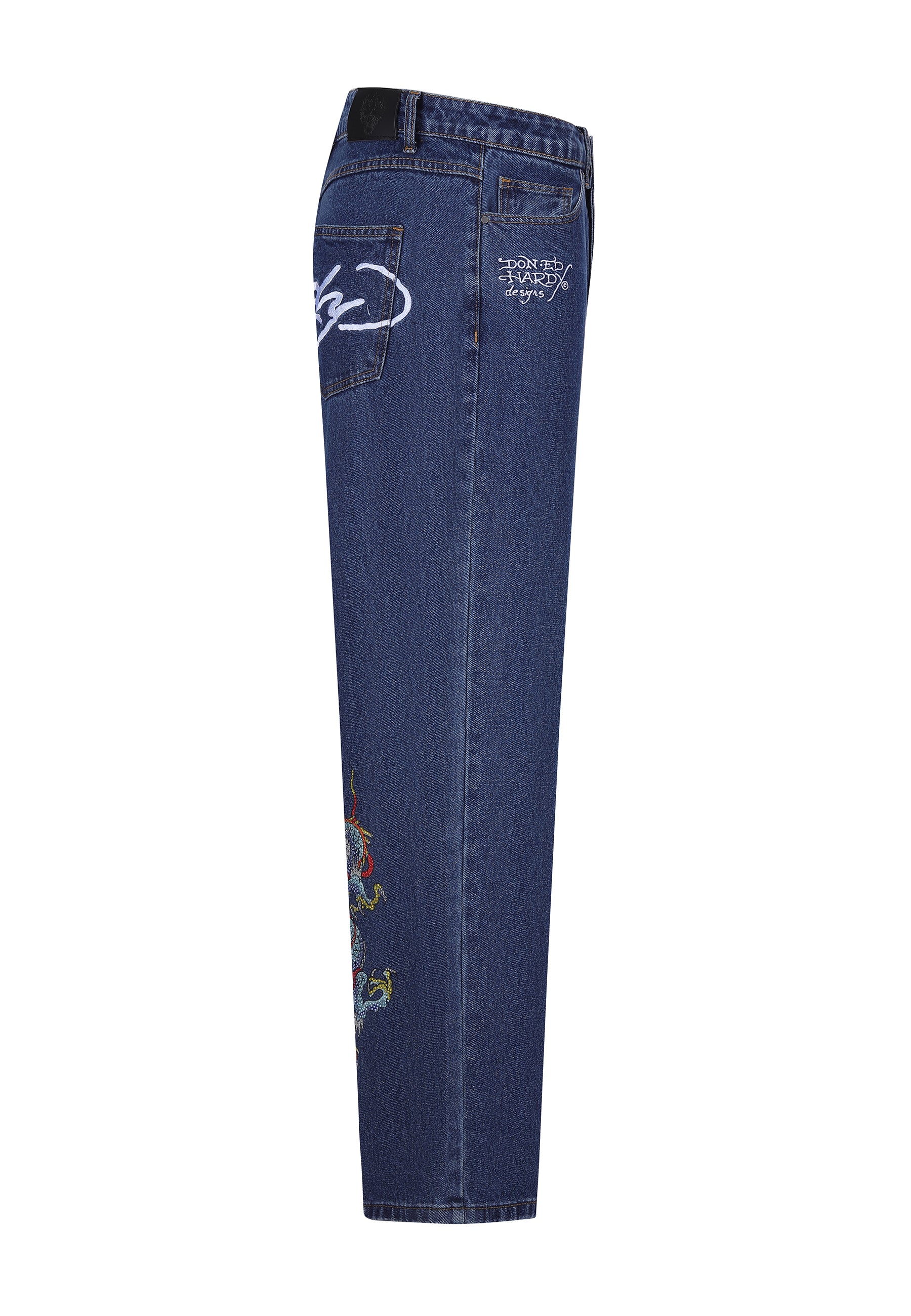 Meet the Battle Dragon Jean, a vibrant testament to innovative design, featuring high-impact, full-colour diamante artworks across the leg and reverse.