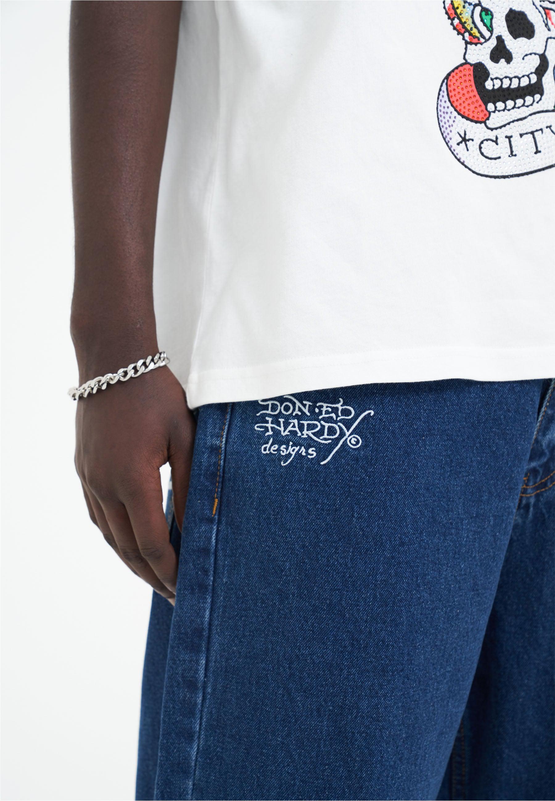 Mens Battle-Dragon Diamante Denim Trousers Jeans - Indigo