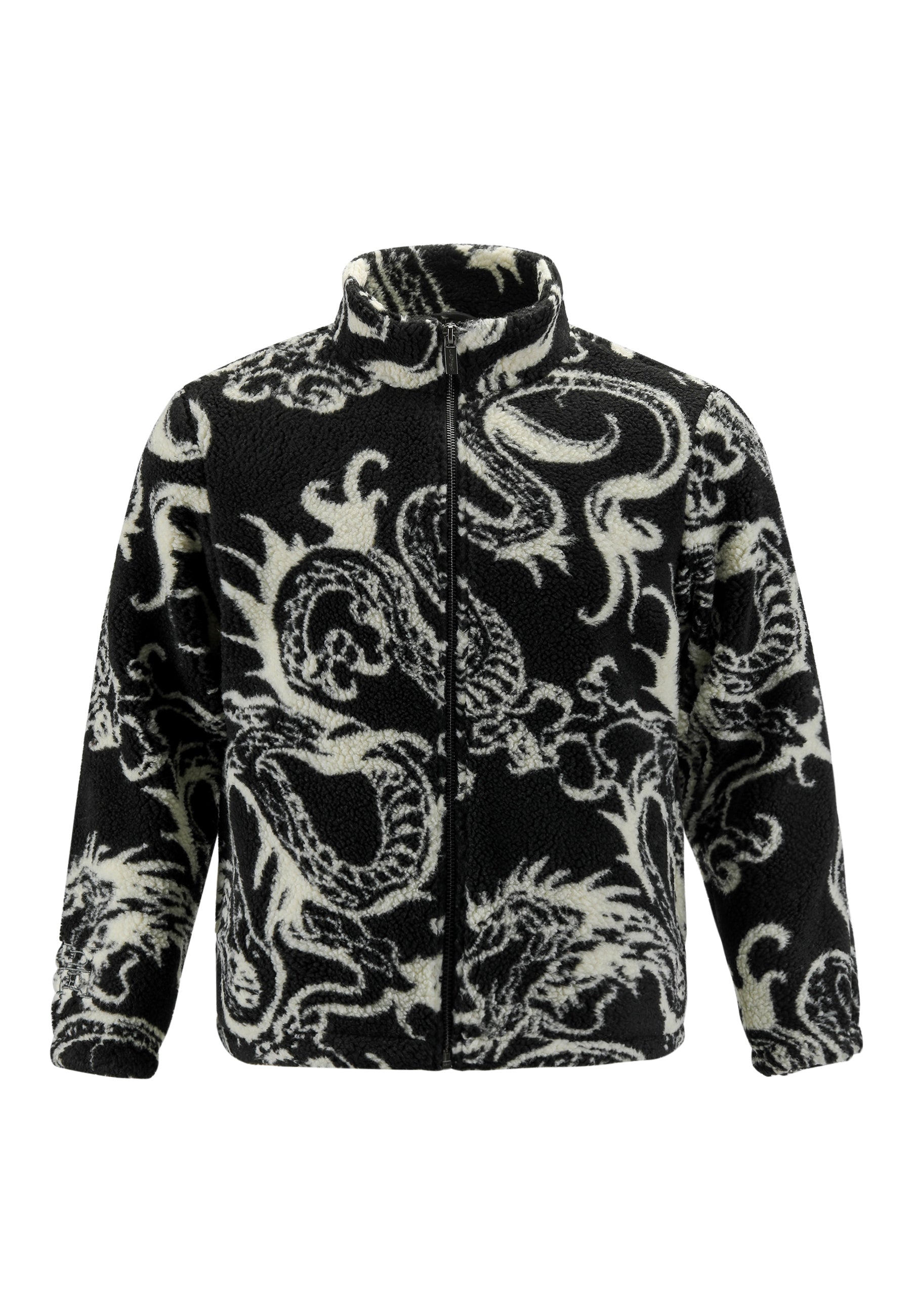 Mens Drag Battle Aop Fleece Jacket - Black/Beige
