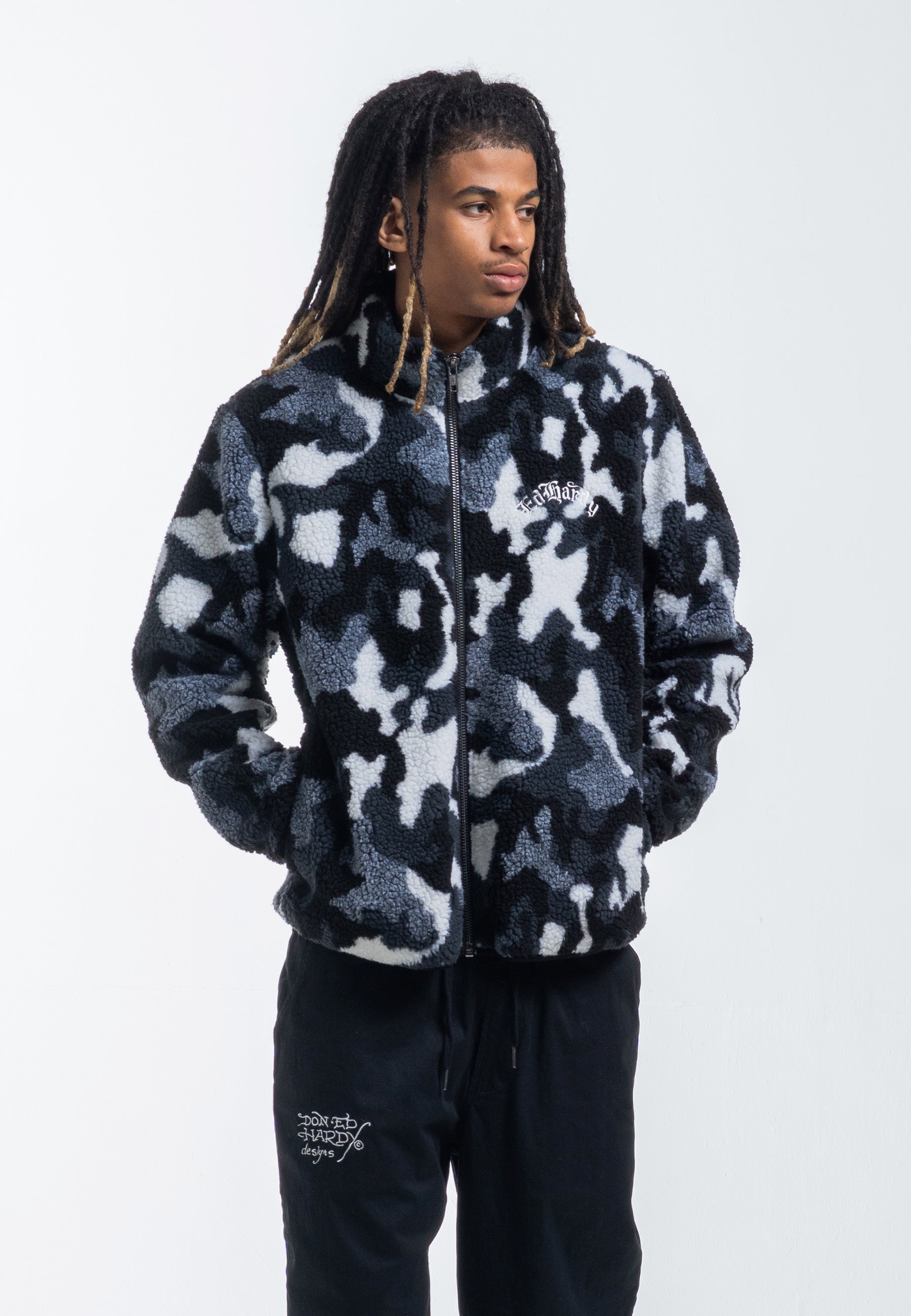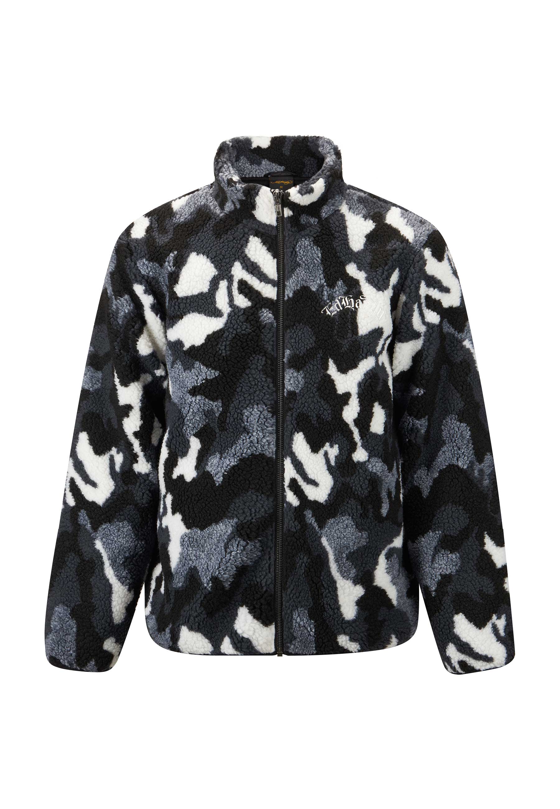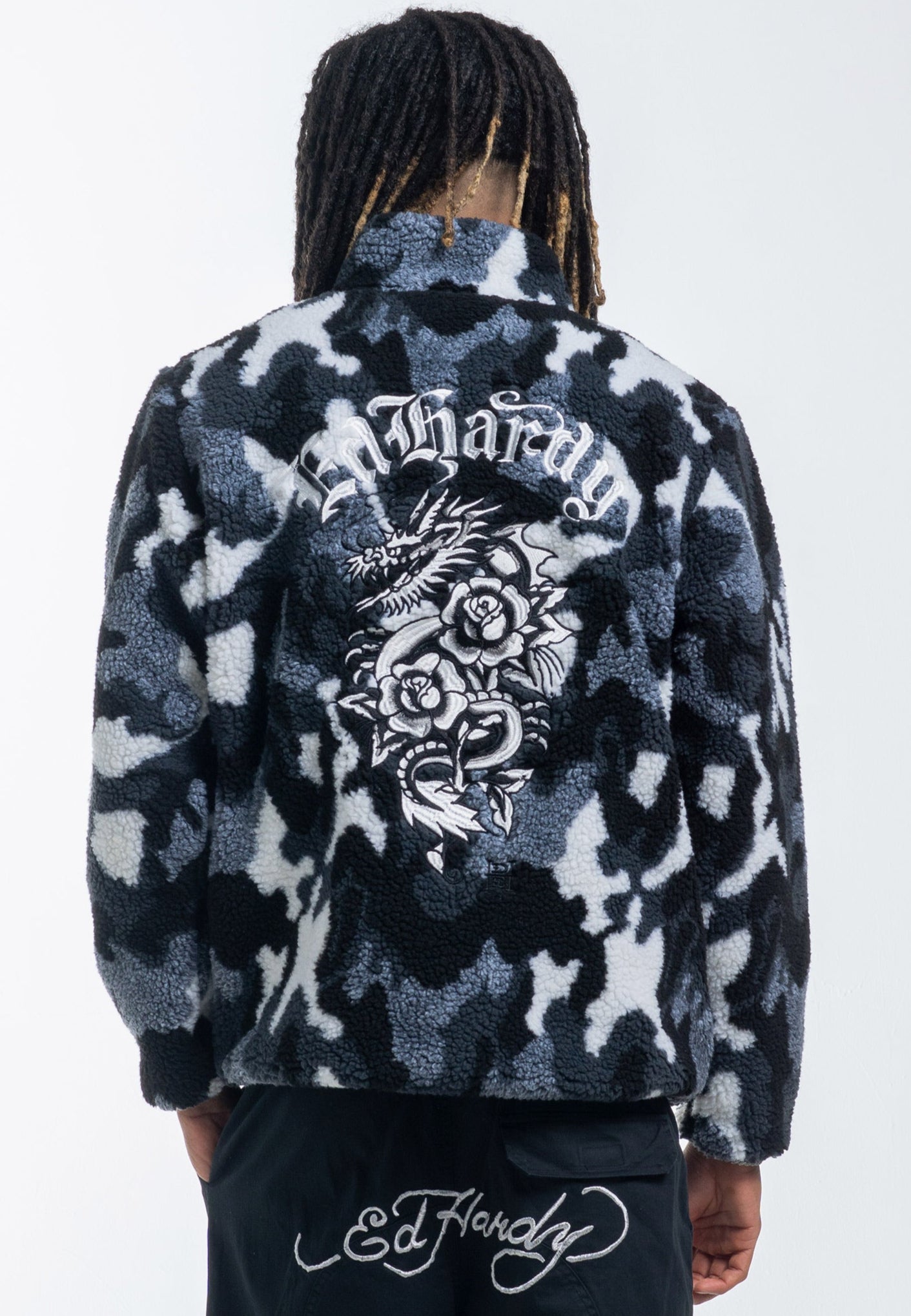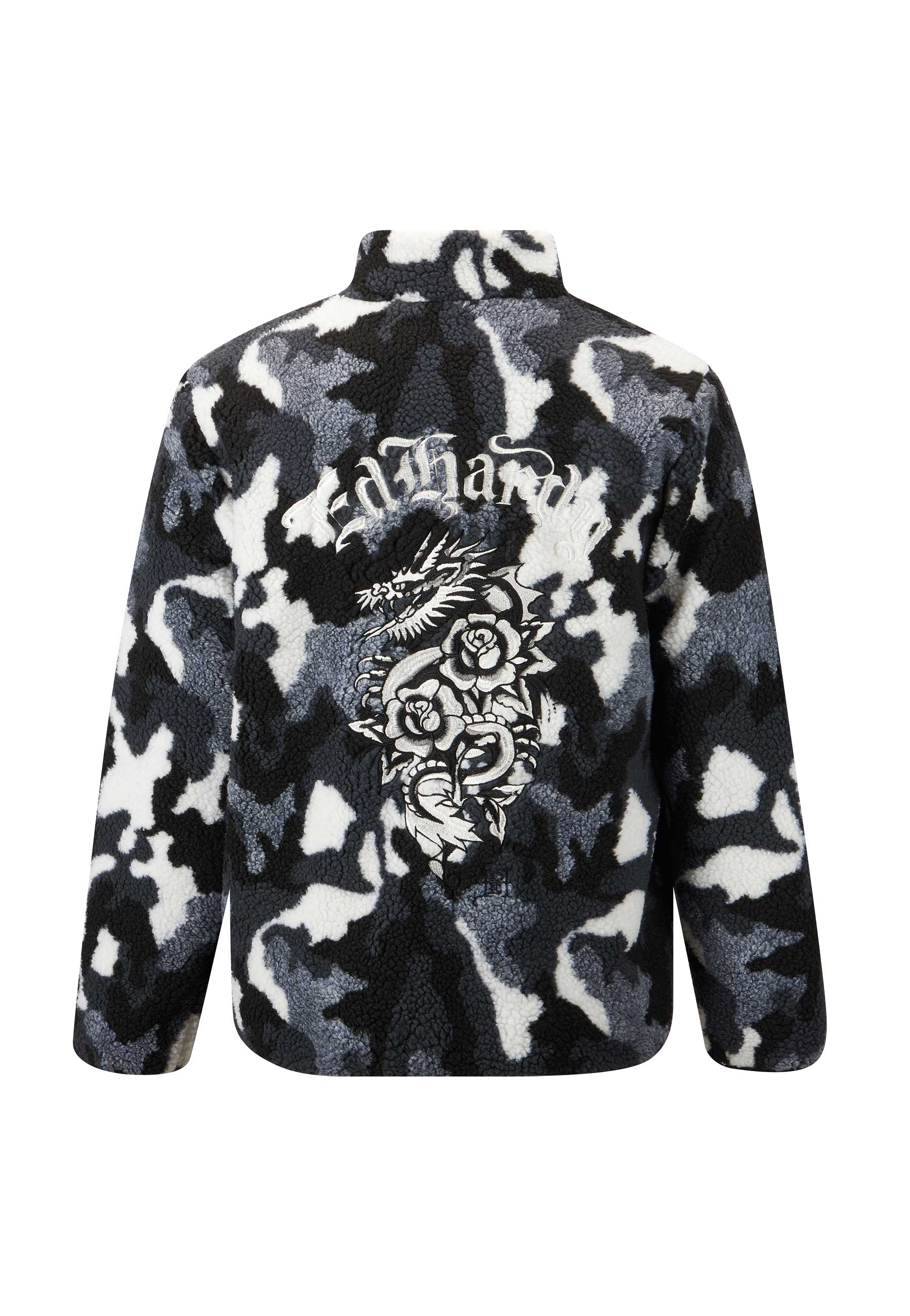 Mens Dragon & Rose Camo Zip Thru Borg Fleece Jacket - Grey Camo