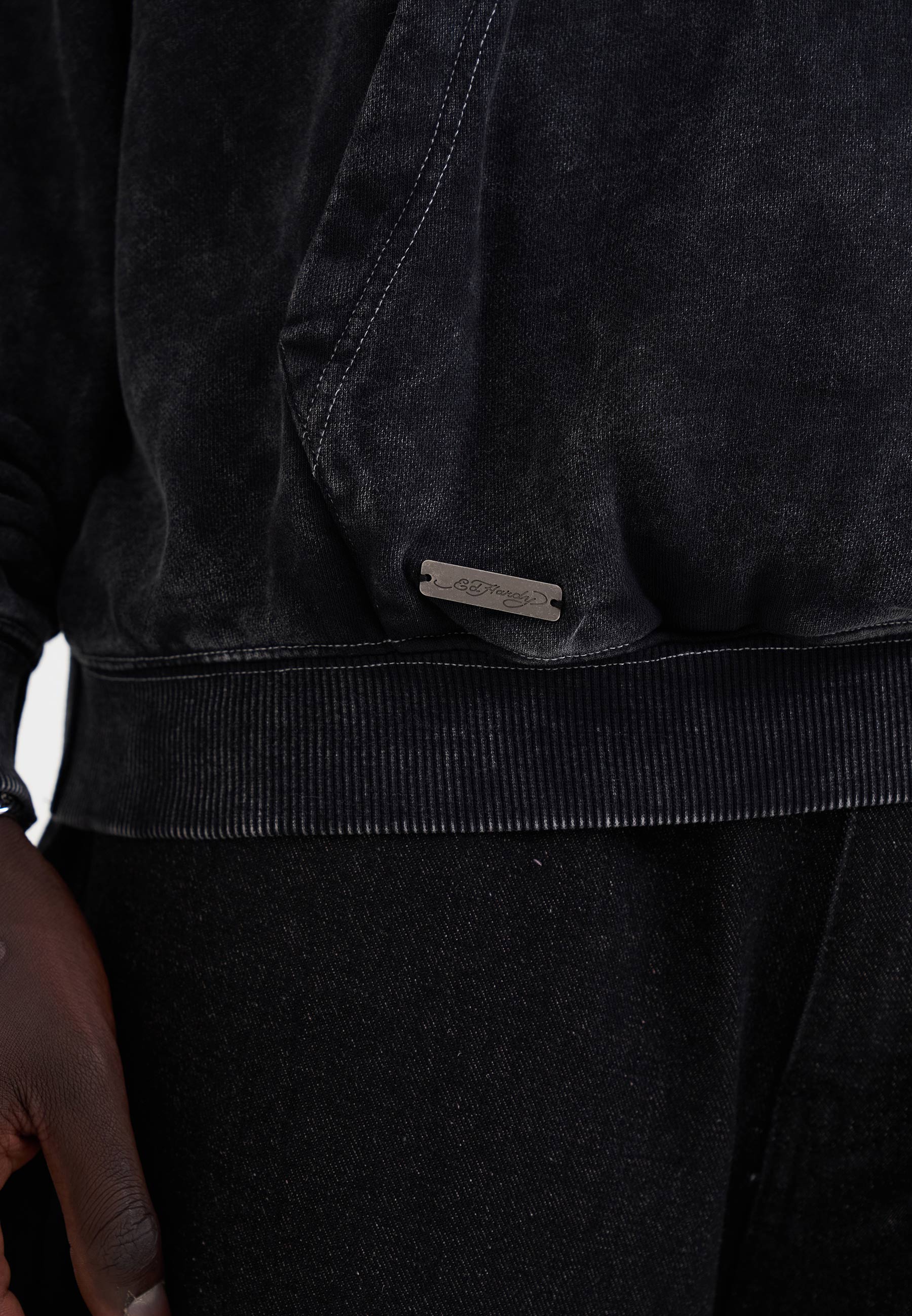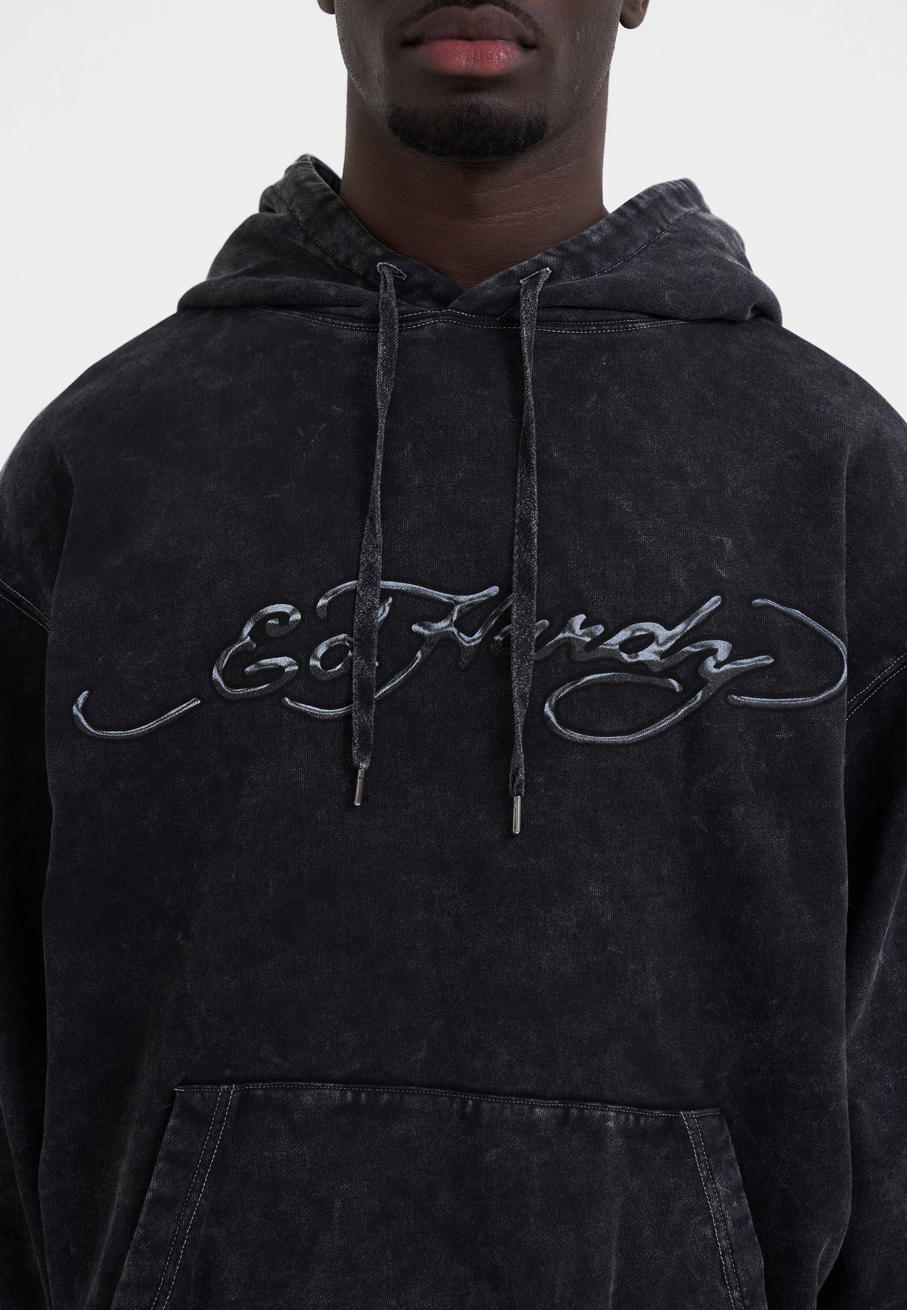 - Faded Ed Hardy print across chest
