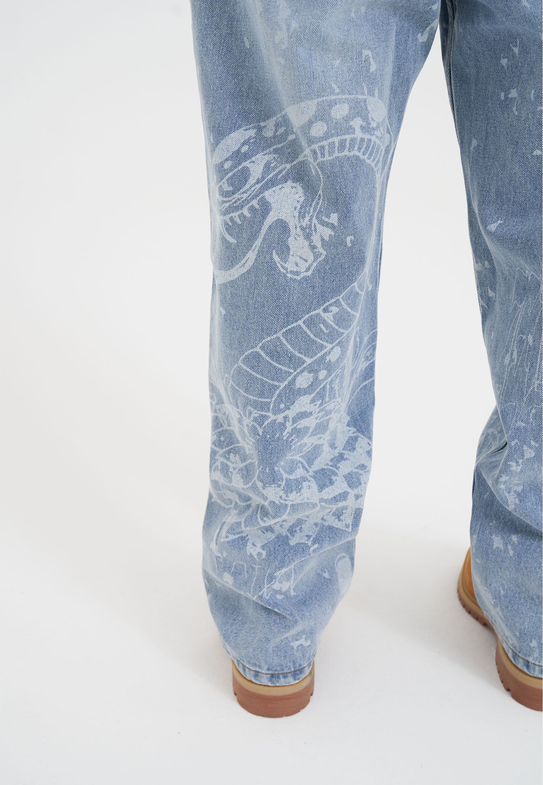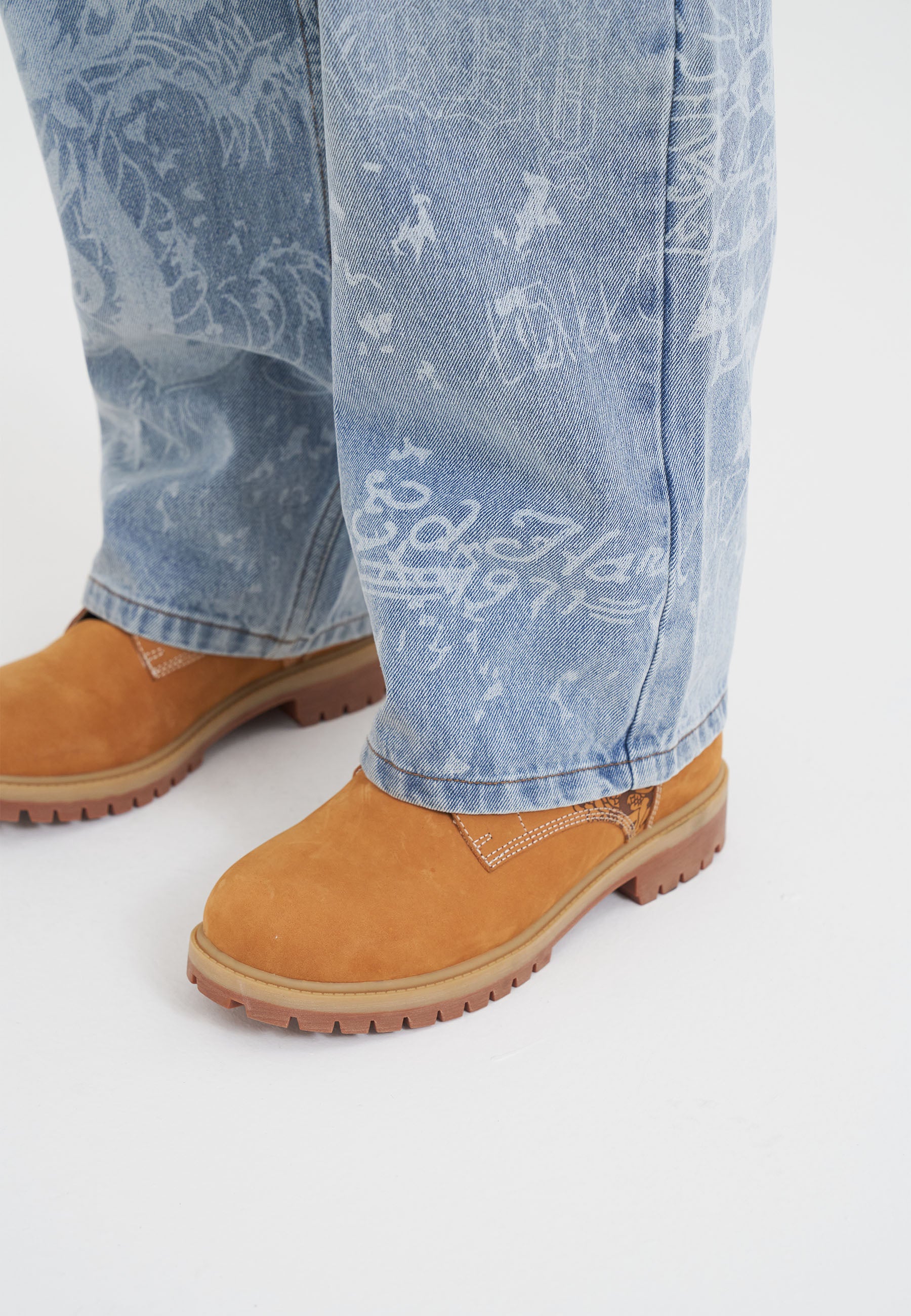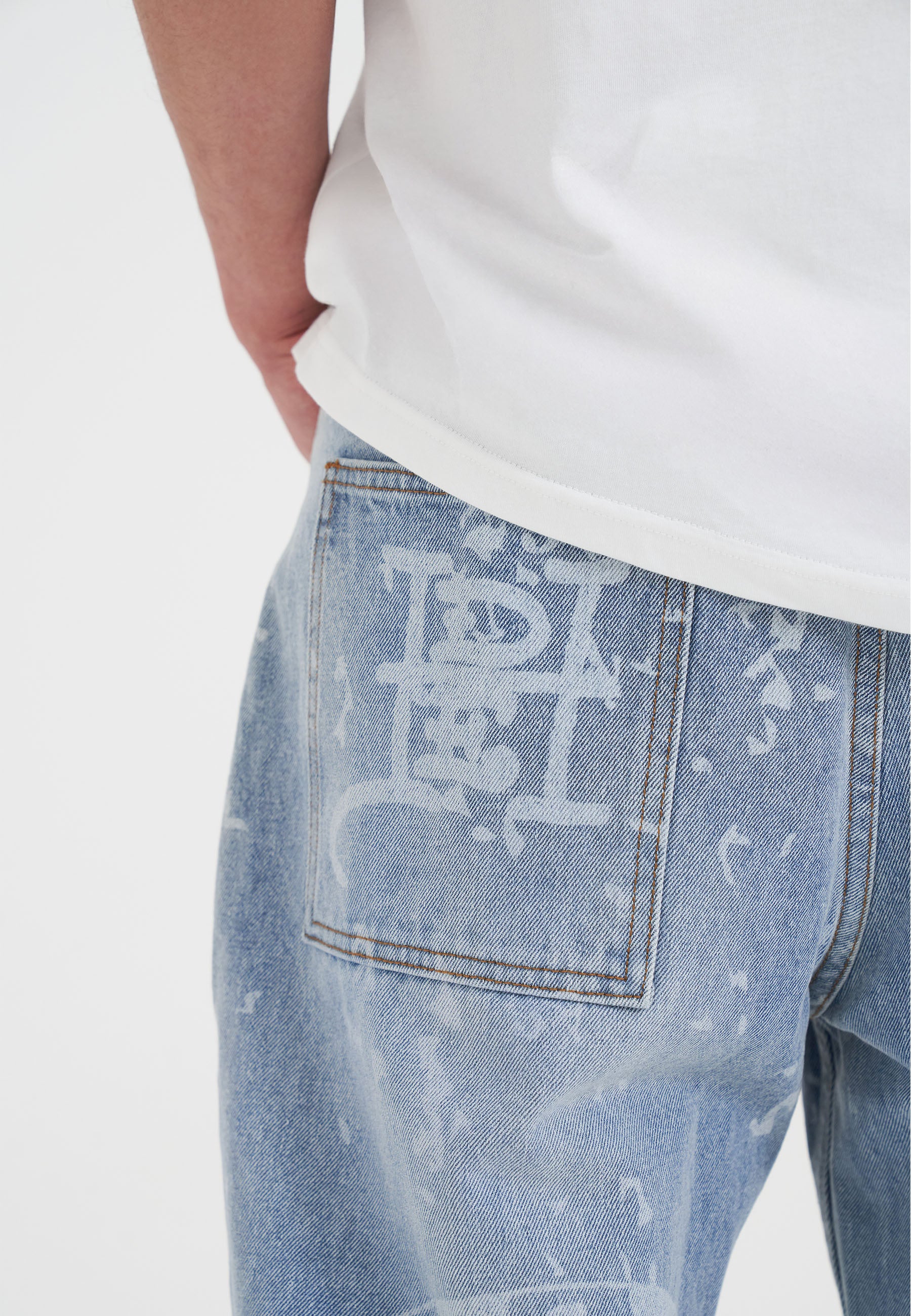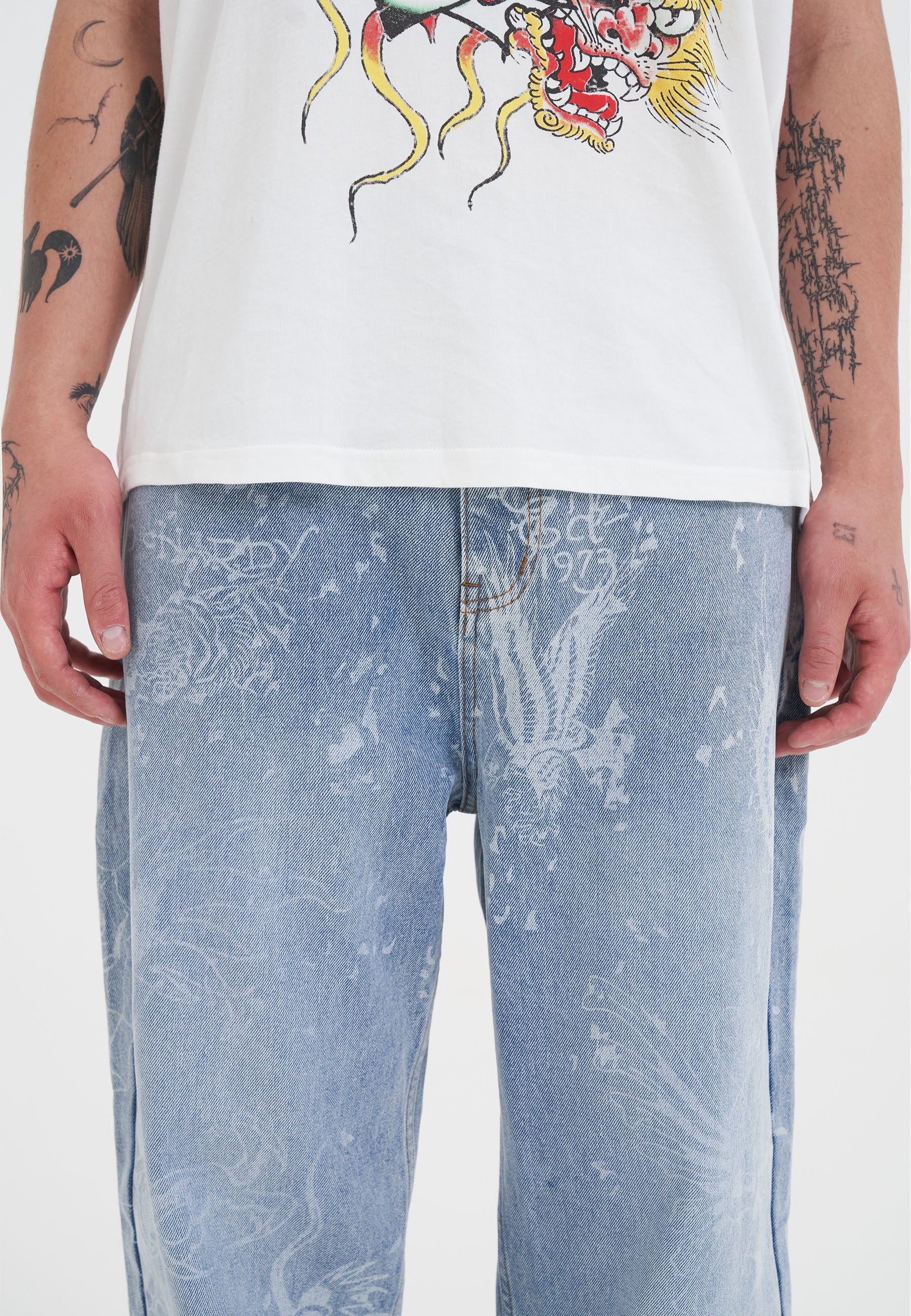 Mens Gothic Multi Graphic Jeans - Mid Blue