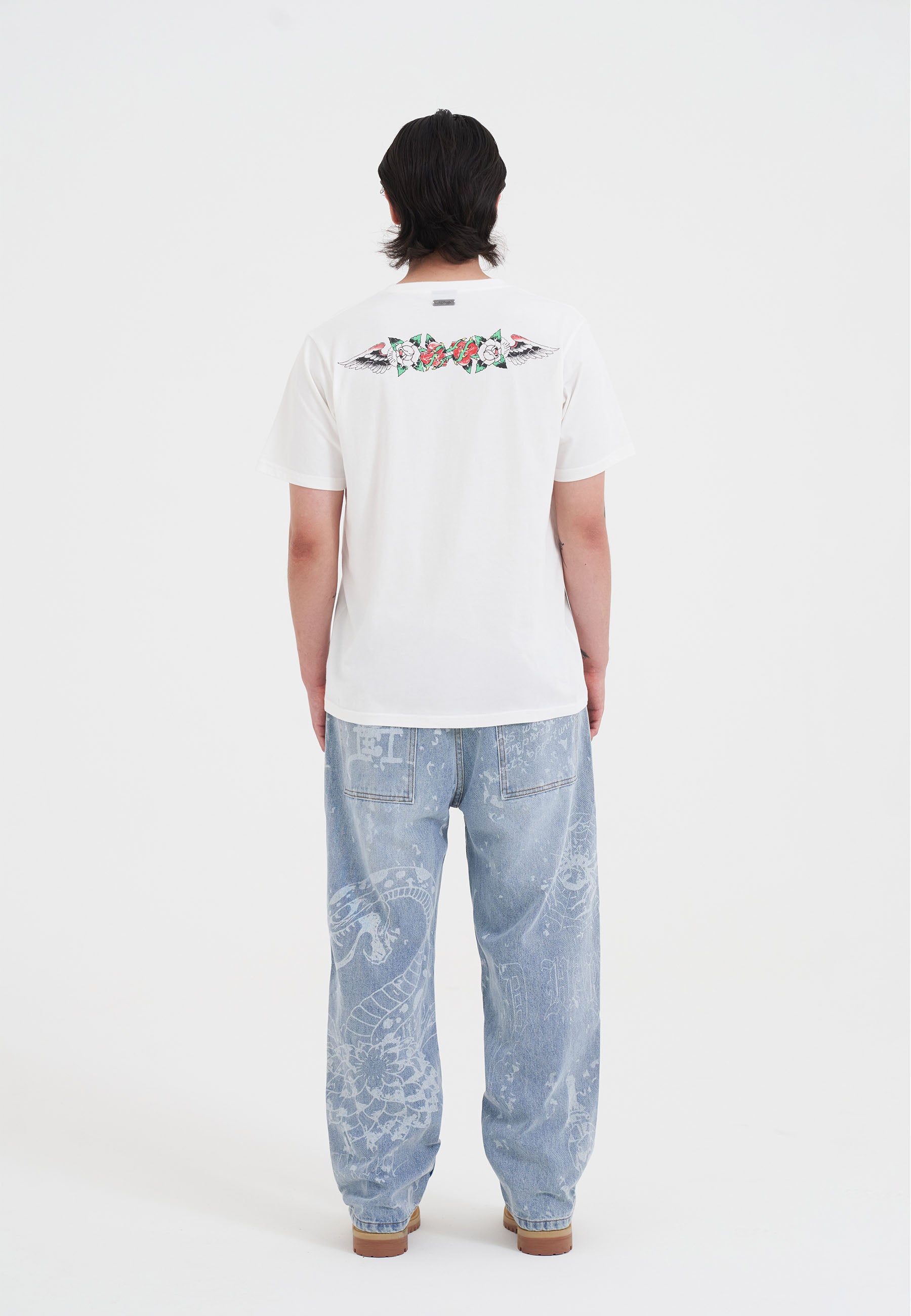 Mens Gothic Multi Graphic Jeans in Mid Blue