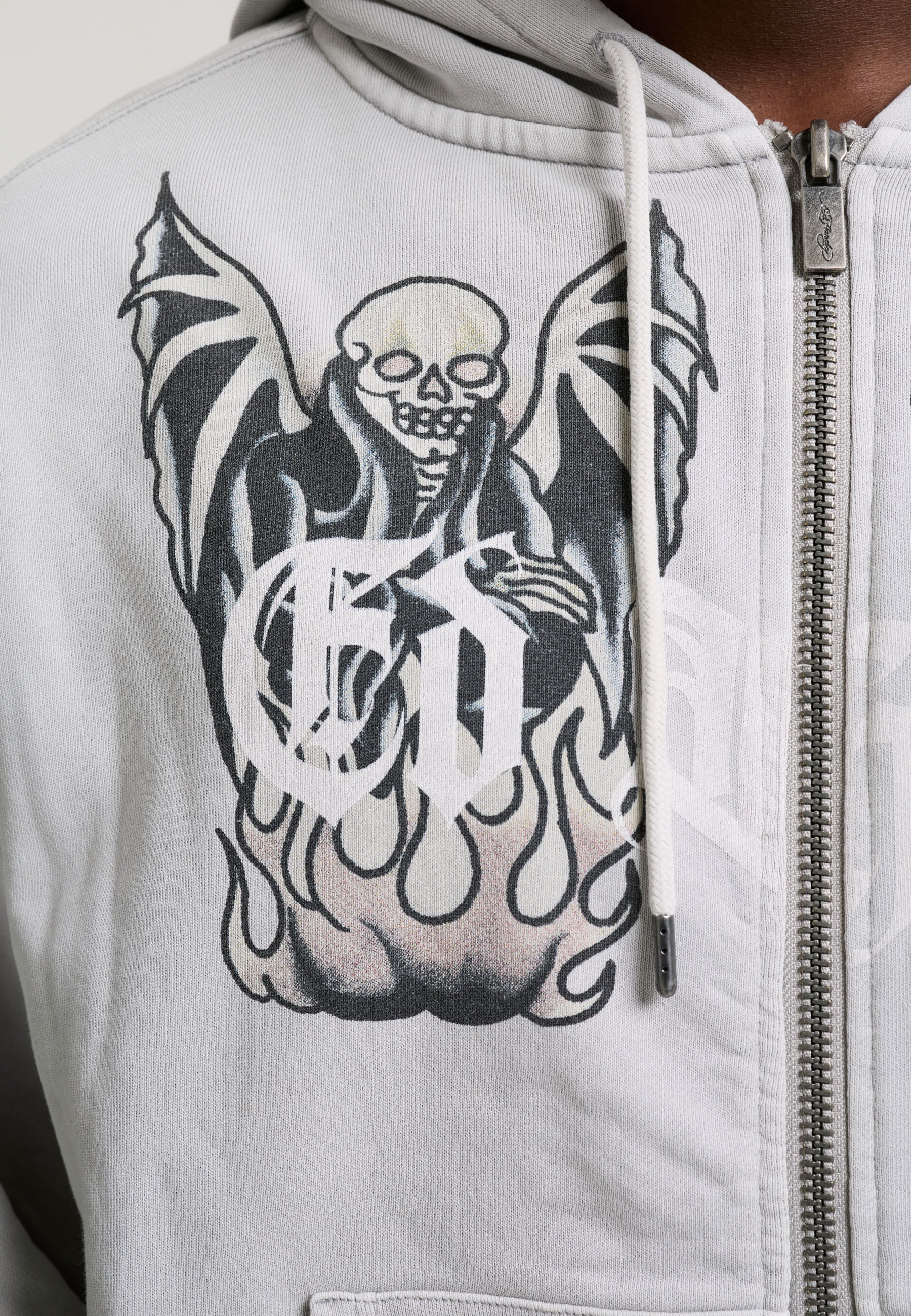 100% COTTON 350GSM BOXY FIT DISTRESSED SEAMS ED HARDY METAL TAB DETAIL KANGAROO POCKET ED HARDY SKULL GRAPHIC GARMENT DYE