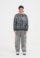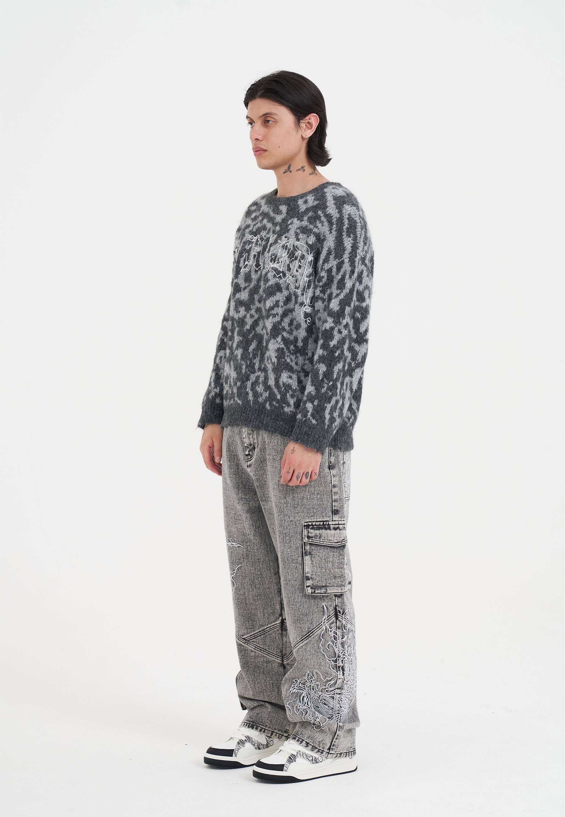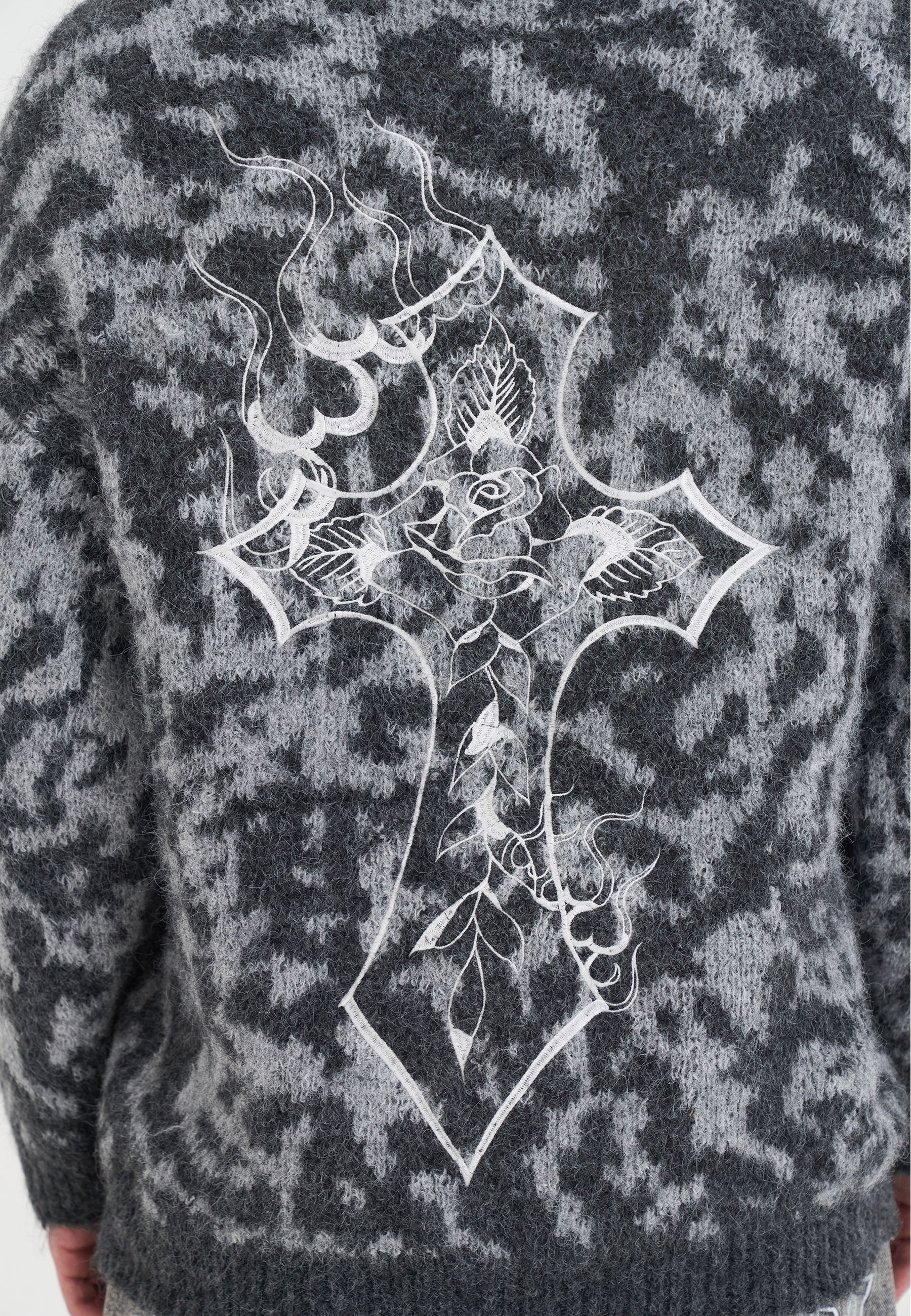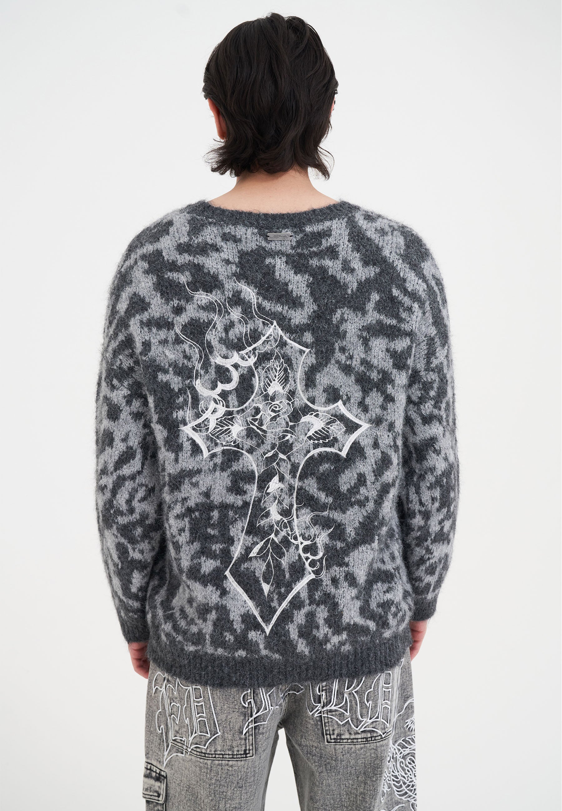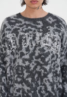 MENS INTARSIA LEOPARD KNITTED CREW JUMPER in Grey