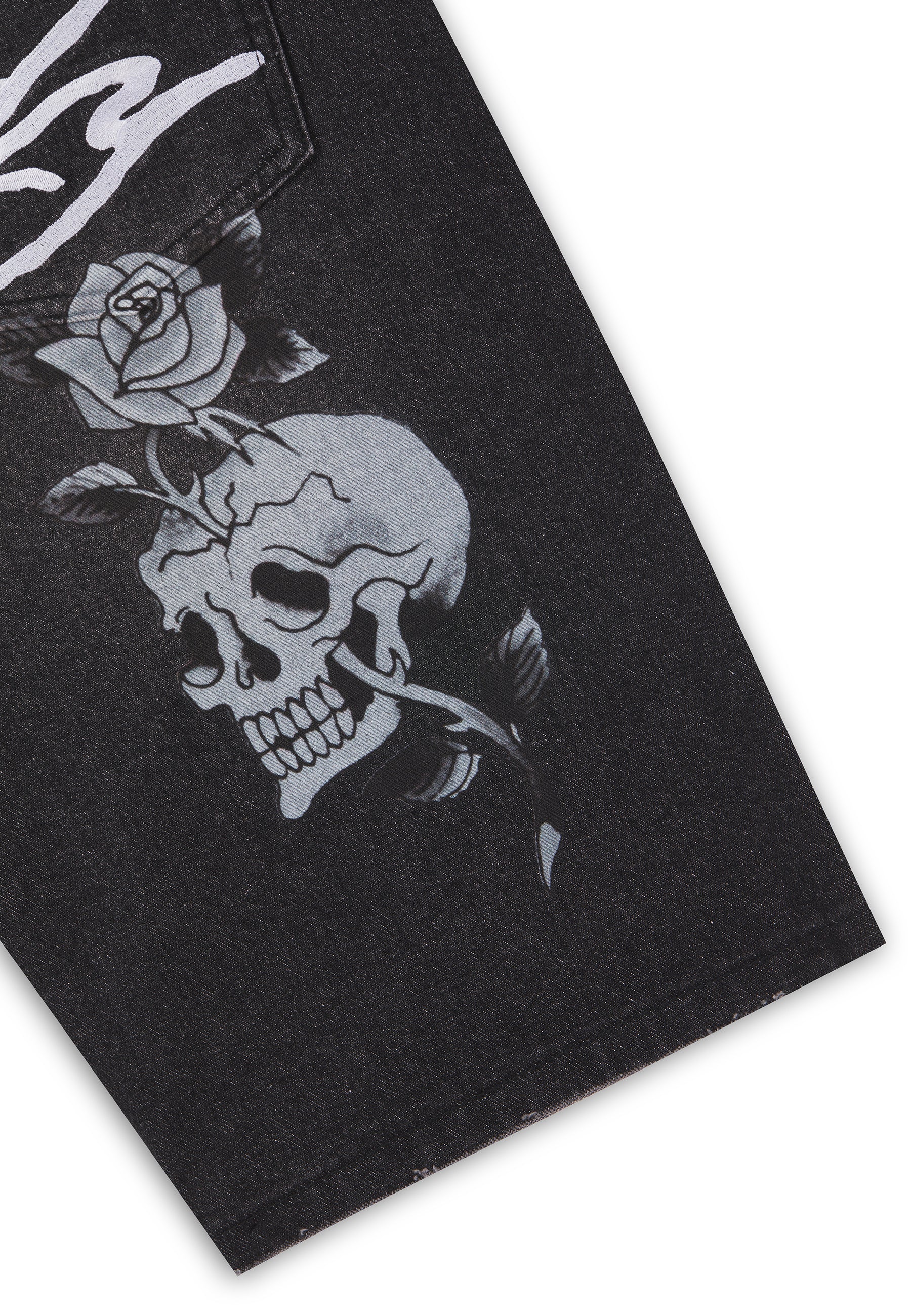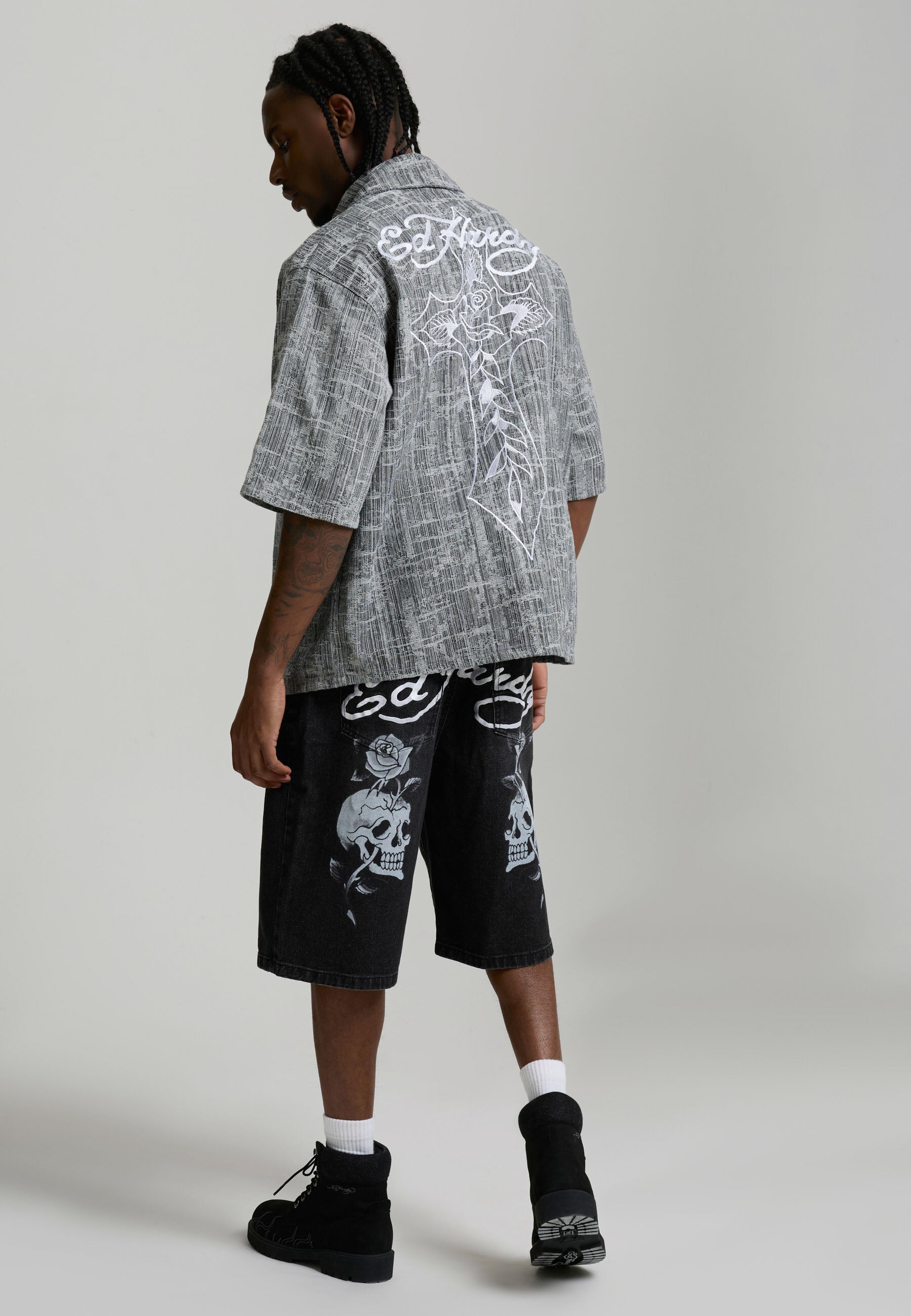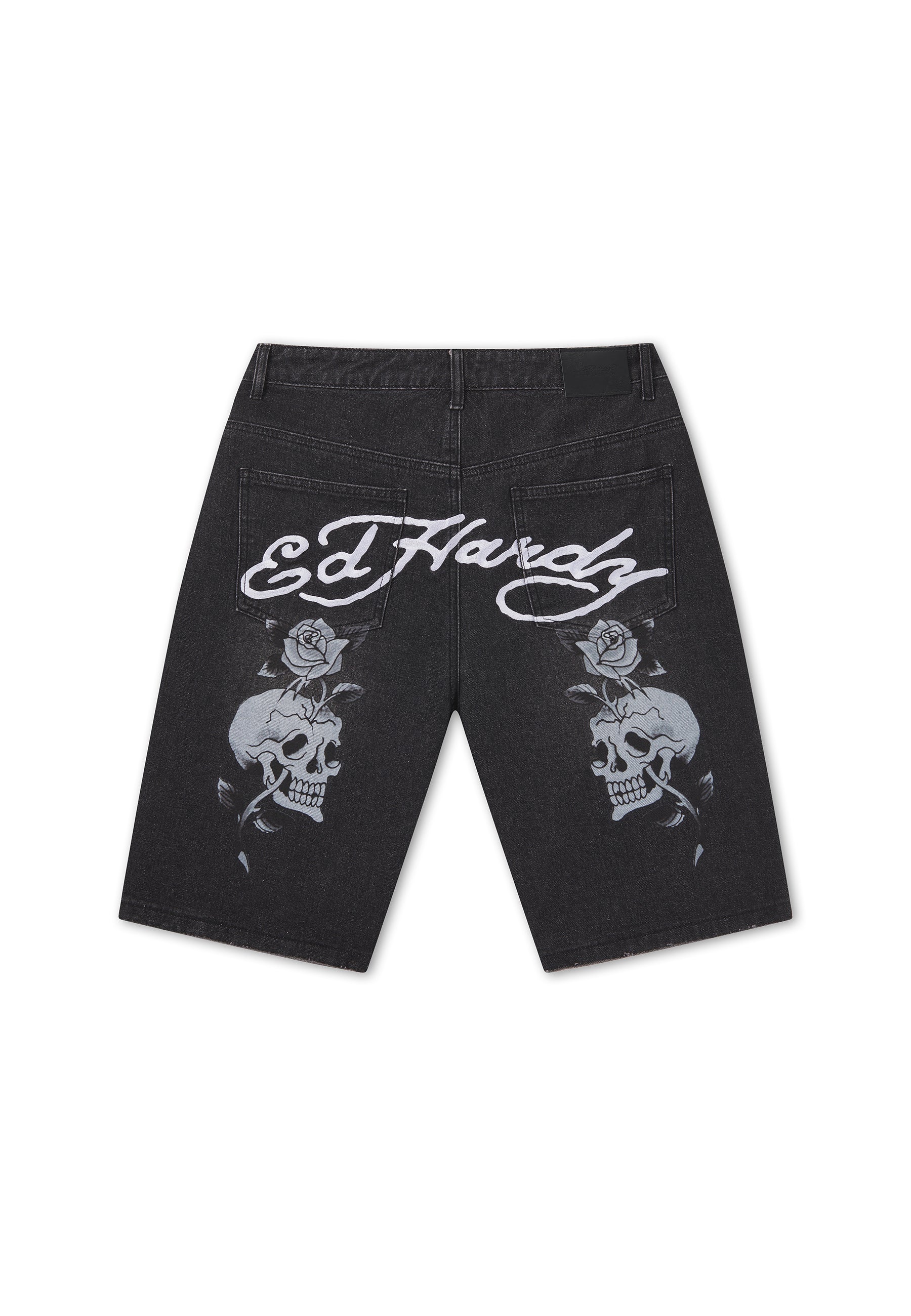 100% COTTON RELAXED FIT ED HARDY EMBROIDERY SKULL ROSE GRAPHIC SOFTENER WASH