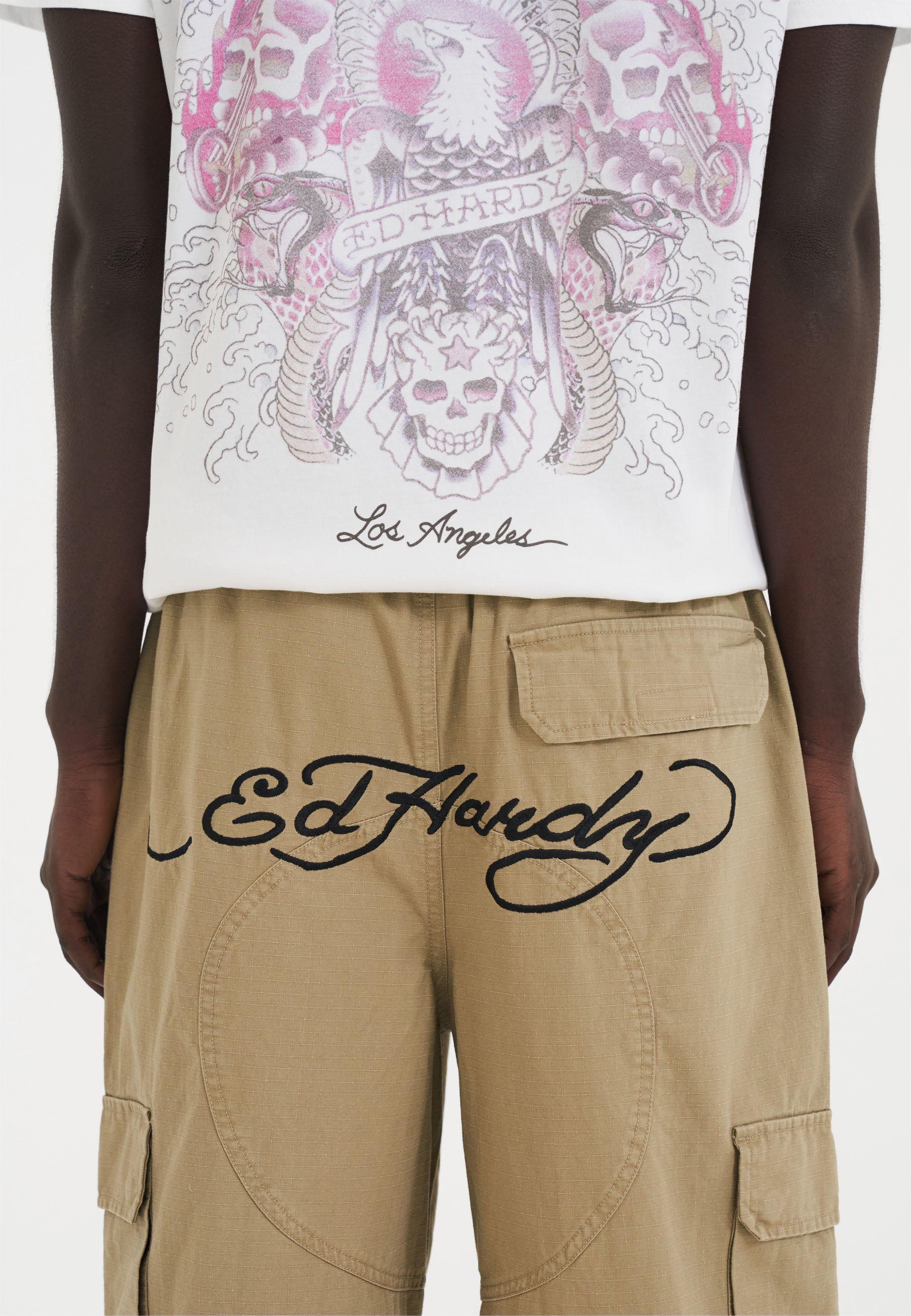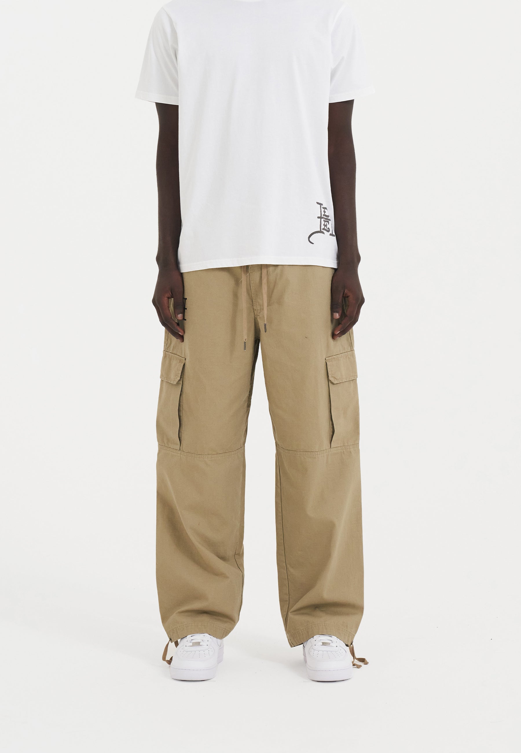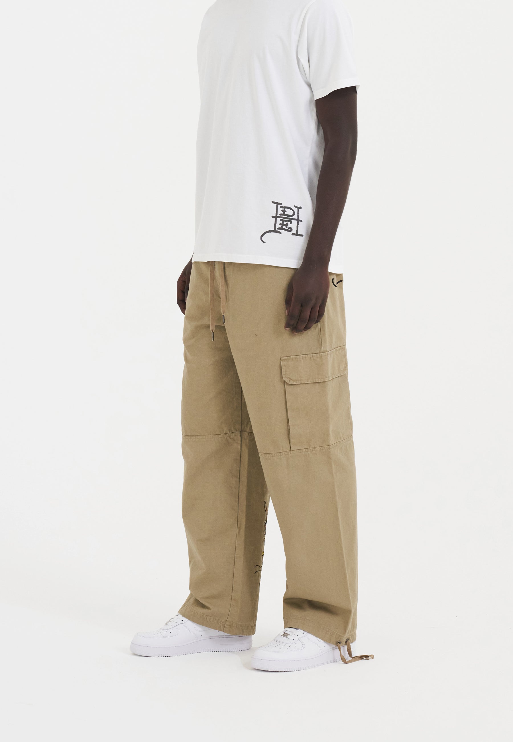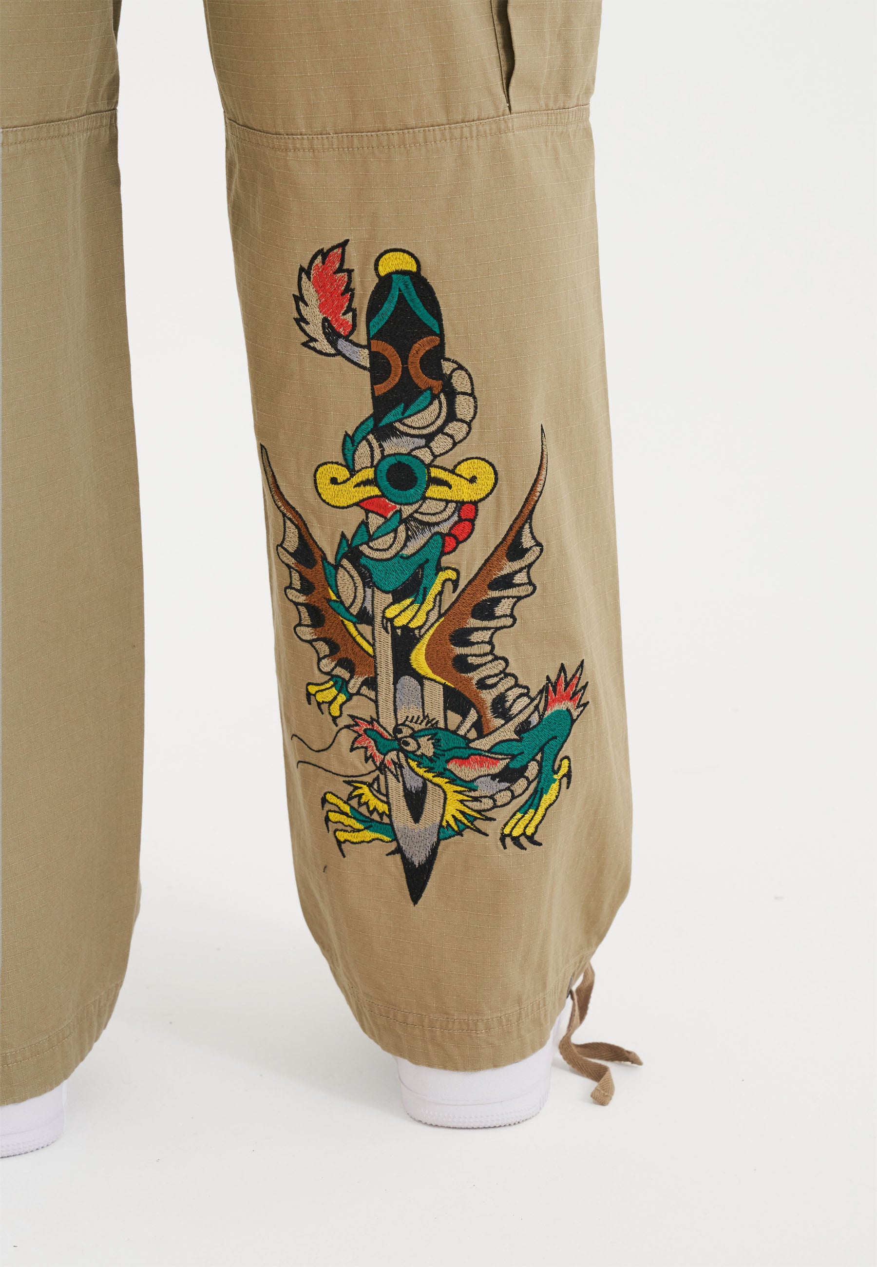 Mens Sword Dragon Ripstop Woven Cargo Pants Trousers - Beige