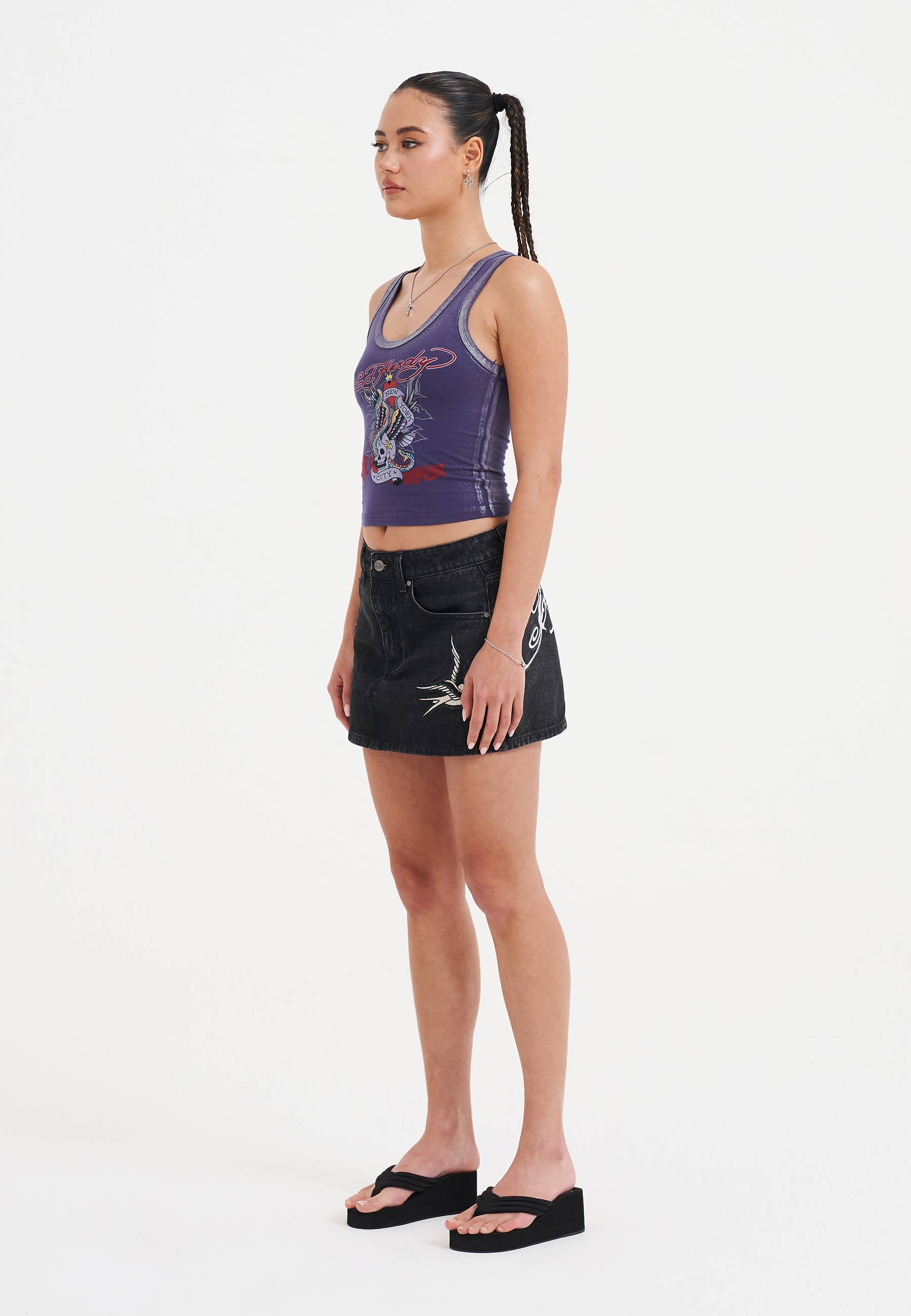 Womens Ed Nyc Skull Tour Vest Top - Purple