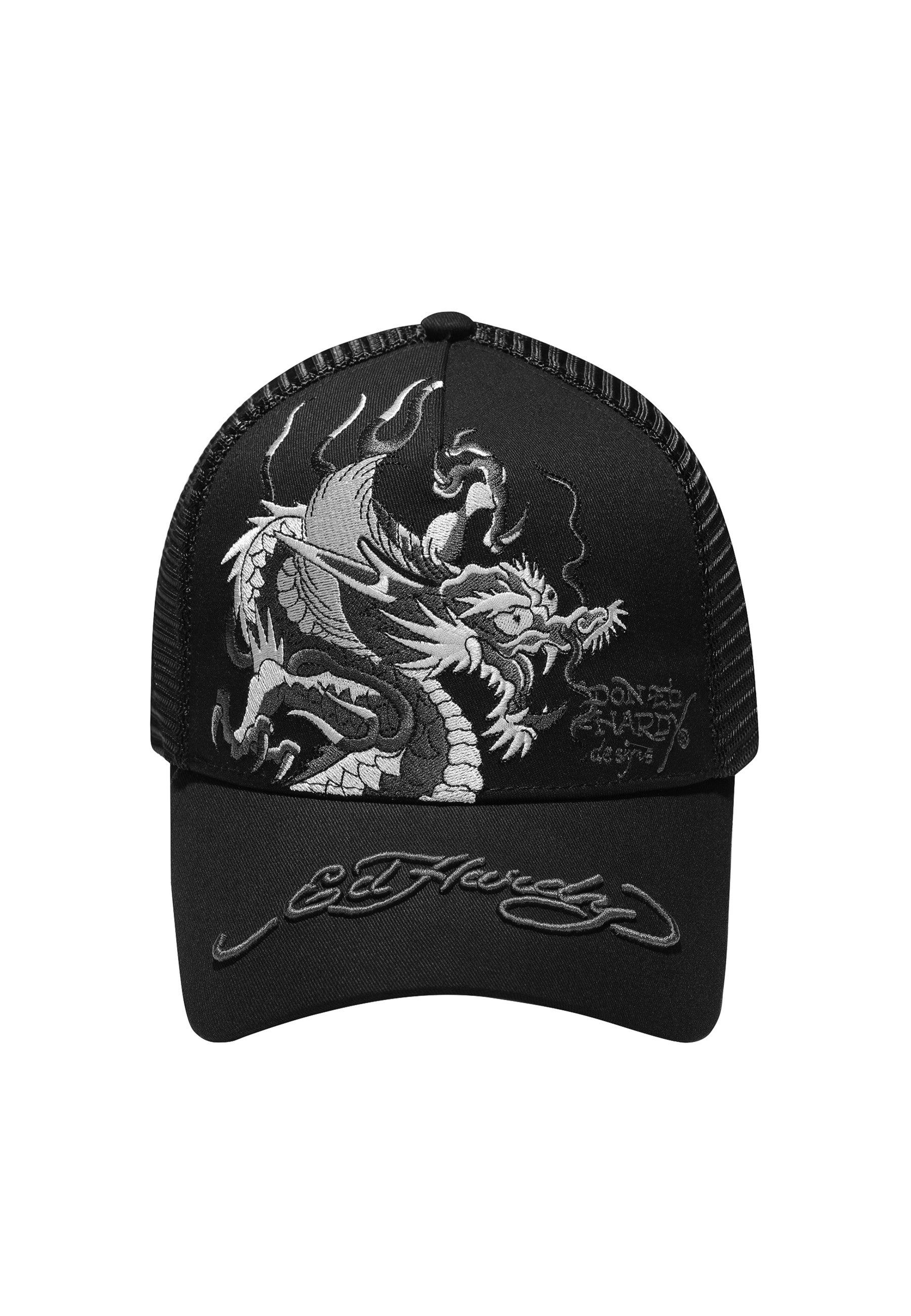 Unisex Mono Giant Dragon Twill Front Mesh Trucker - Black/Black