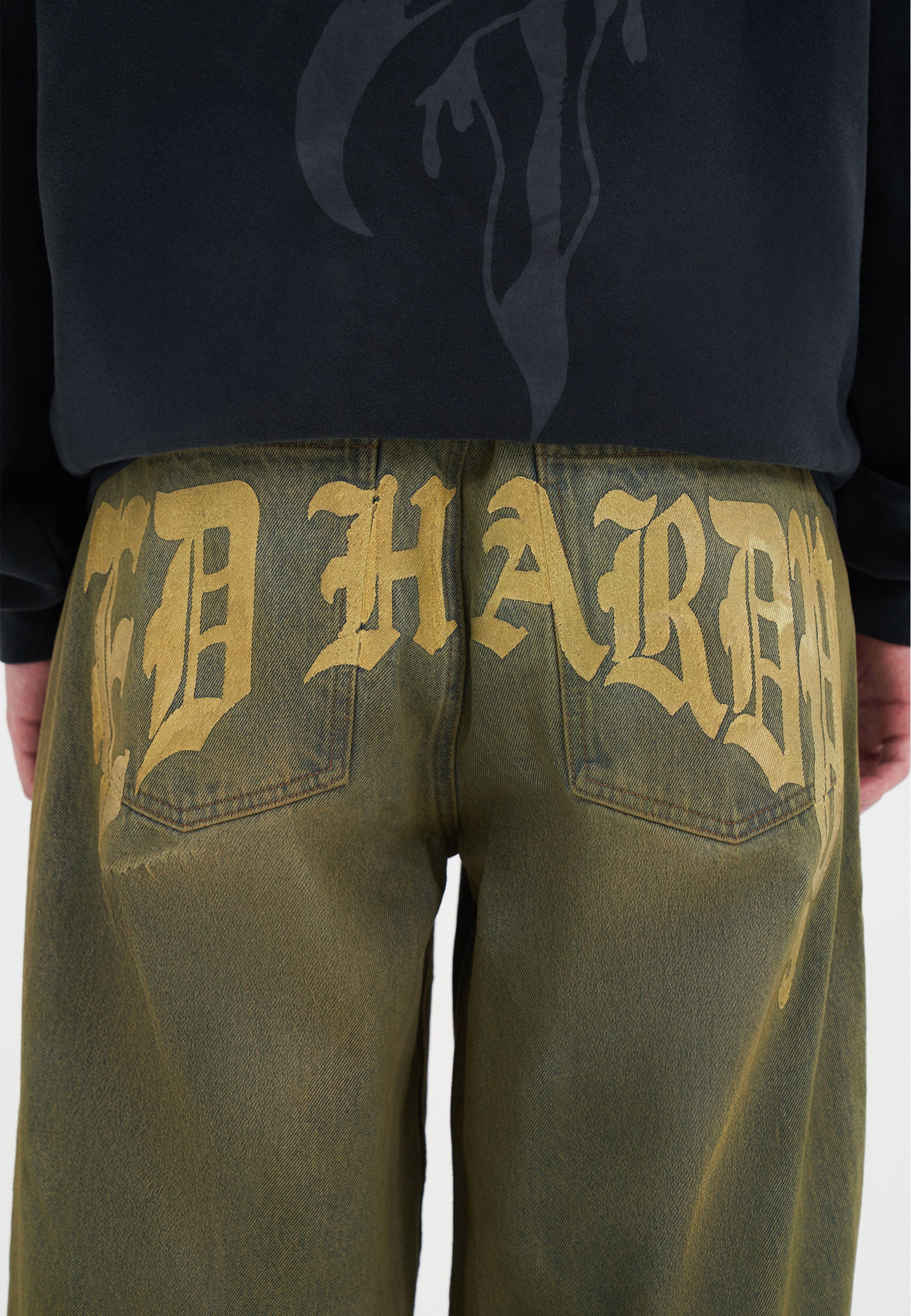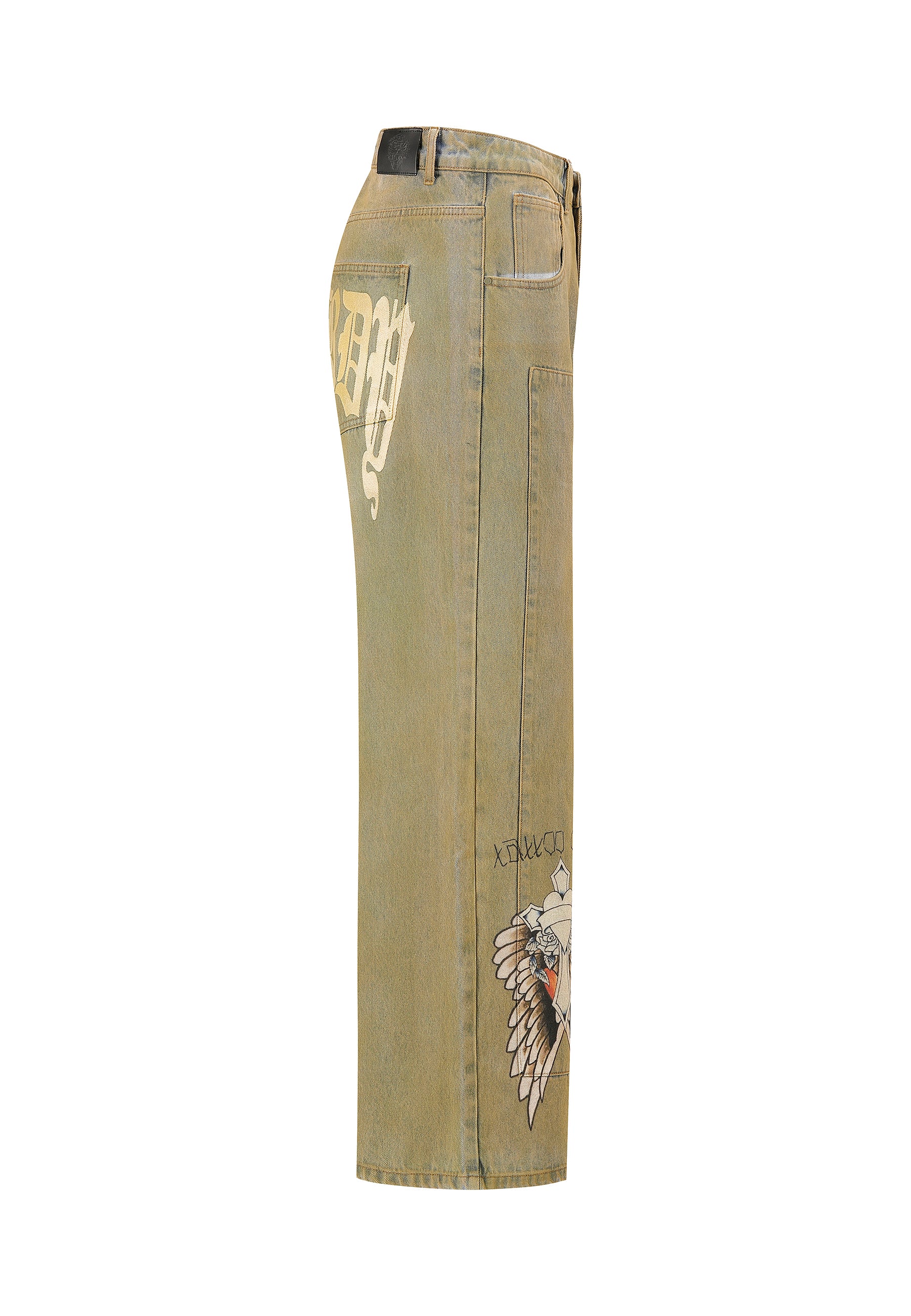 Mens Tattoo City Bleach Panel Jeans - Bleach