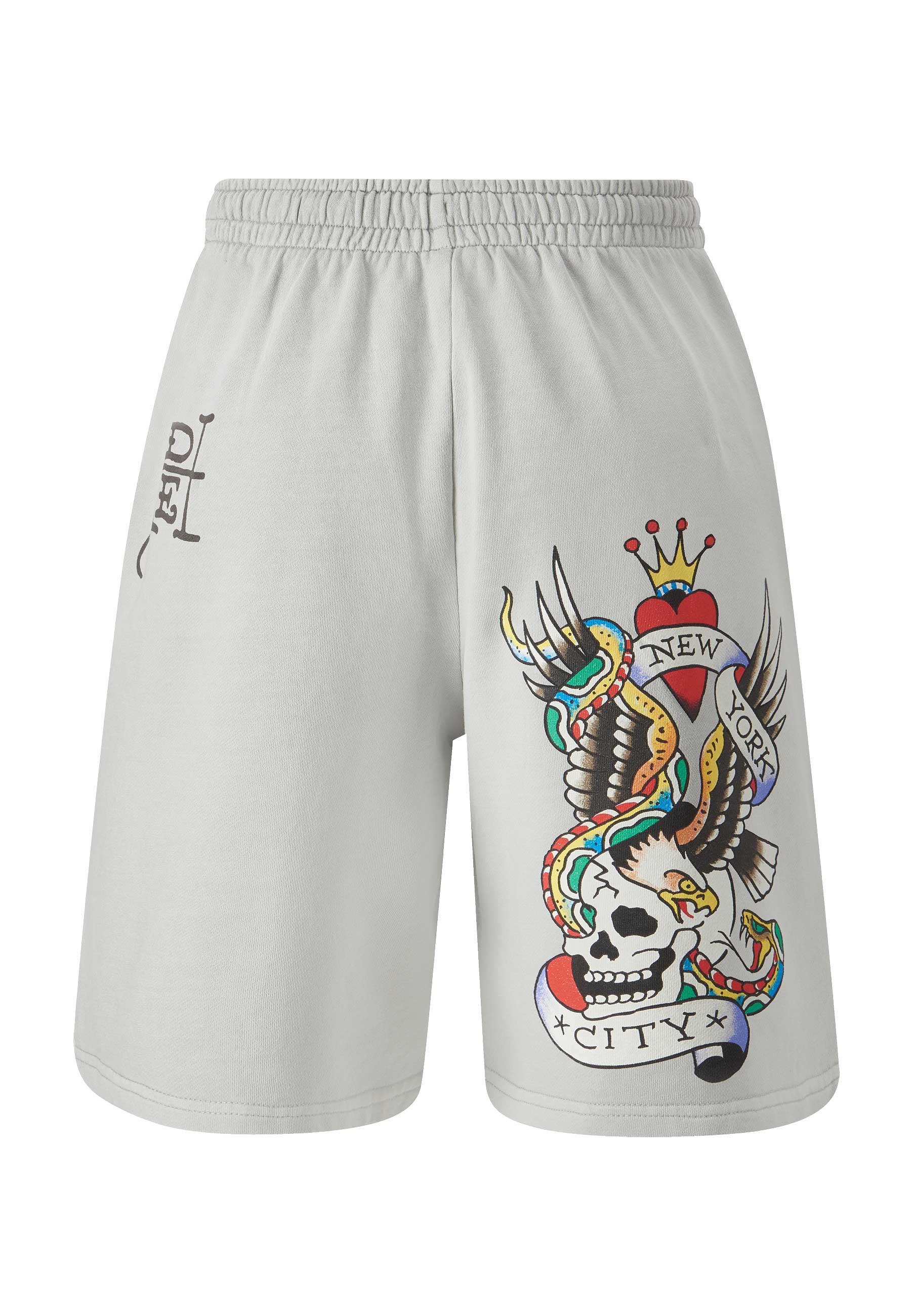 Mens Nyc Skull Sweat Shorts - Washed Grey