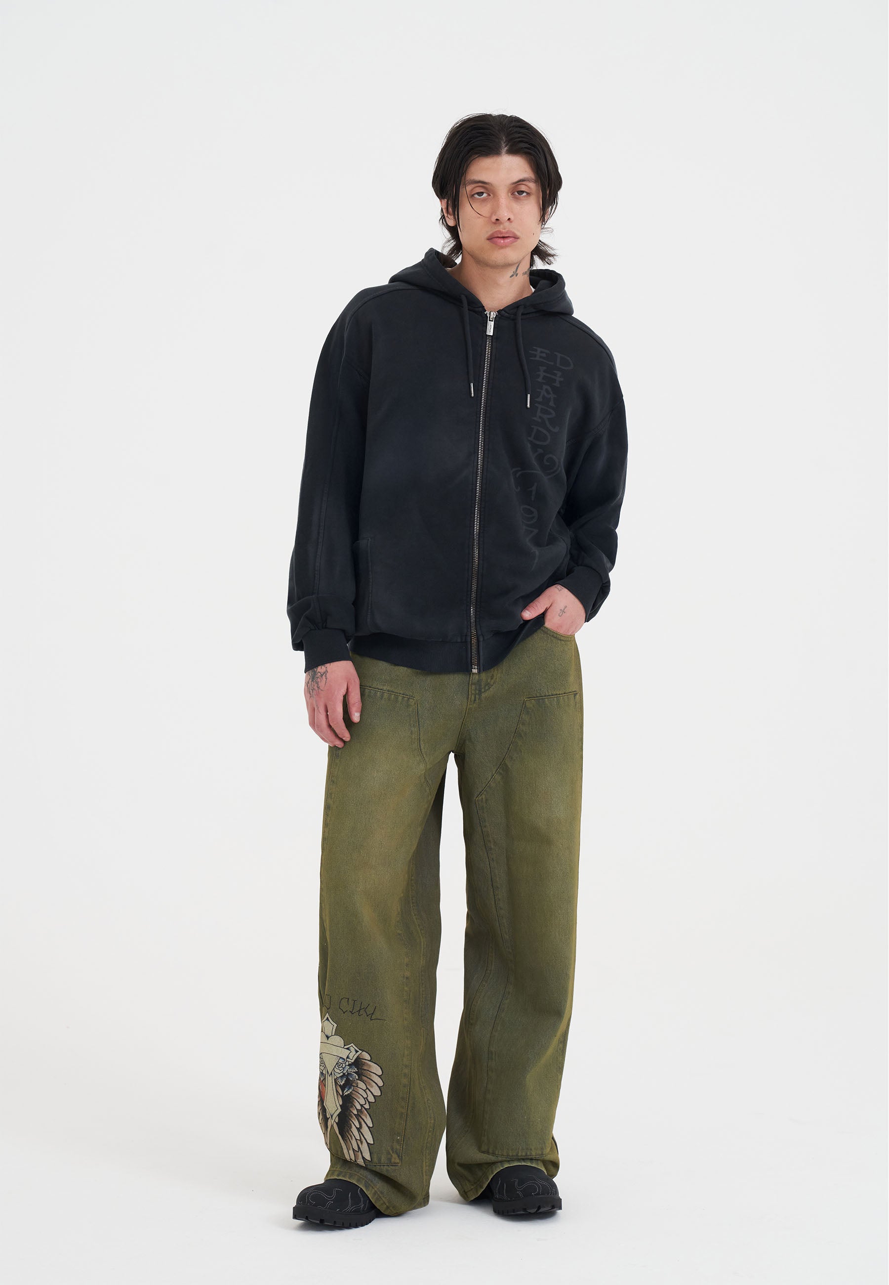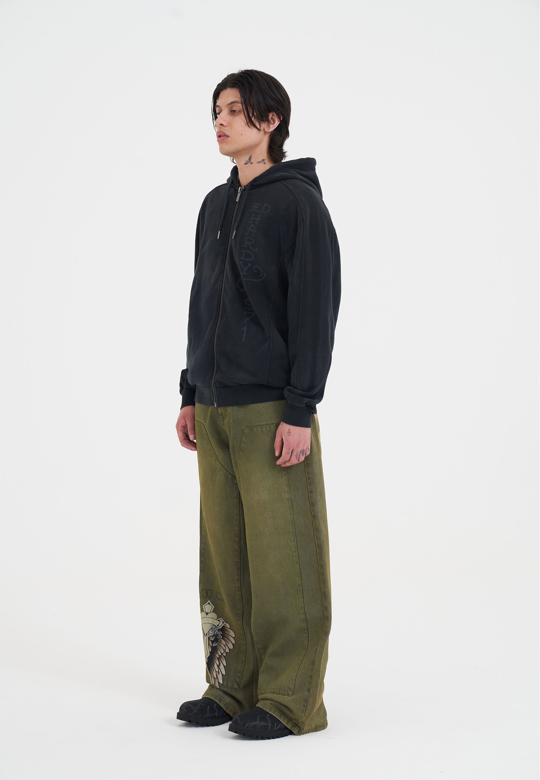 Mens Skull And Snake Zip Thru Jumper - Charcoal
