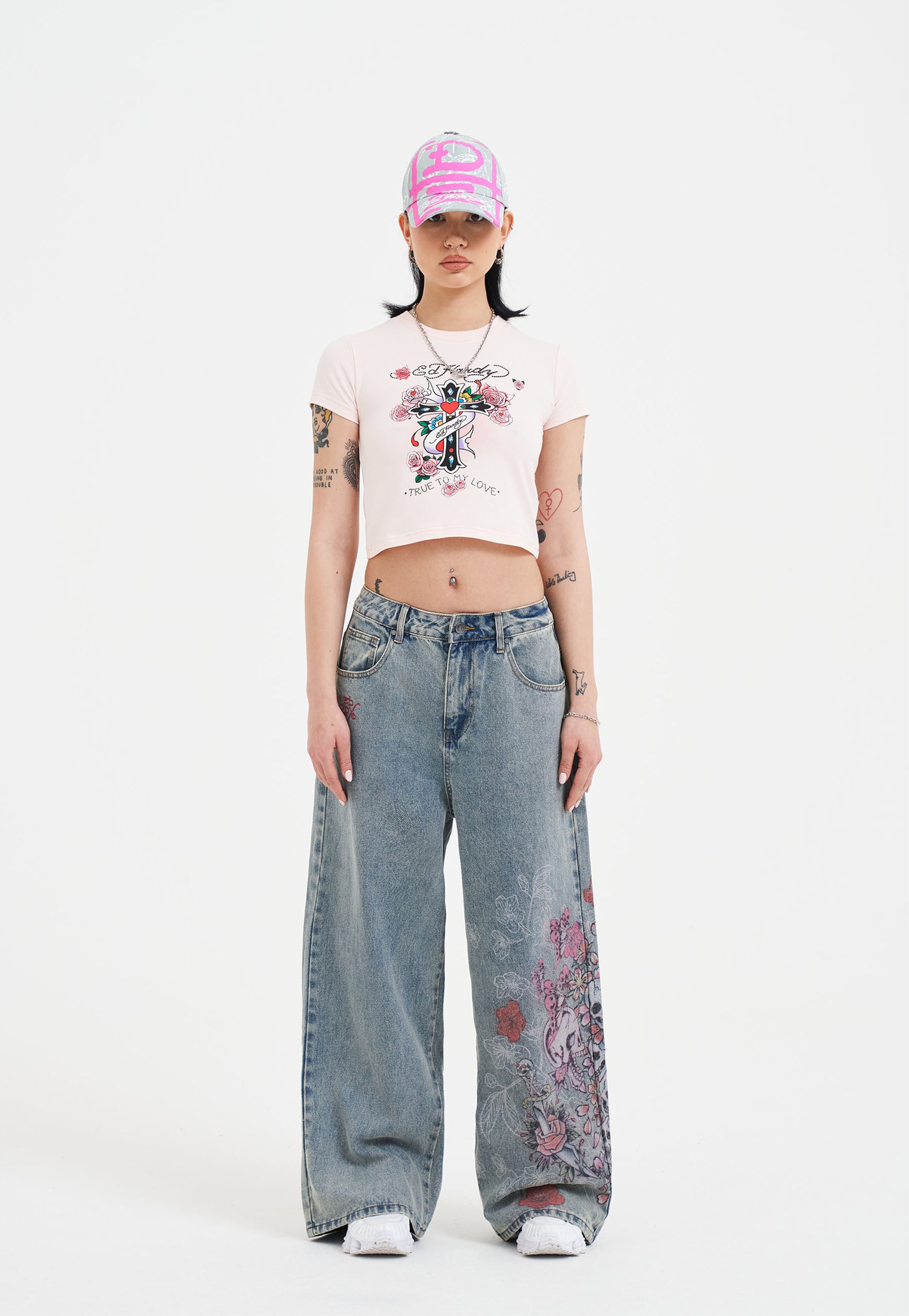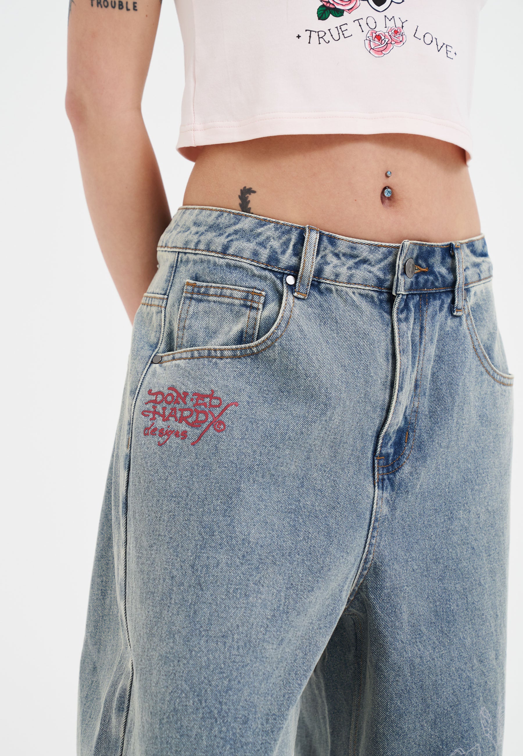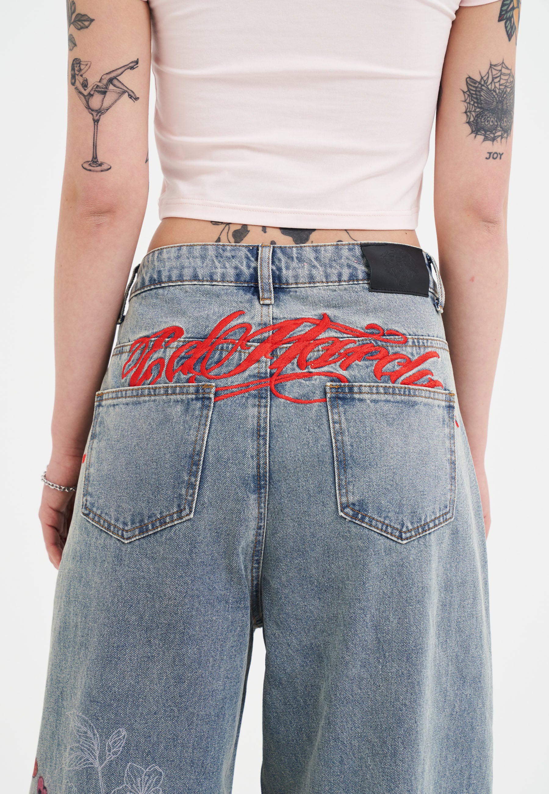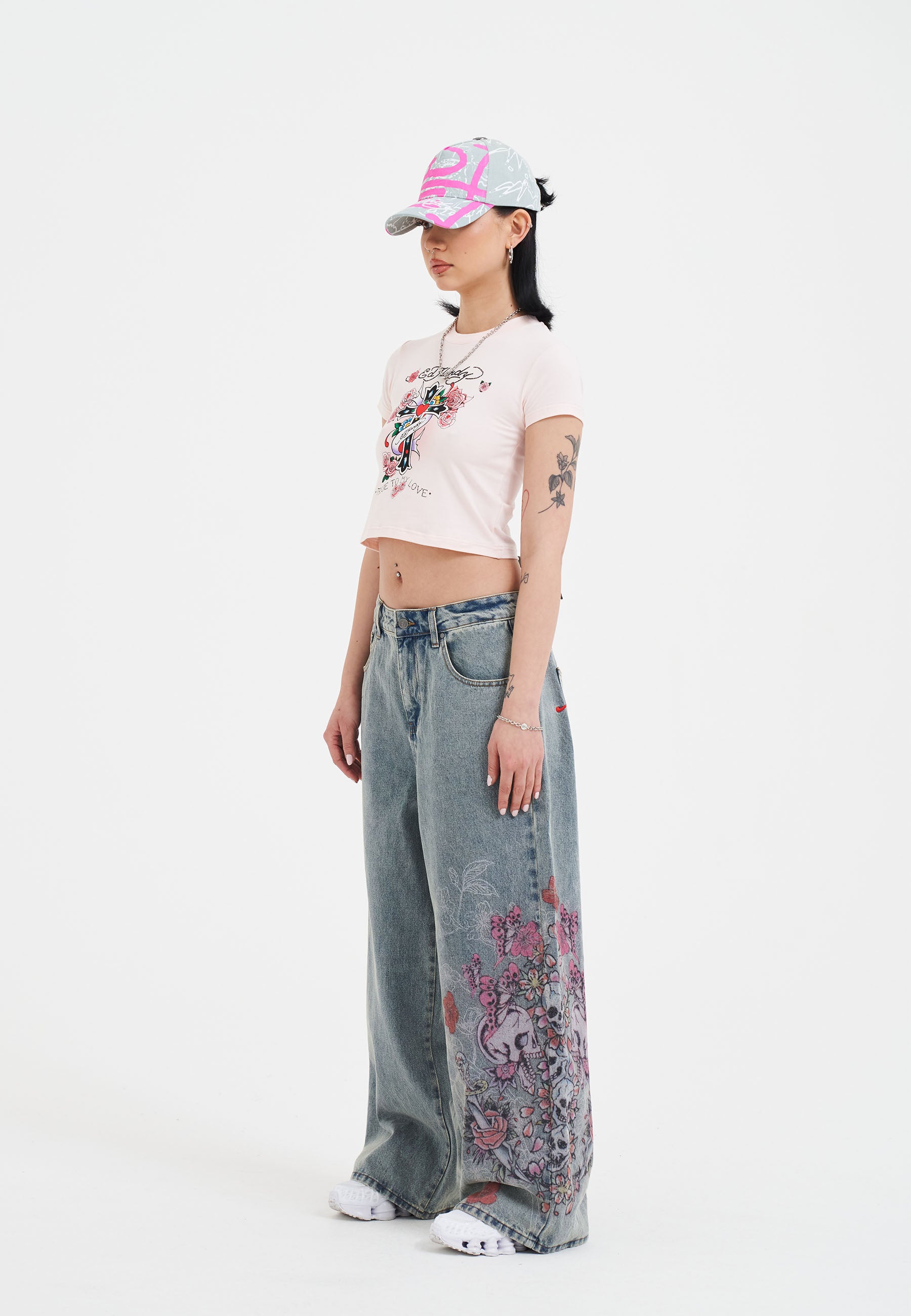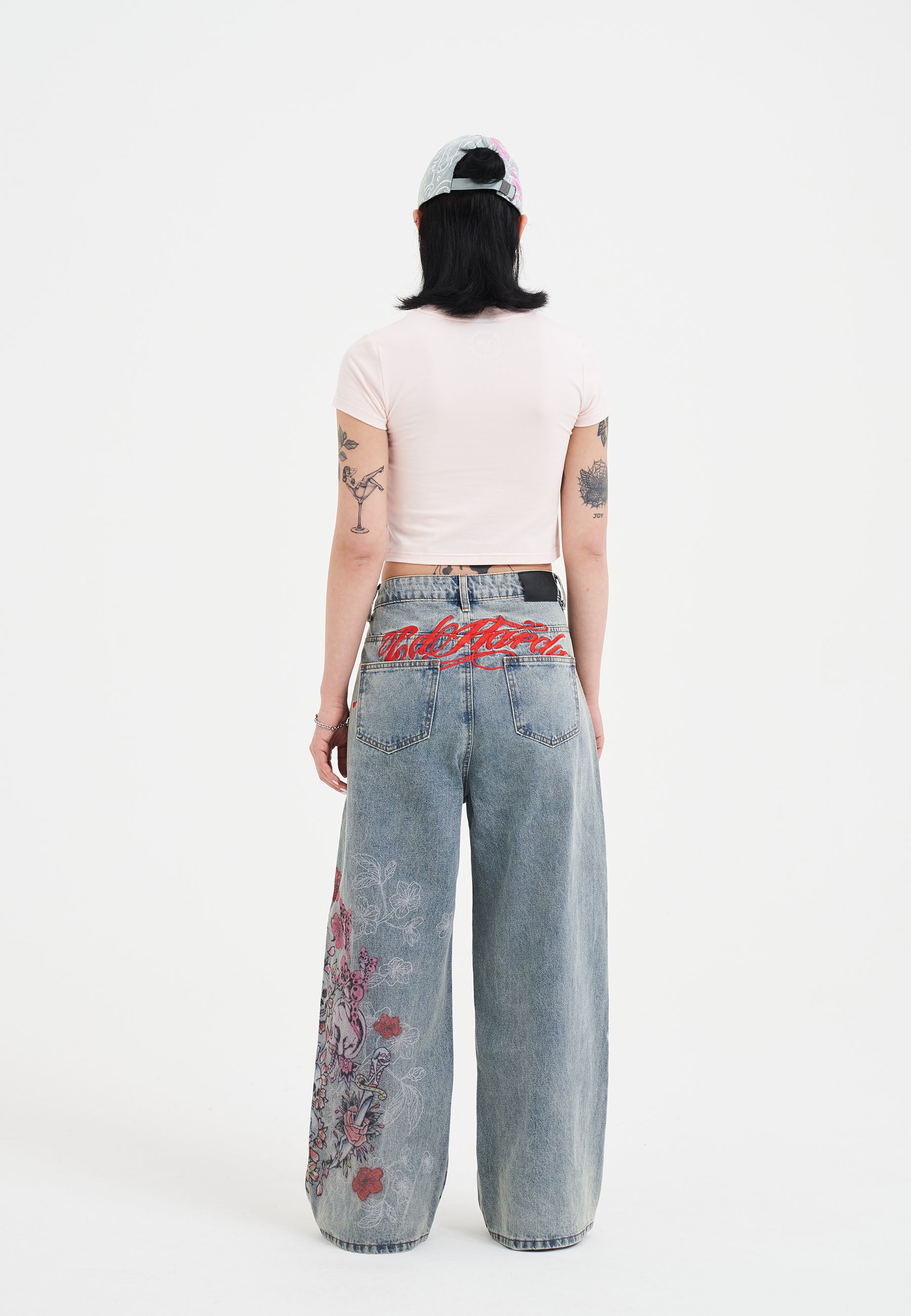 Womens Skull In Love Xxtra Denim Trousers Jeans - Bleach