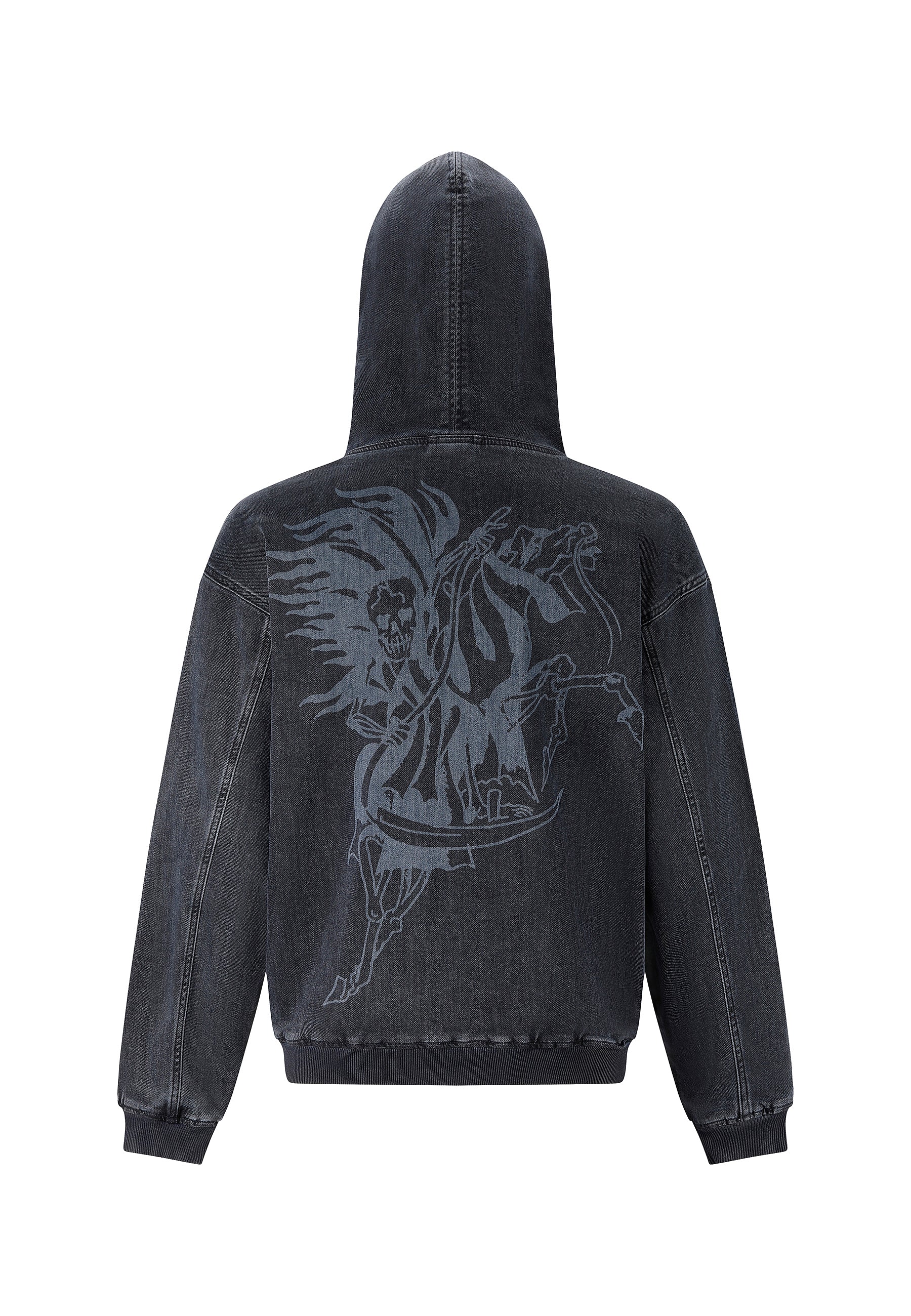 Mens Death Rider Denim Pouch Hoodie - Indigo