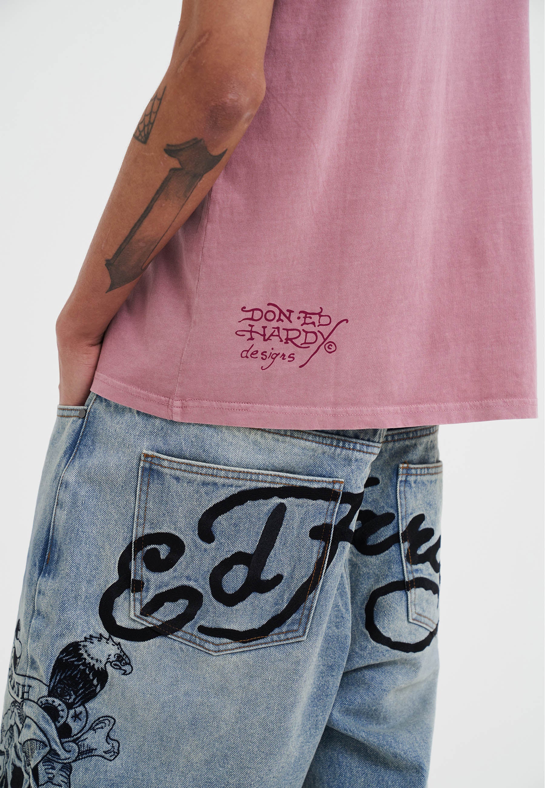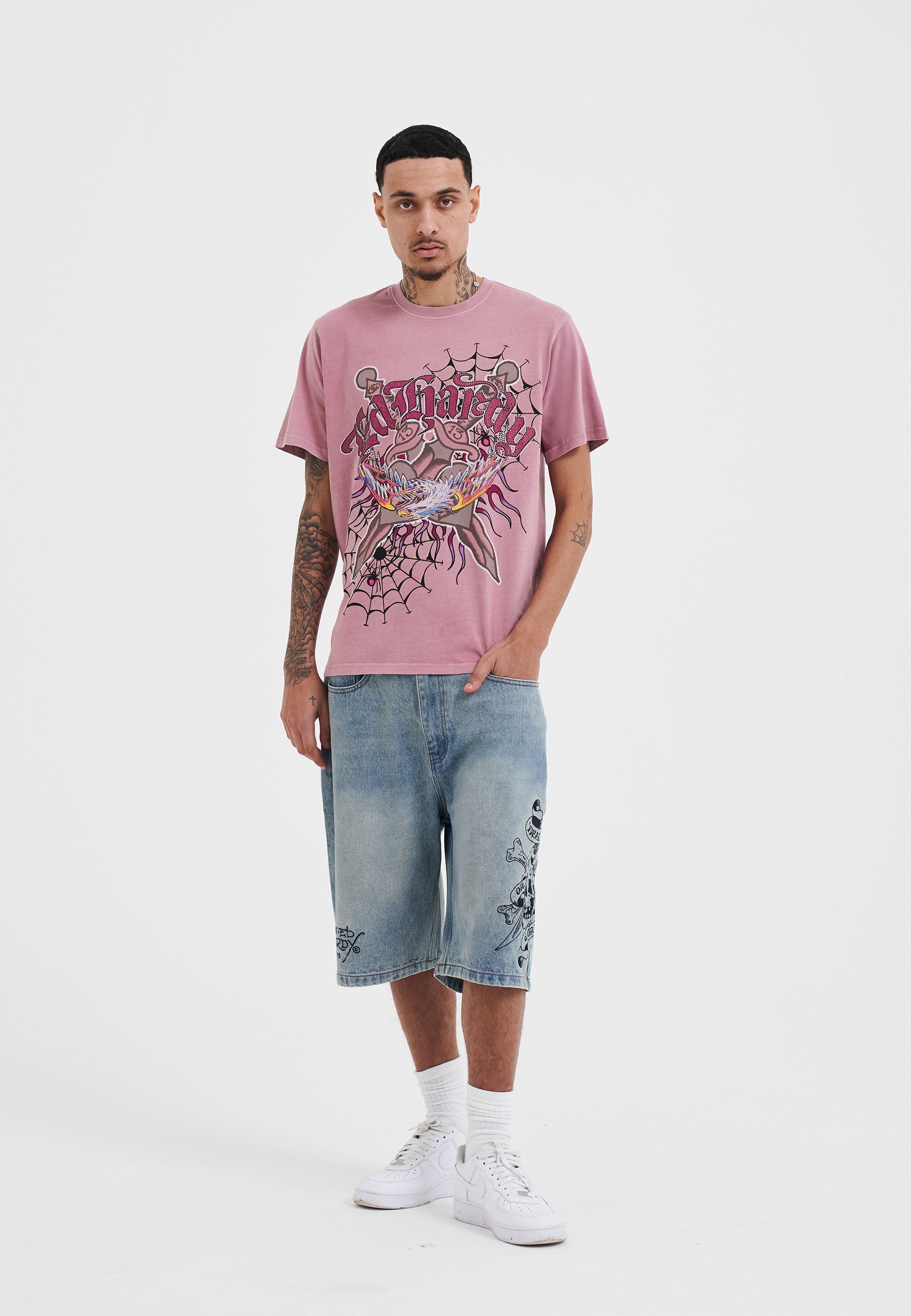 Mens Gothic Lightning Eagle Diamante T-Shirt - Pink