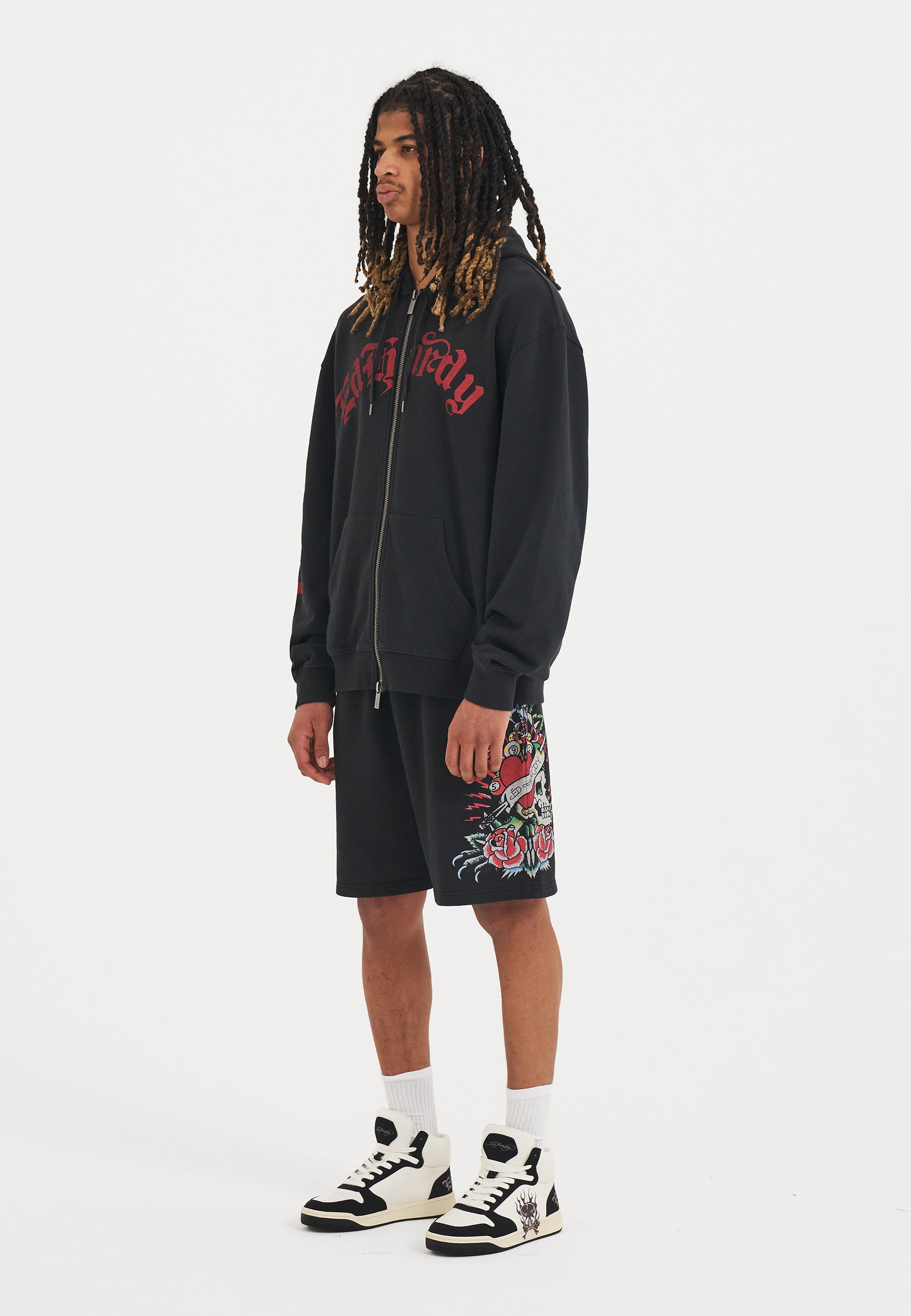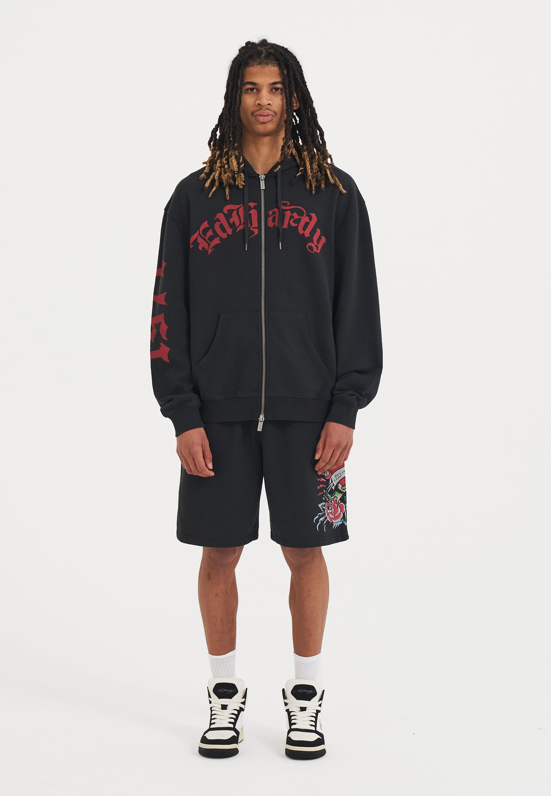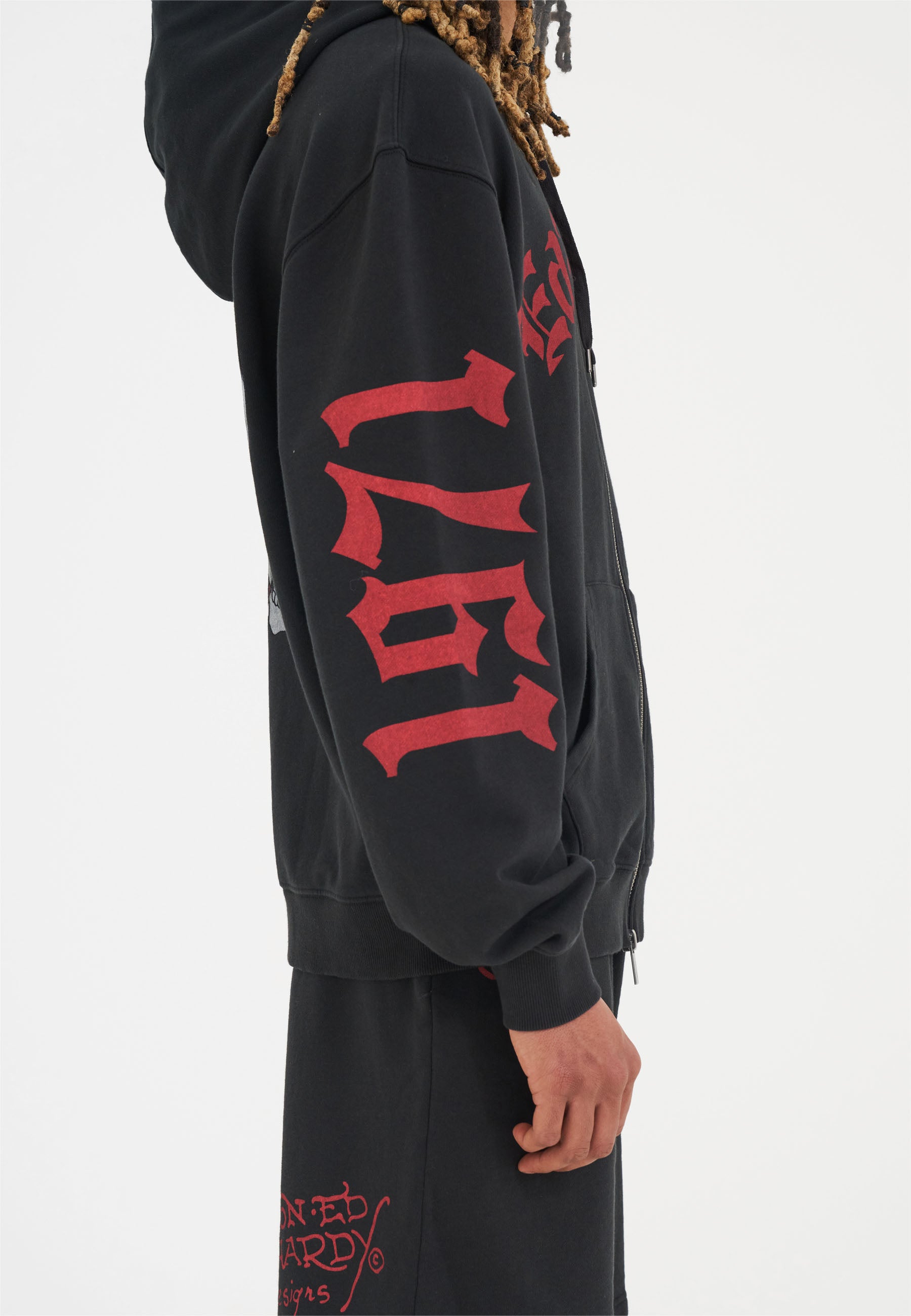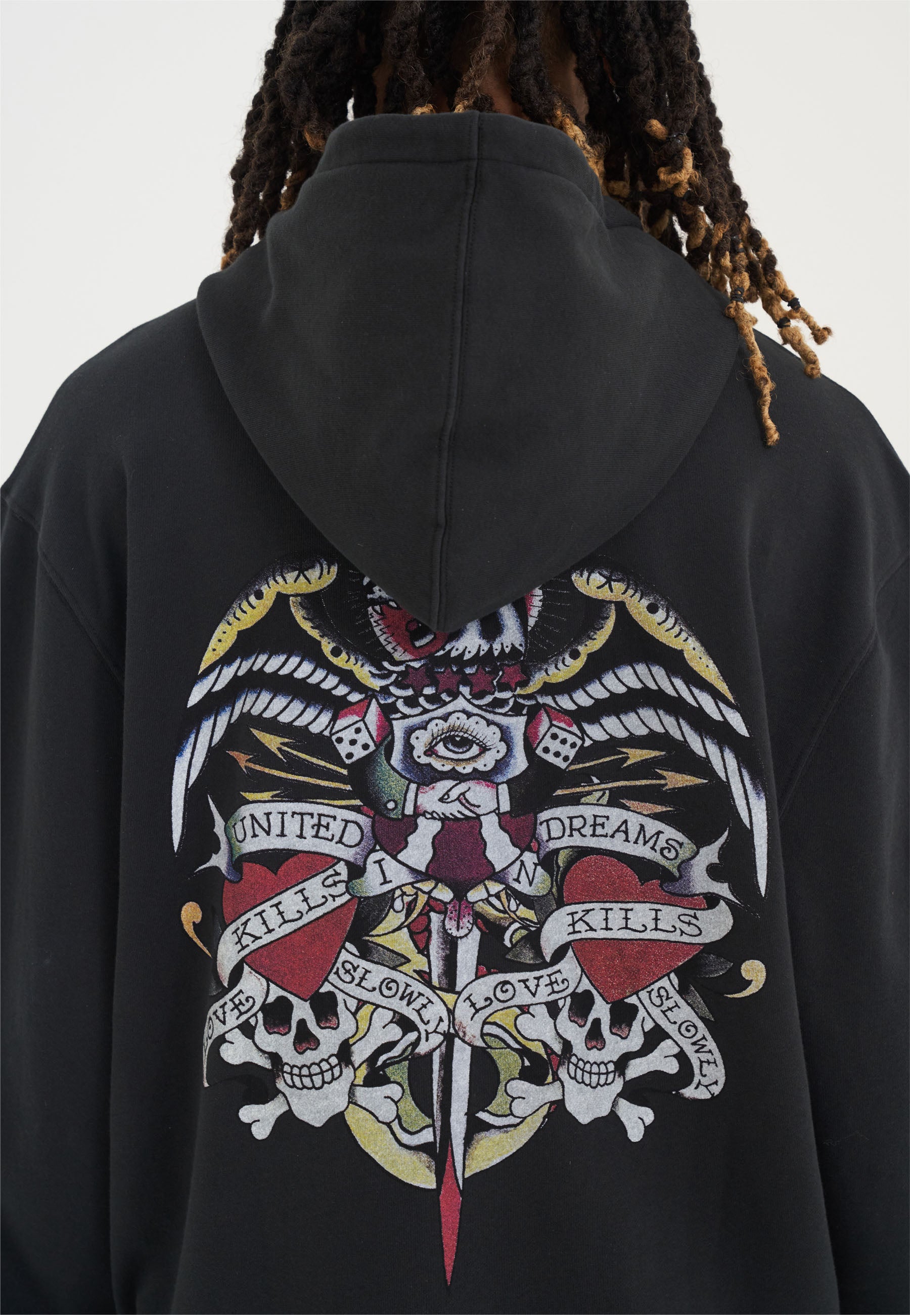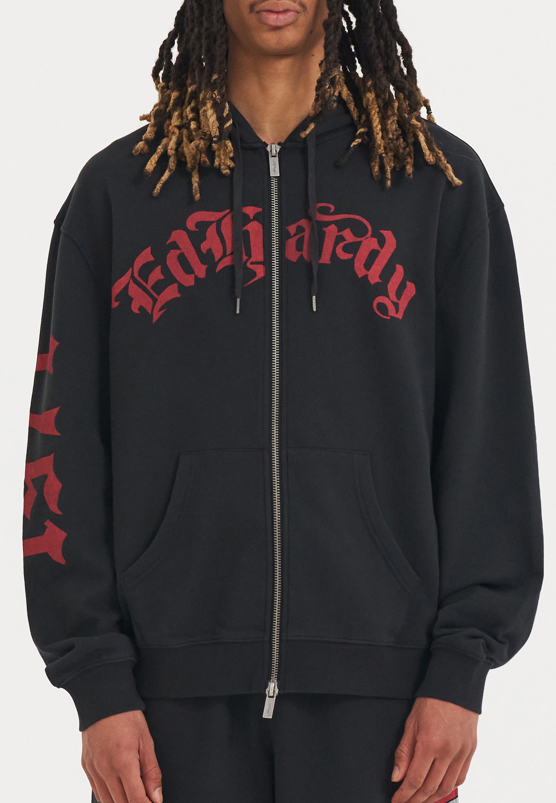 Mens Abstract Love Kills Slowly Graphic Zip Thru Hoodie - Black