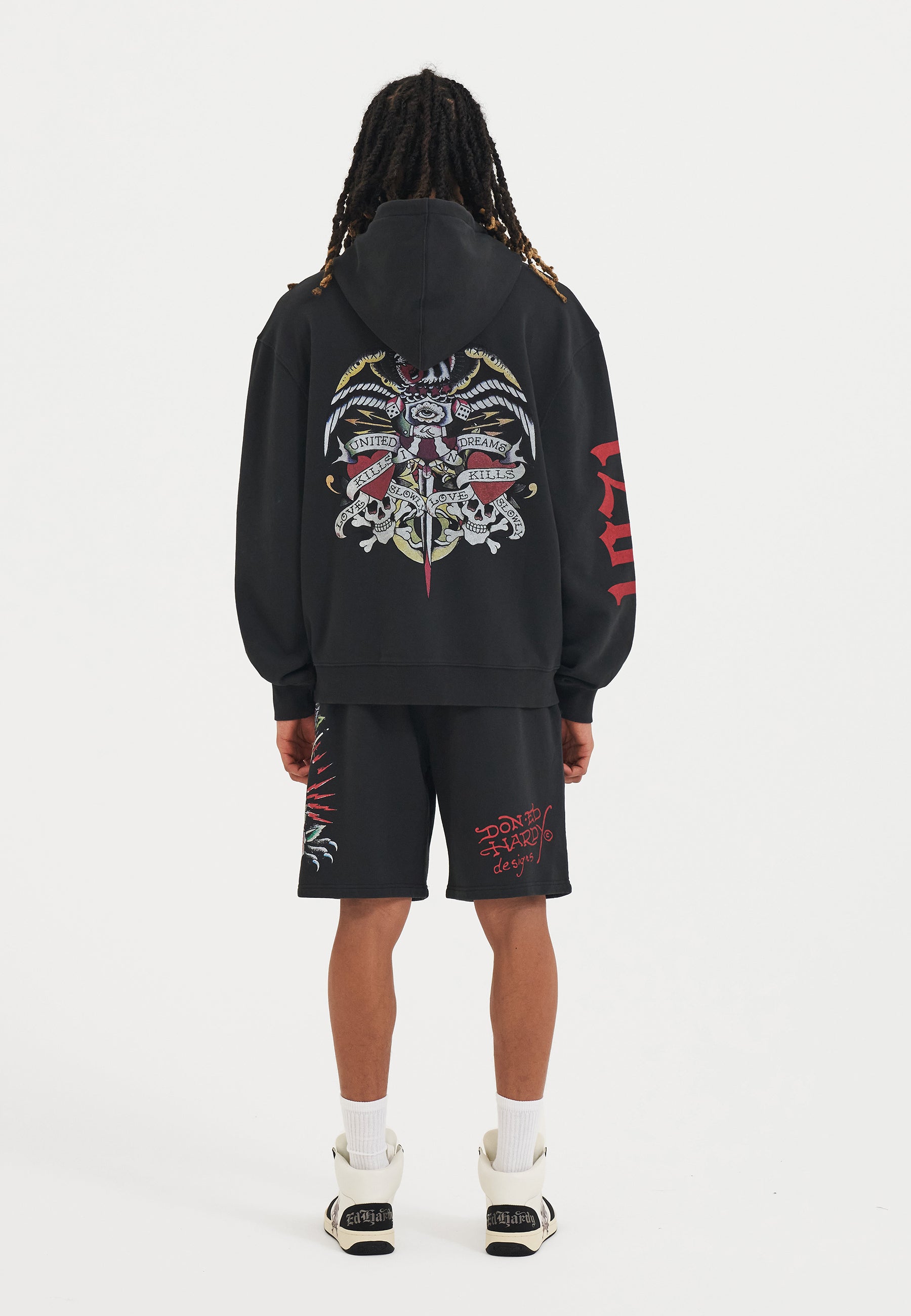 This premium piece epitomises Ed Hardy's talent for reinventing iconic styles, combining intricate tonal embroidery and premium craftsmanship and drawing from this season's punk influences.
