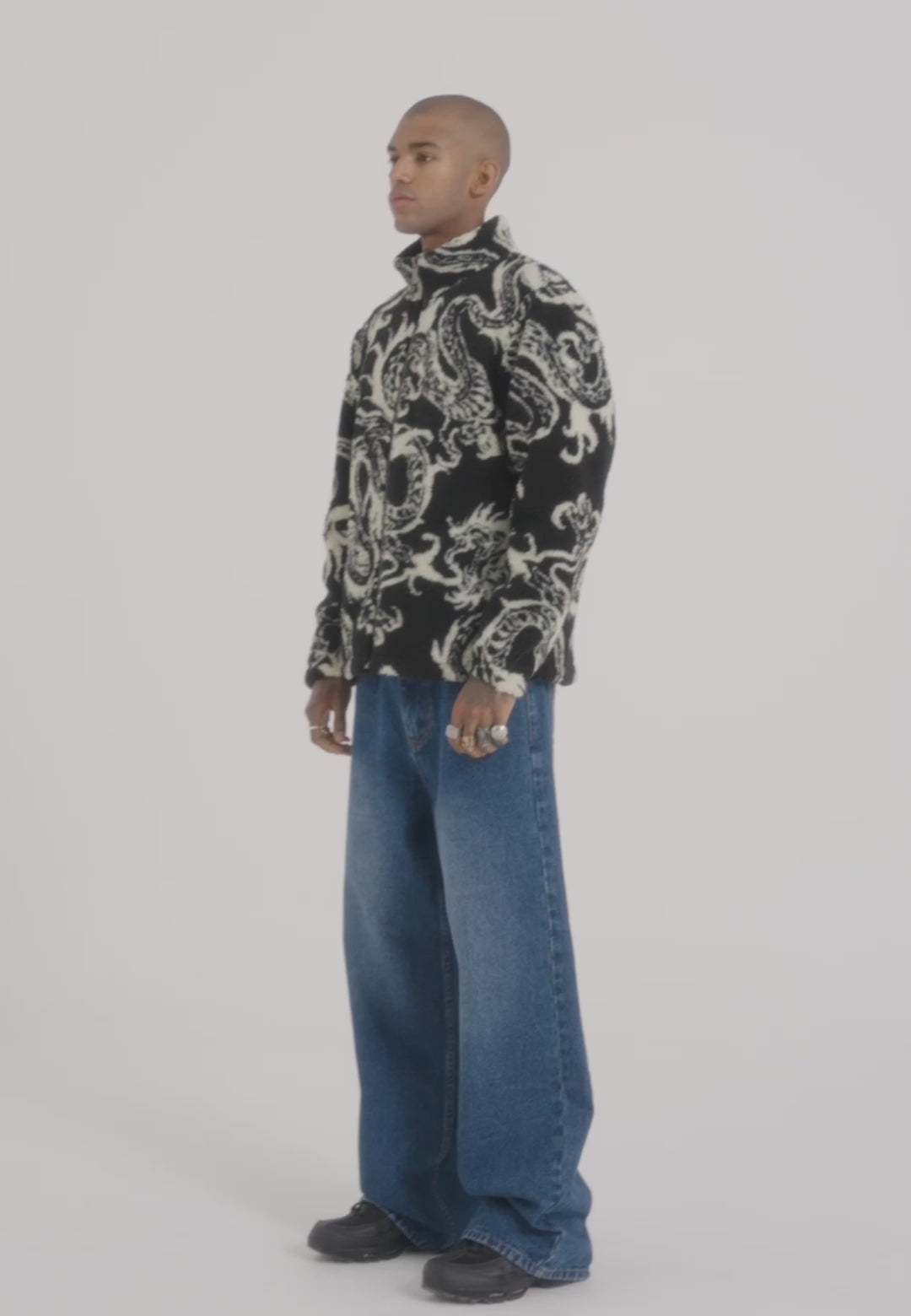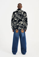 Mens Drag Battle Aop Fleece Jacket - Black/Beige