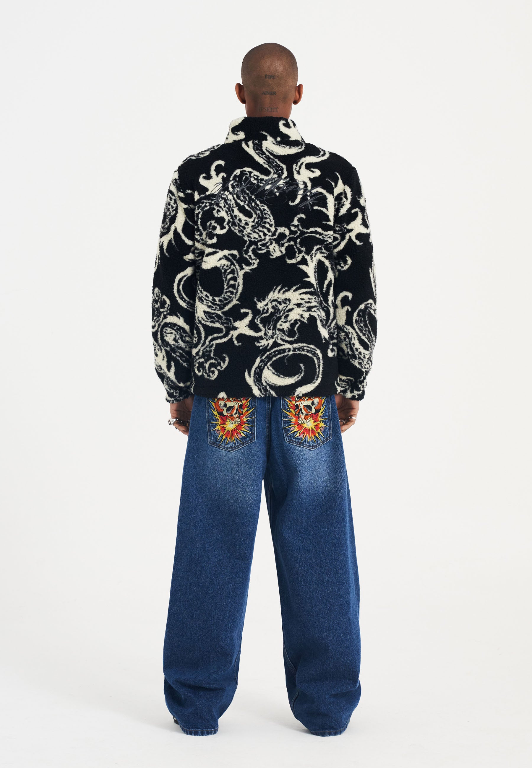The Men's Drag Battle AOP Fleece Jacket captures the evolution of Ed Hardy’s iconic style.