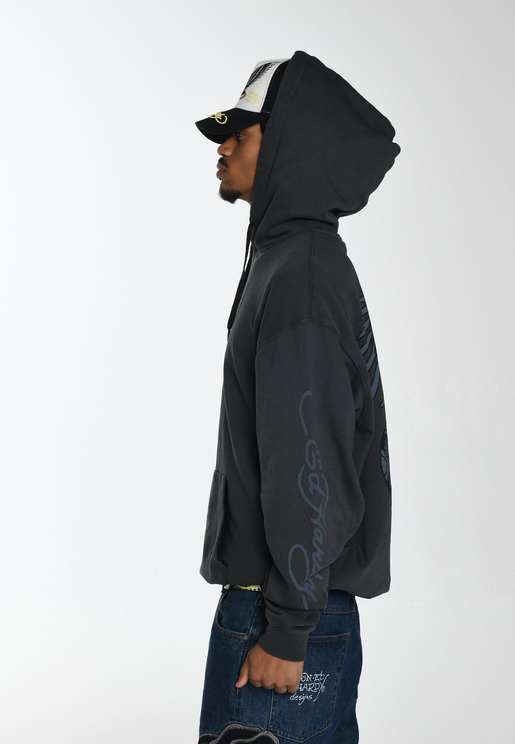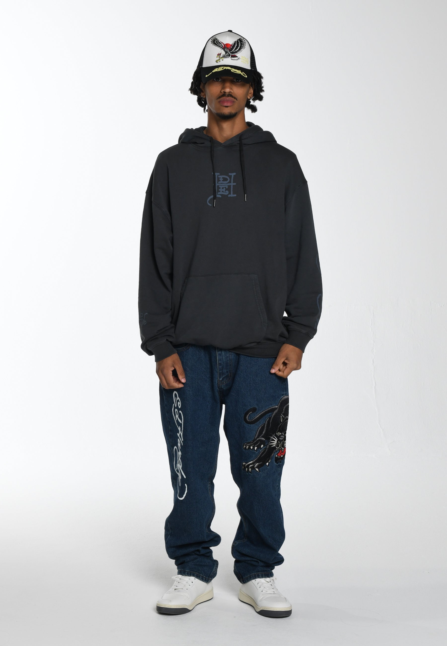 The Eye Ball Hoodie has been crafted with 100% cotton for supreme comfort. Featuring a large faded-blue skull graphic across the full-back and a small Ed Hardy monogram on the front of the chest; this piece has been designed for generations of wear.