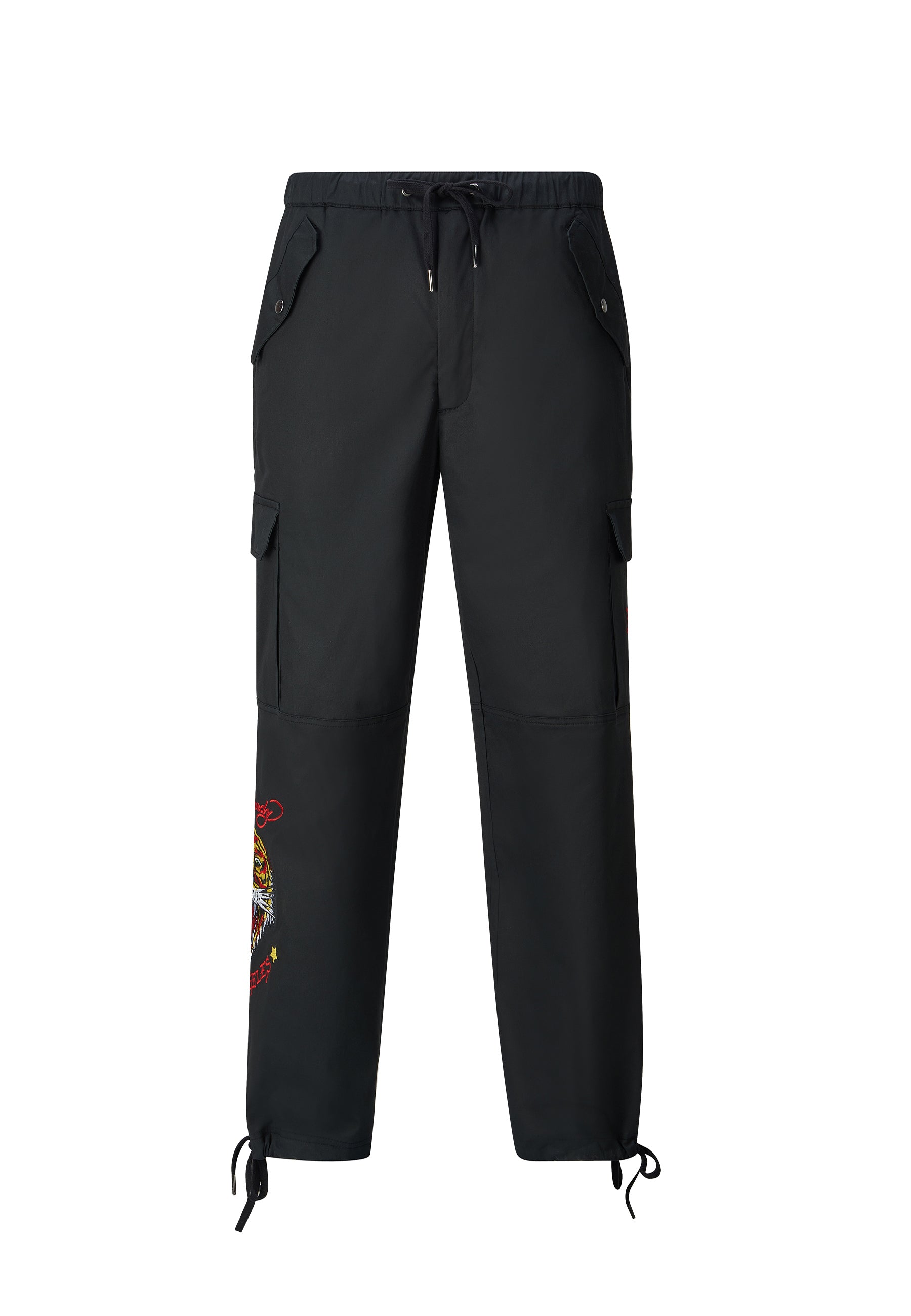 Roar Tiger Cargo Pant-Washed Black features the infamous Eds archive of high-definition embroidered tiger at the lower right side leg, as well as the embroidered Ed Hardy logo on the back zip pocket and on left pocket. These comfy cargos are perfect for chill, day and night vibes.