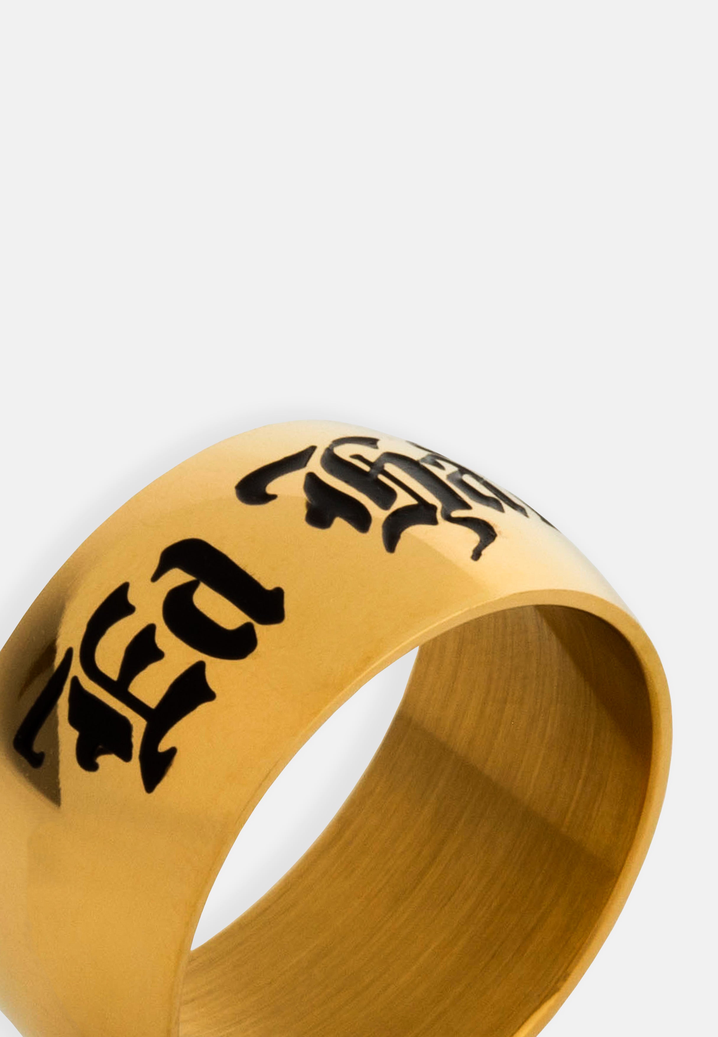 Stainless Steel Thick Engraved Logo Band ring - Gold