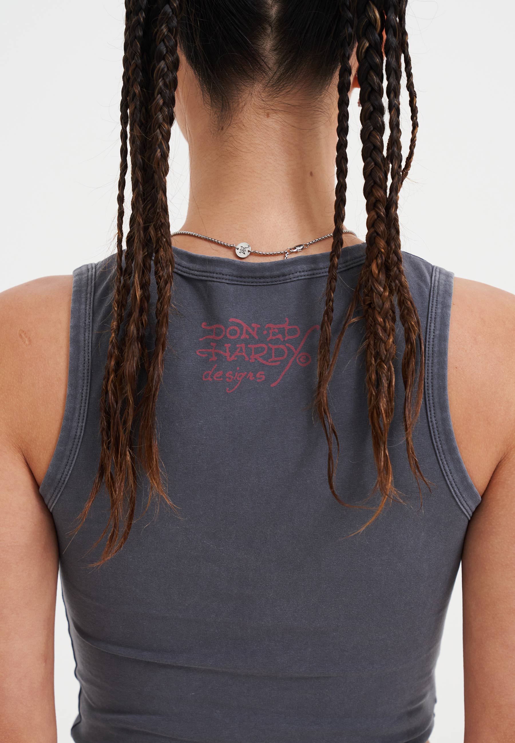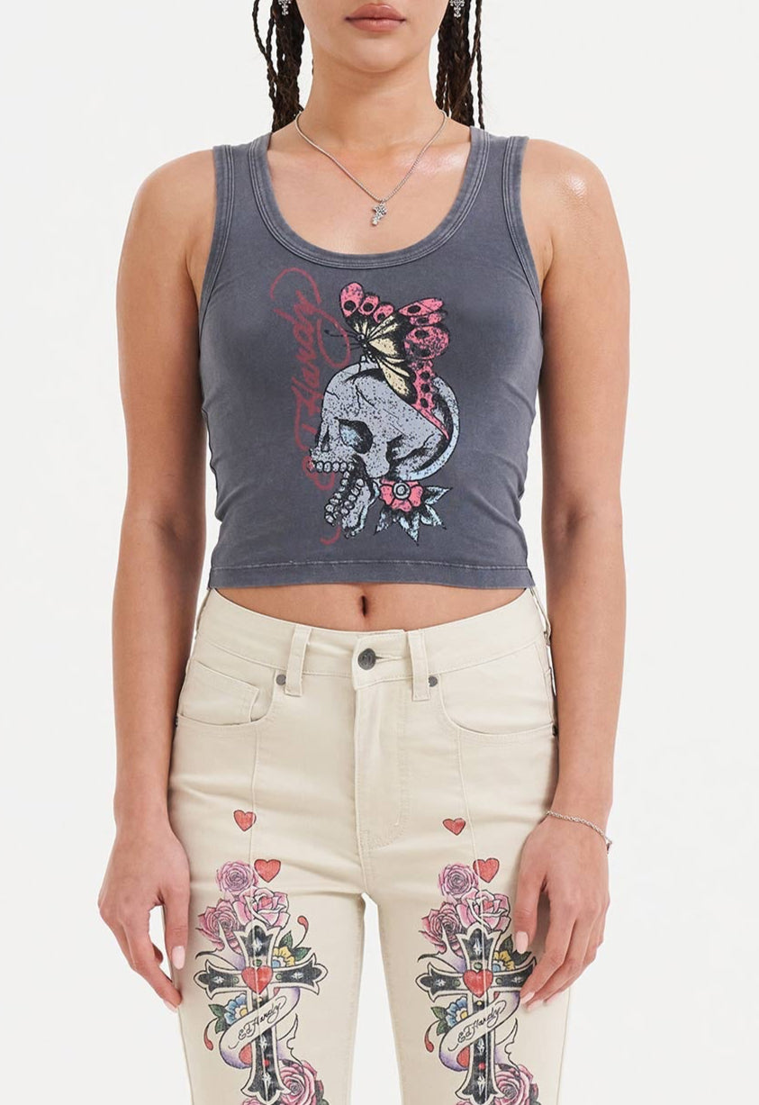 Womens Butterfly Of Death Cropped Vest Top - Charcoal
