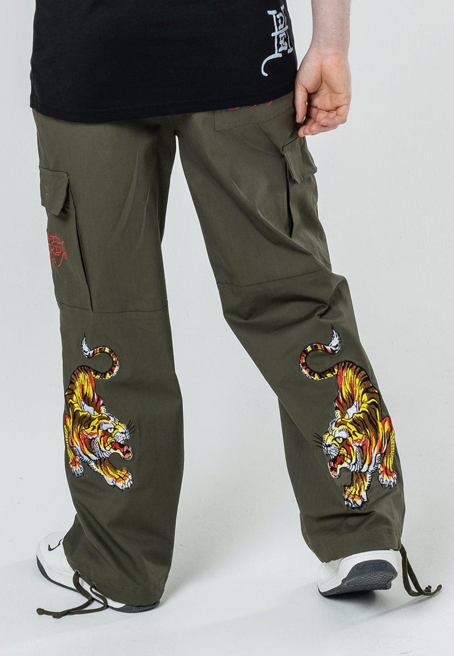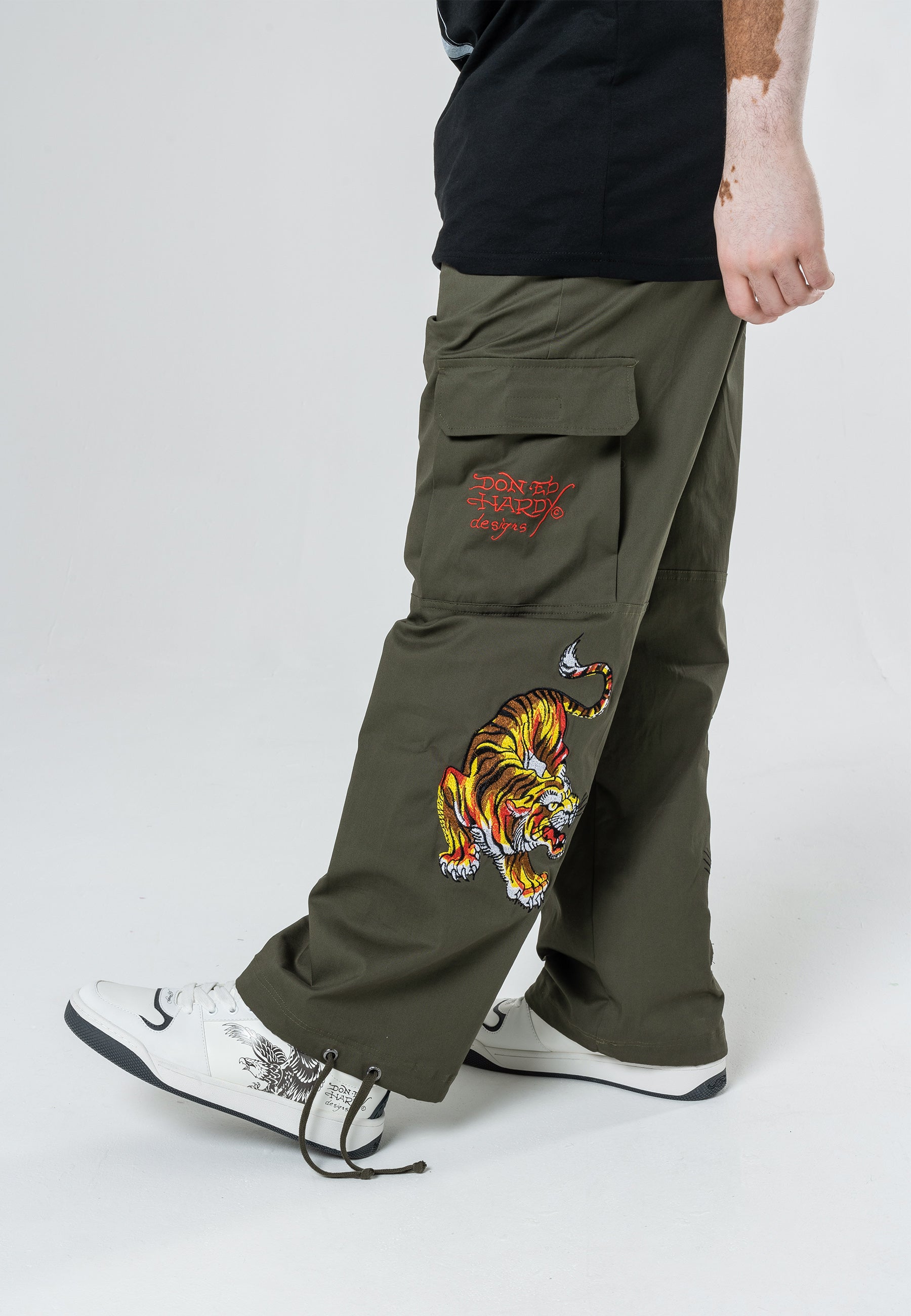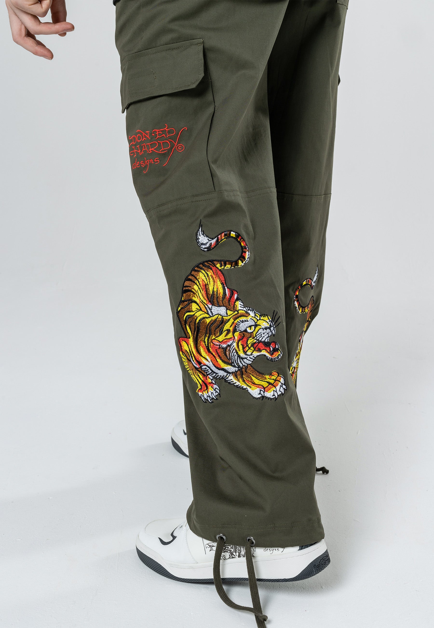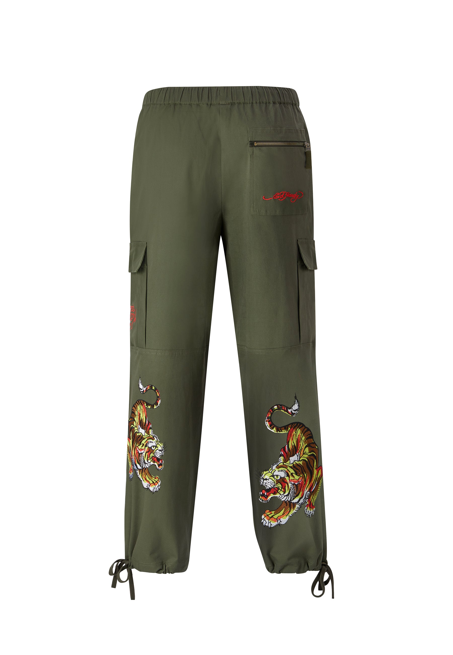 These Double Tiger Cargo Pant-Dusty Olive features the infamous Eds archive of high-definition embroidered Tigers at both lower back legs, as well as the embroidered Ed Hardy logo on the back zip pocket. These comfy cargos are perfect for chill, day and night vibes.