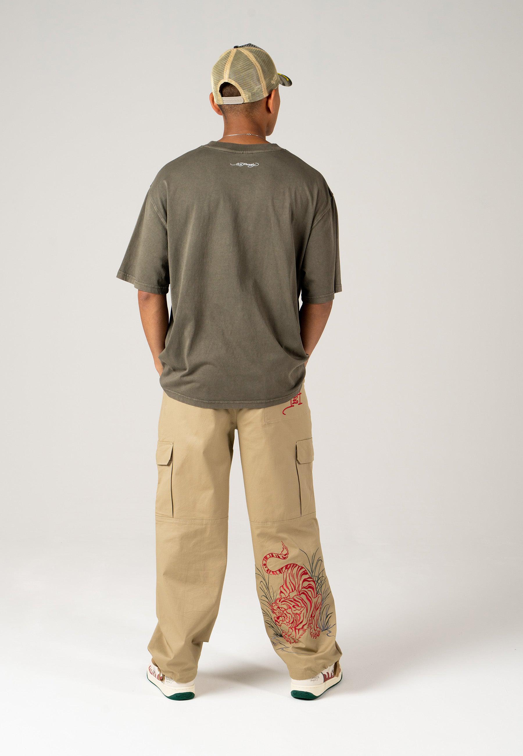These Jungle Tiger Cargo Pant-Pebble features the infamous Eds archive of high-definition embroidered Tiger on the lower back legs, as well as the embroidered Ed Hardy logo on the back zip pocket. These comfy cargos are perfect for chill, day and night vibes.