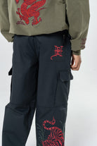 These Jungle Tiger Cargo Pant-Washed Black features the infamous Eds archive of high-definition embroidered Tiger on the lower back legs, as well as the embroidered Ed Hardy logo on the back zip pocket. These comfy cargos are perfect for chill, day and night vibes.