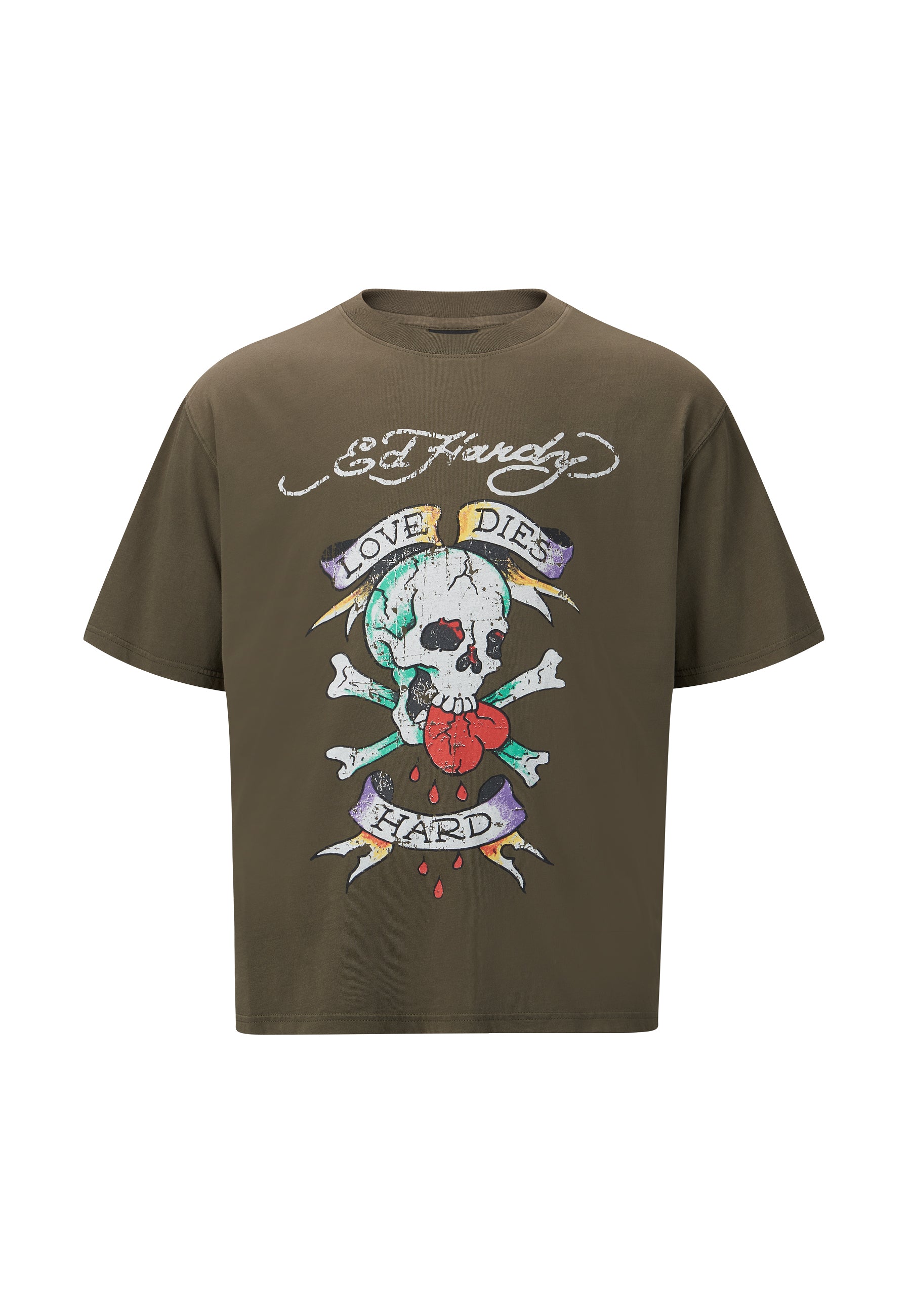 Mens Love-Dies-Hard Oversize T-Shirt - Khaki