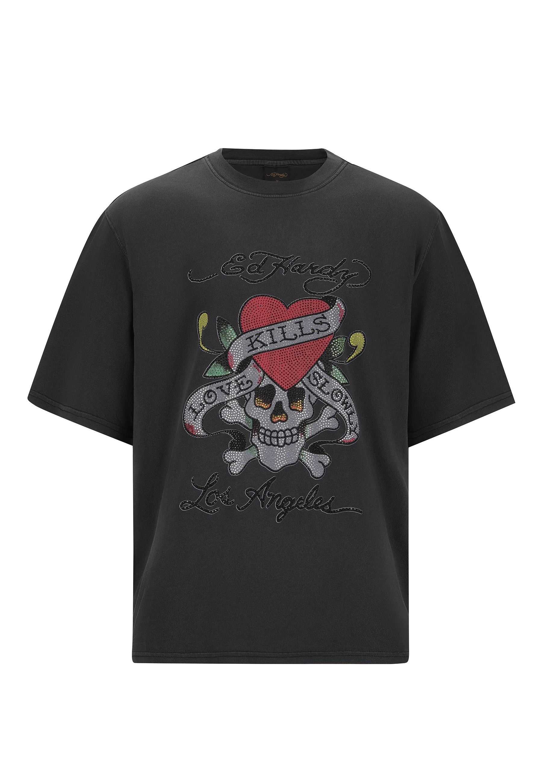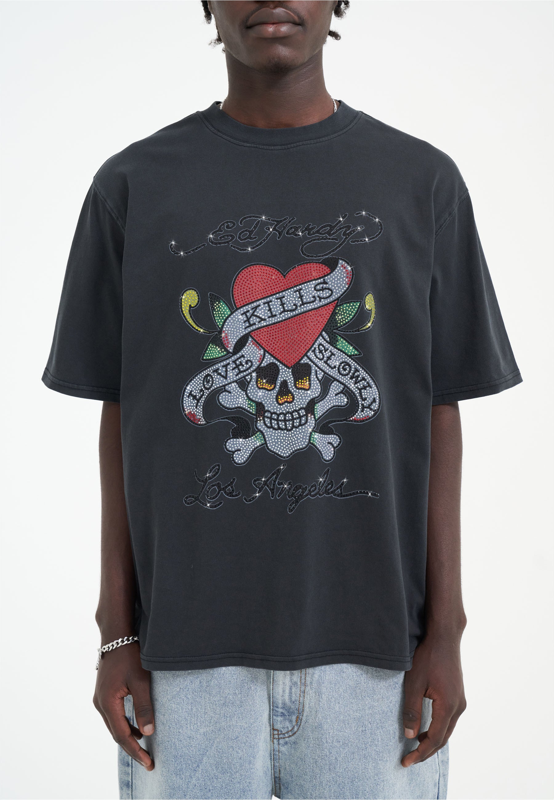 Mens Love Kills Slowly Diamante Tshirt - Black