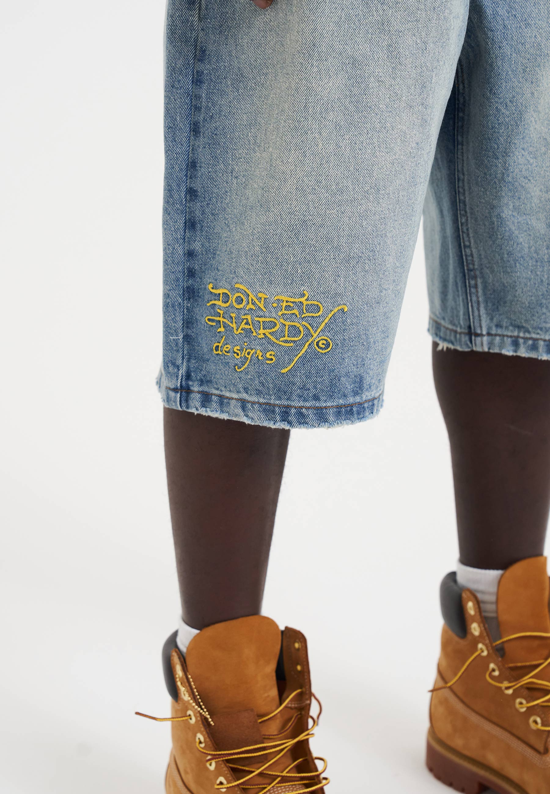 Mens Medusa Drag Denim Skater Jorts Shorts - Bleach