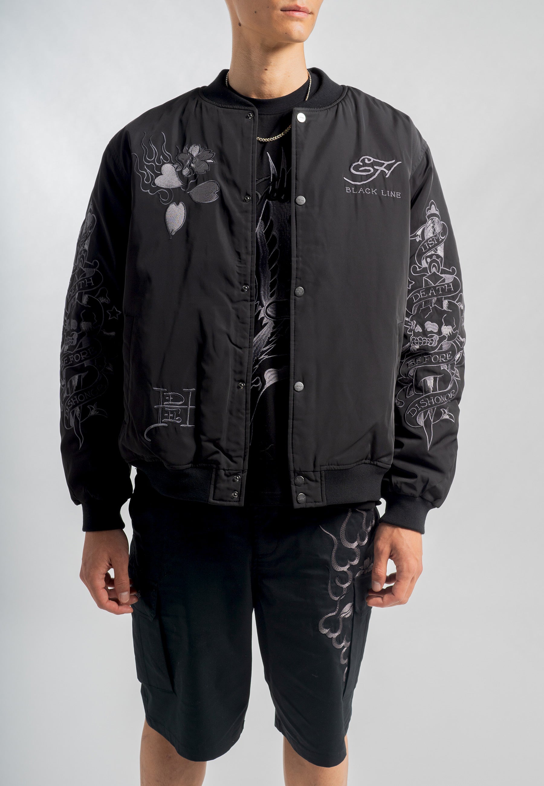 Embrace the essence of timeless sophistication with the Men's Snake & Dagger Tonal Bomber Jacket from our A/W Drop.