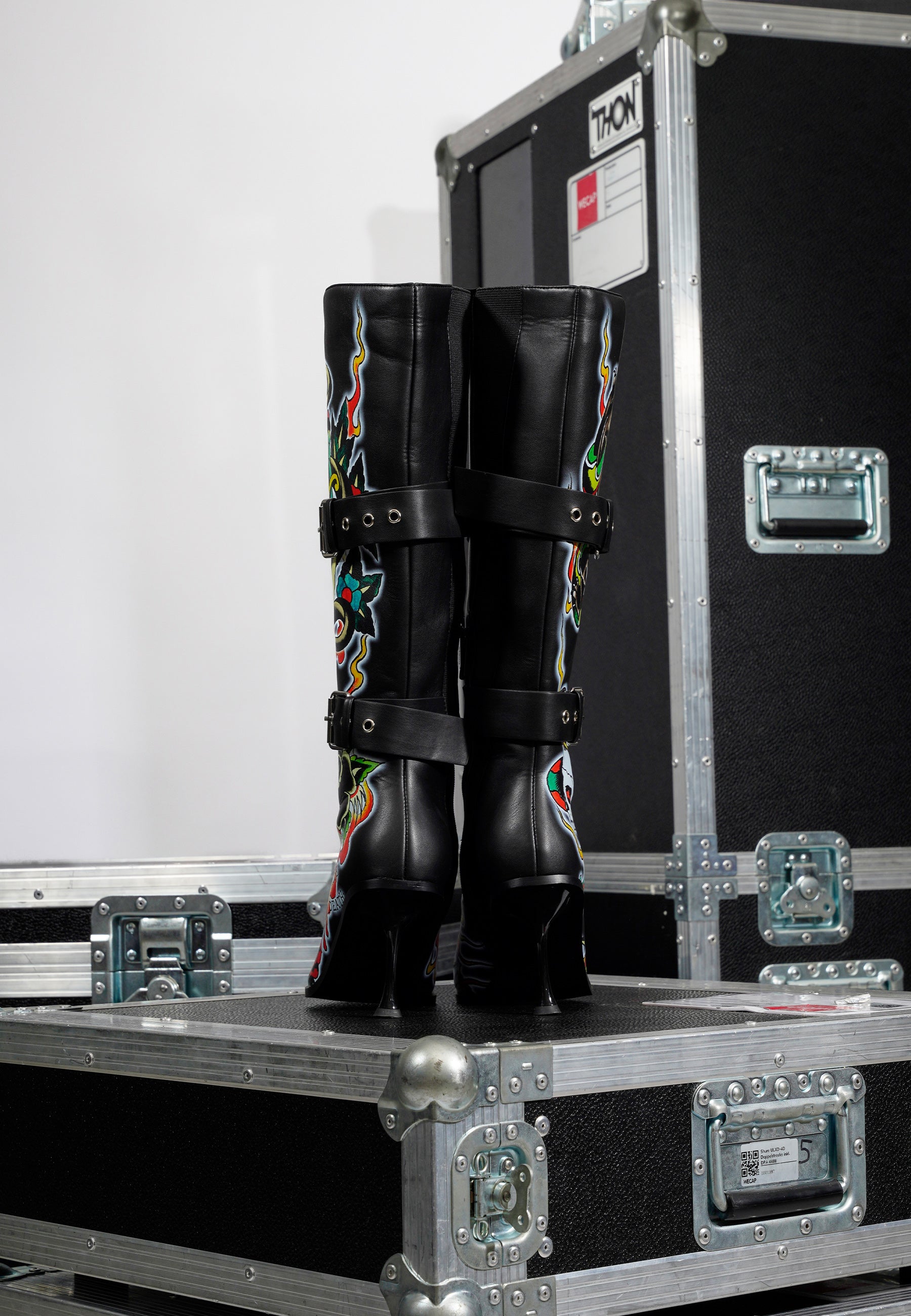 The Namilia x Ed Hardy Tattoo Belt Boots are for those who dare to be different.