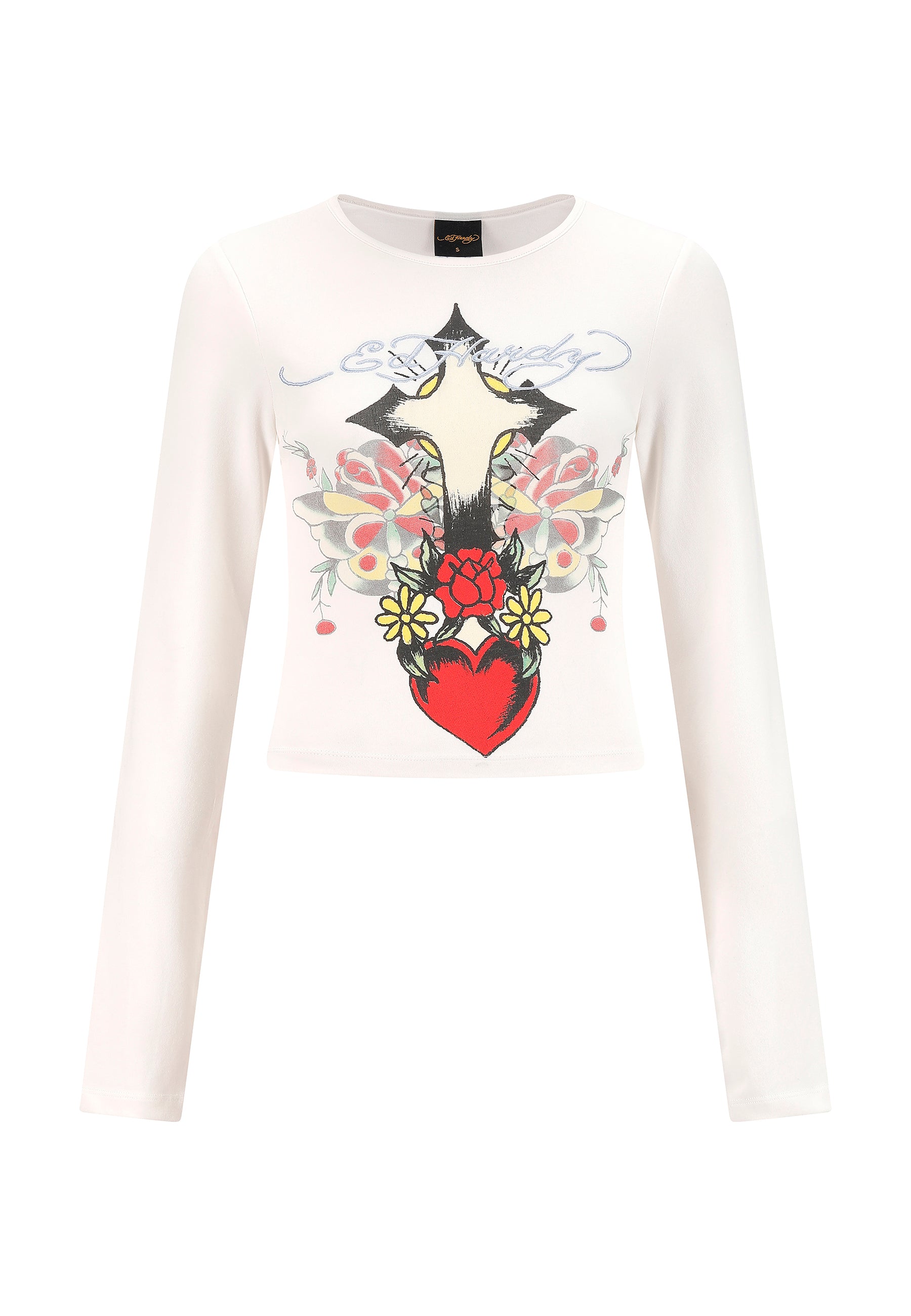 Womens Heart Cross Long Sleeve T-Shirt - White