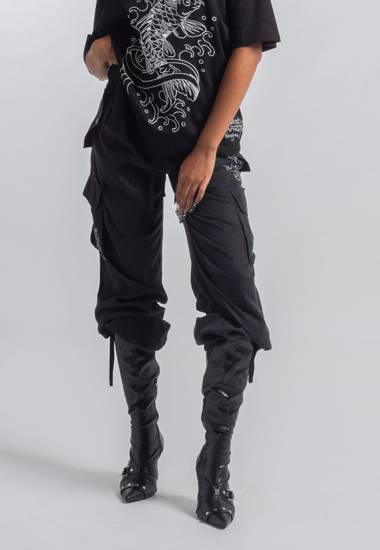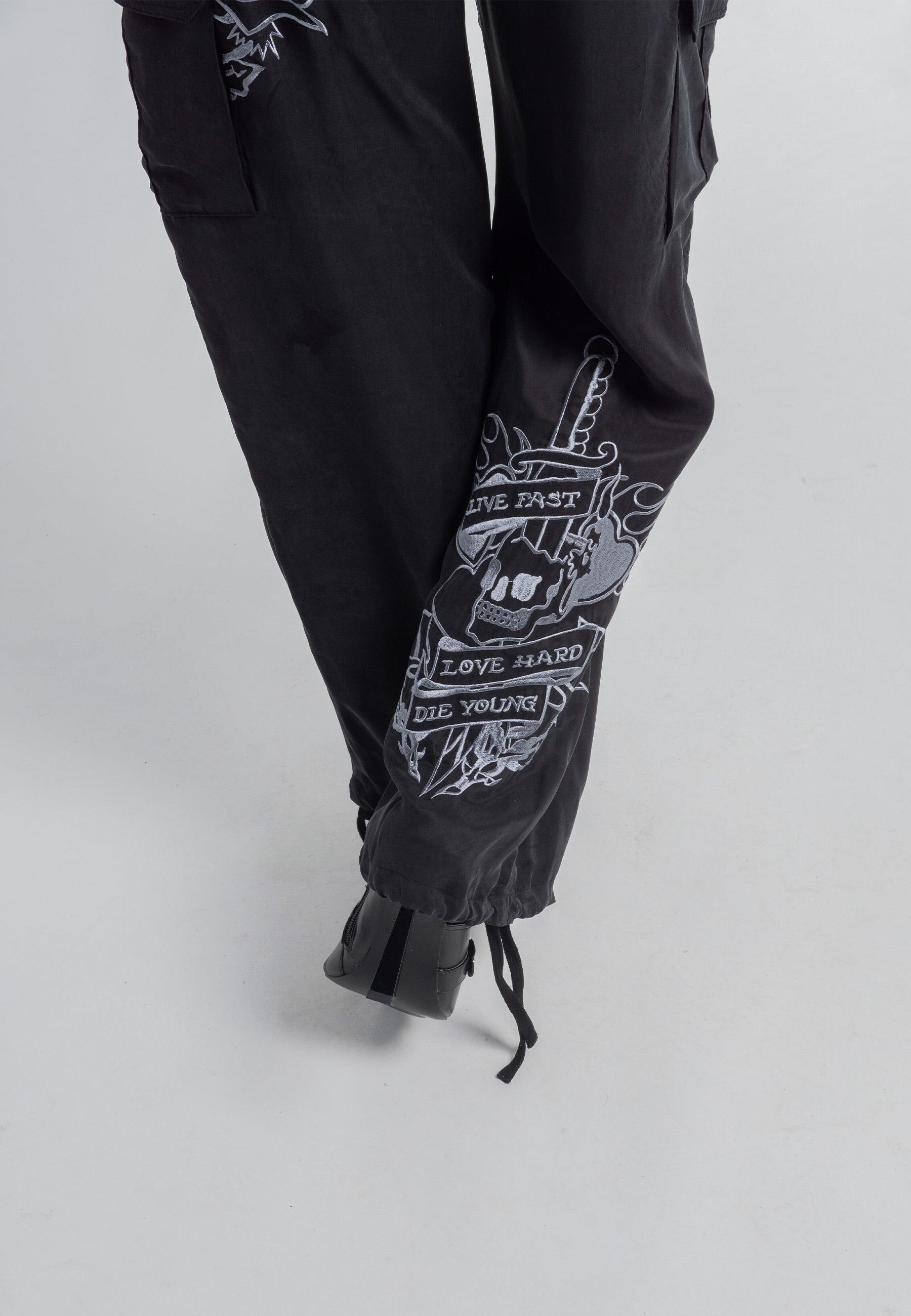 Womens Live Fast Cargo Trousers - Black