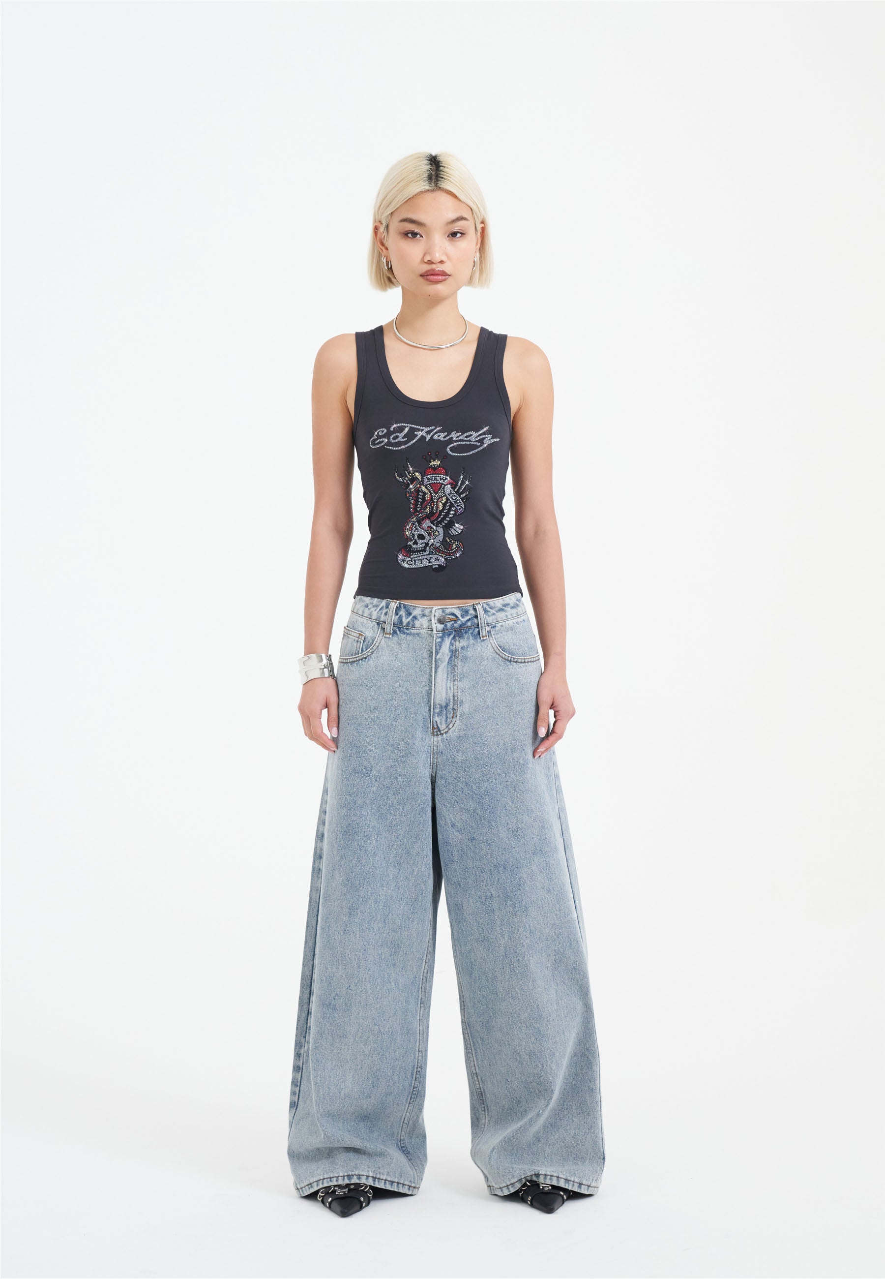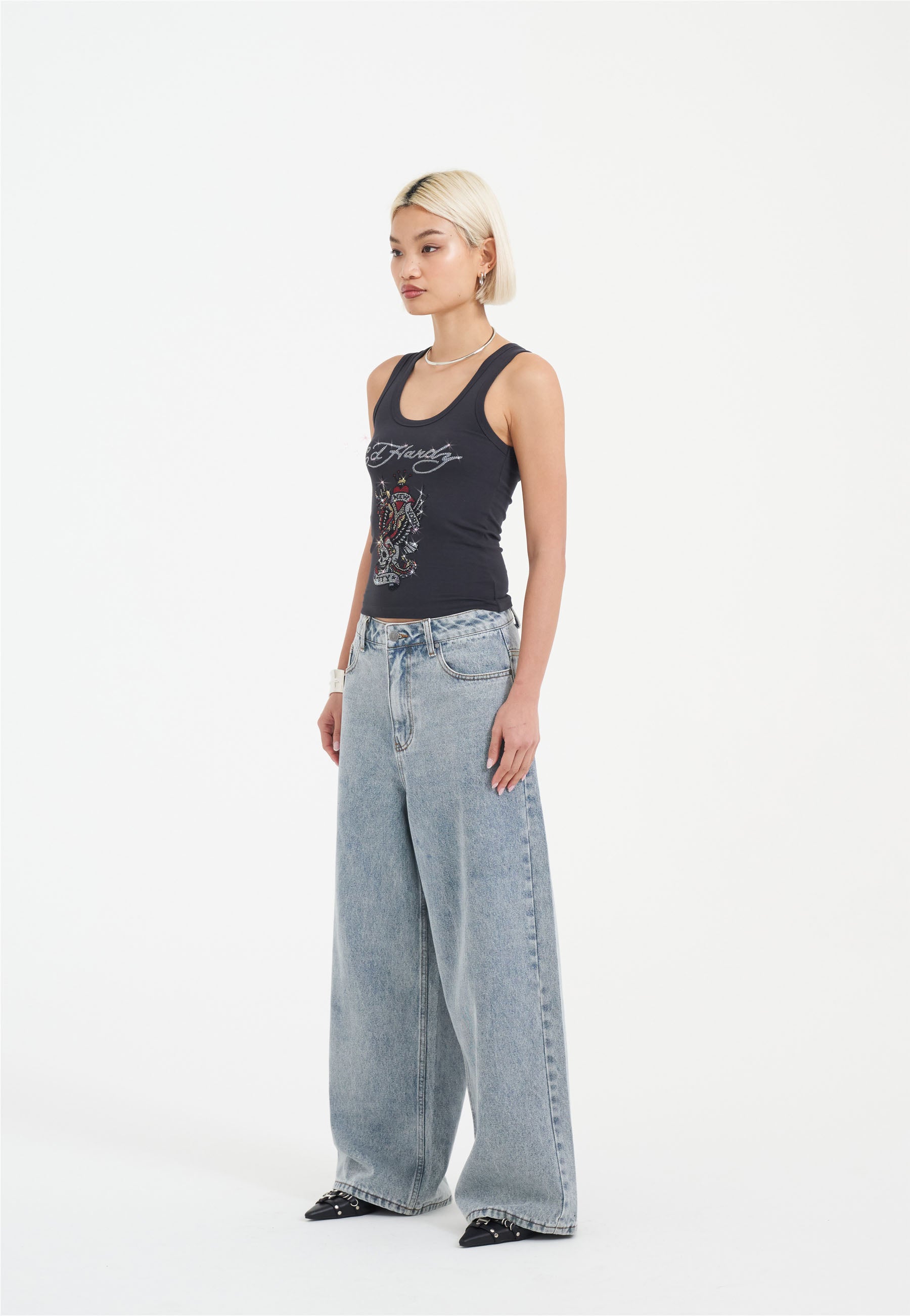 Hailing our inspiration from Punk design, Ed layers full-colour graphics, diamante applique and printed Ed Hardy logo placements in this bold new SS24 style.