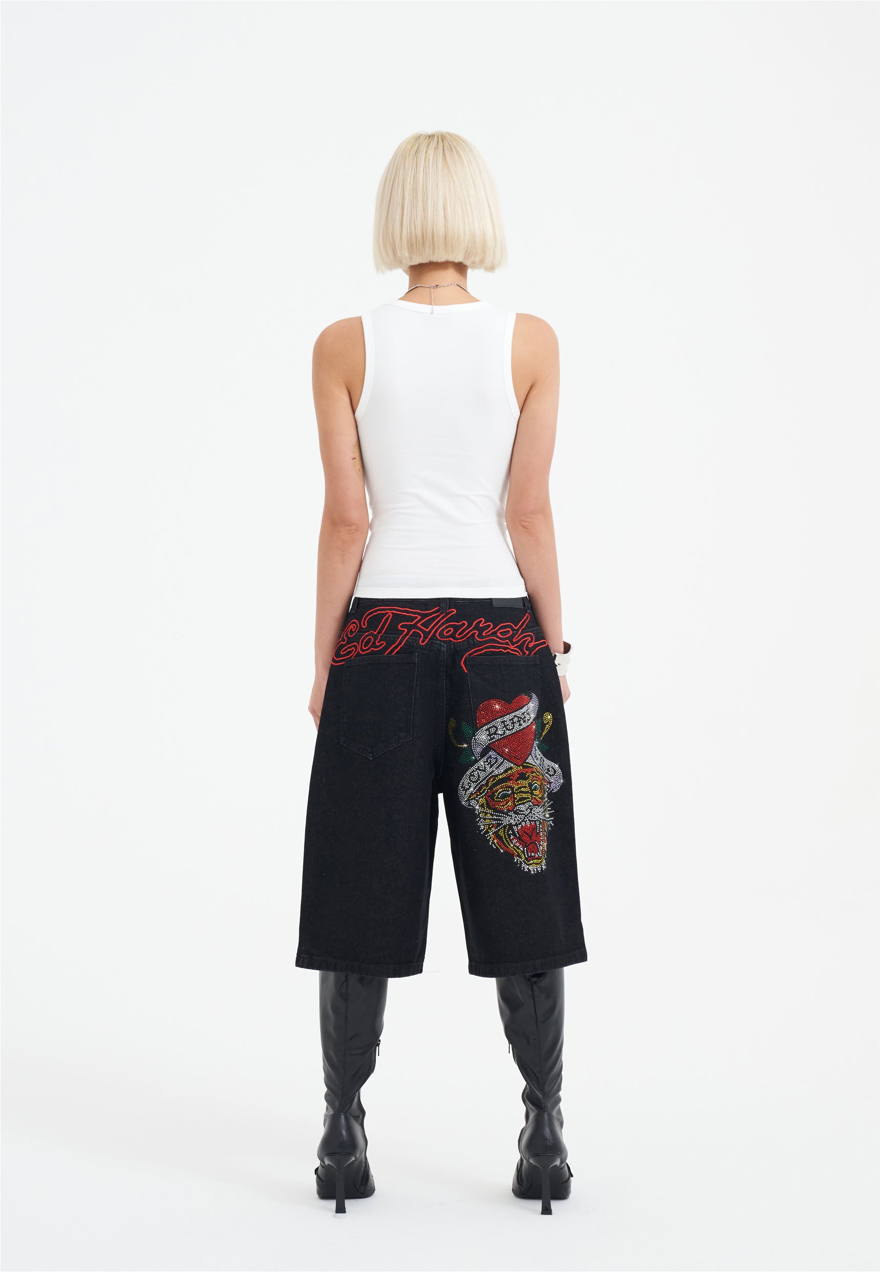 Features Ed's iconic designs, re-worked for a new season in full-colour diamante graphics.