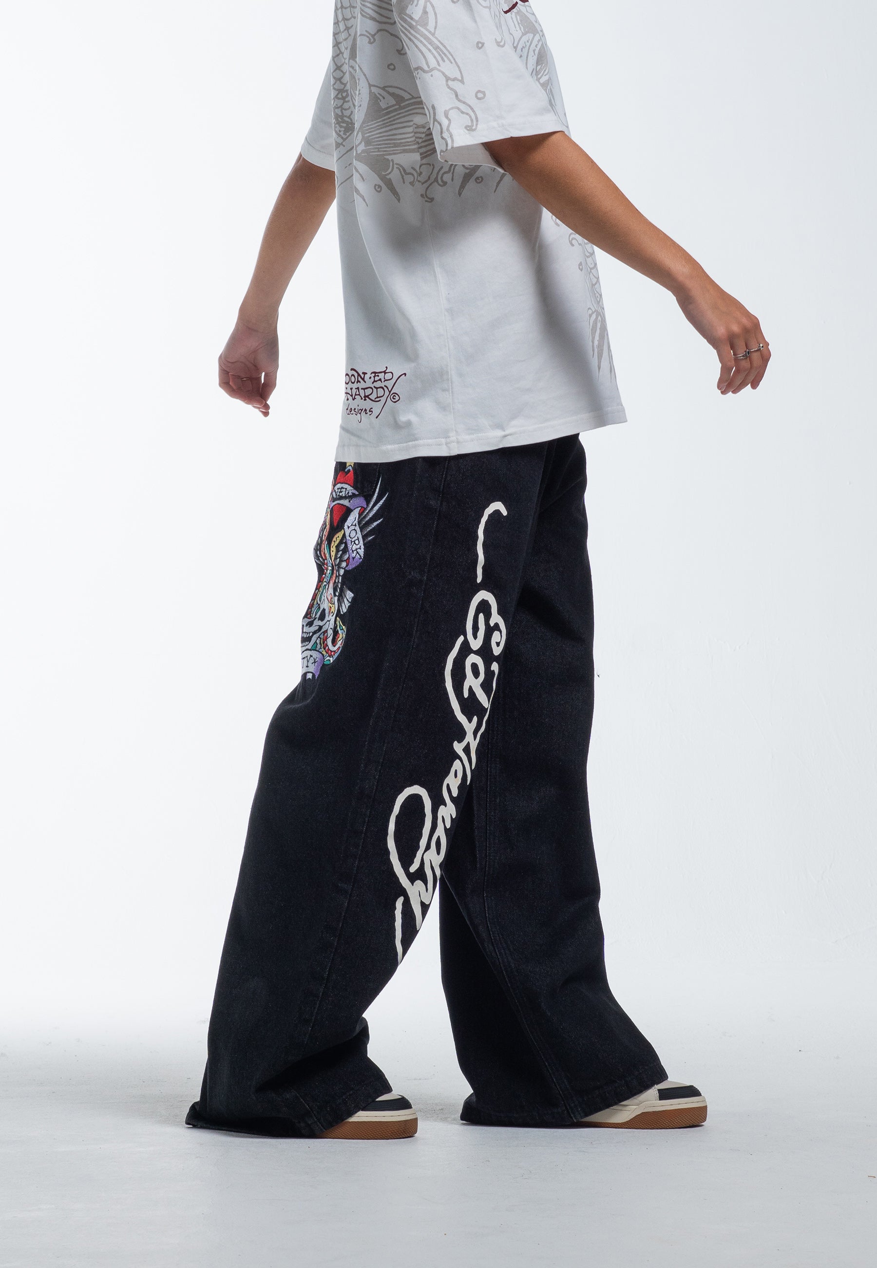 Womens Ny City Xtra Oversized Denim Trousers Jeans - Black