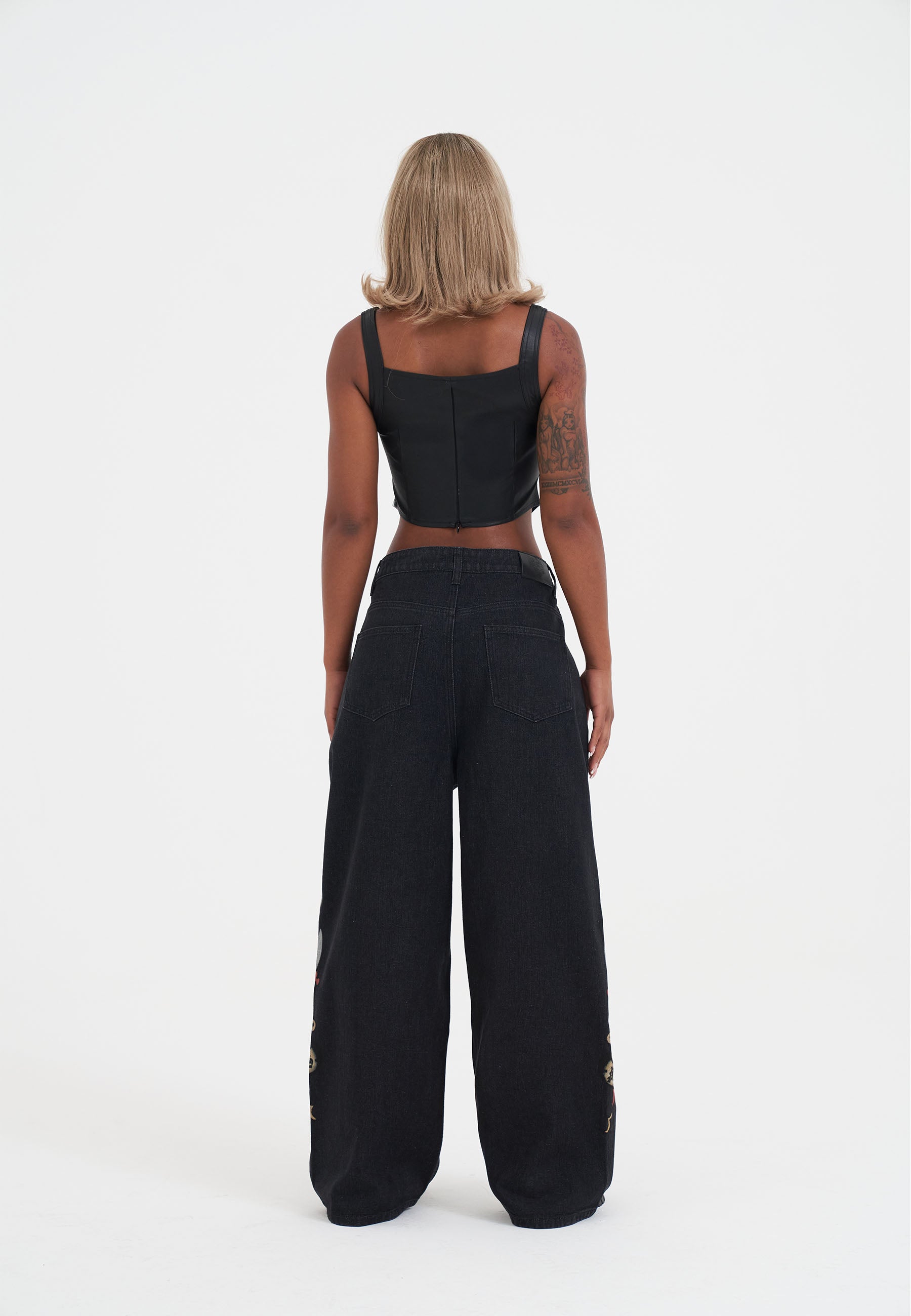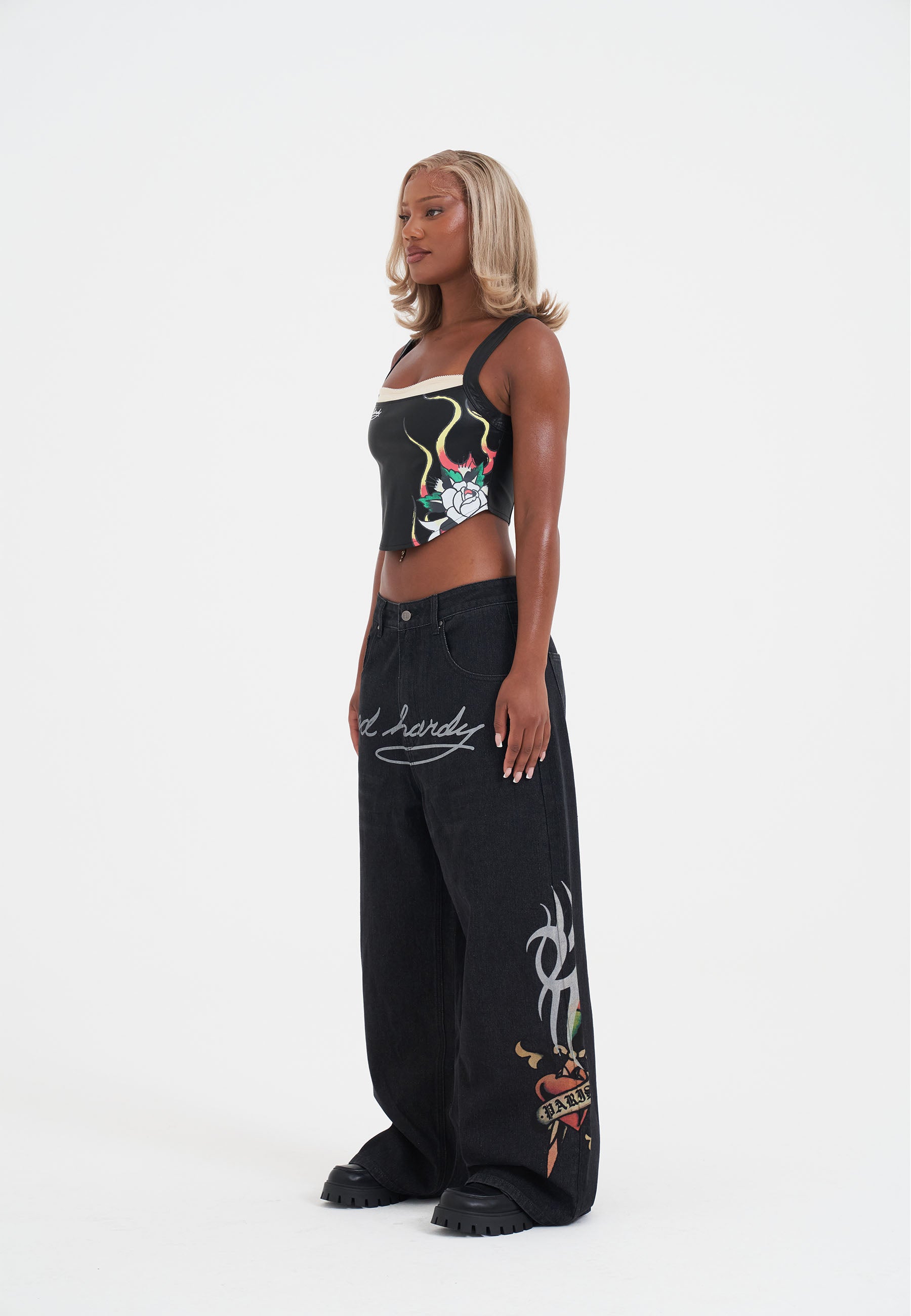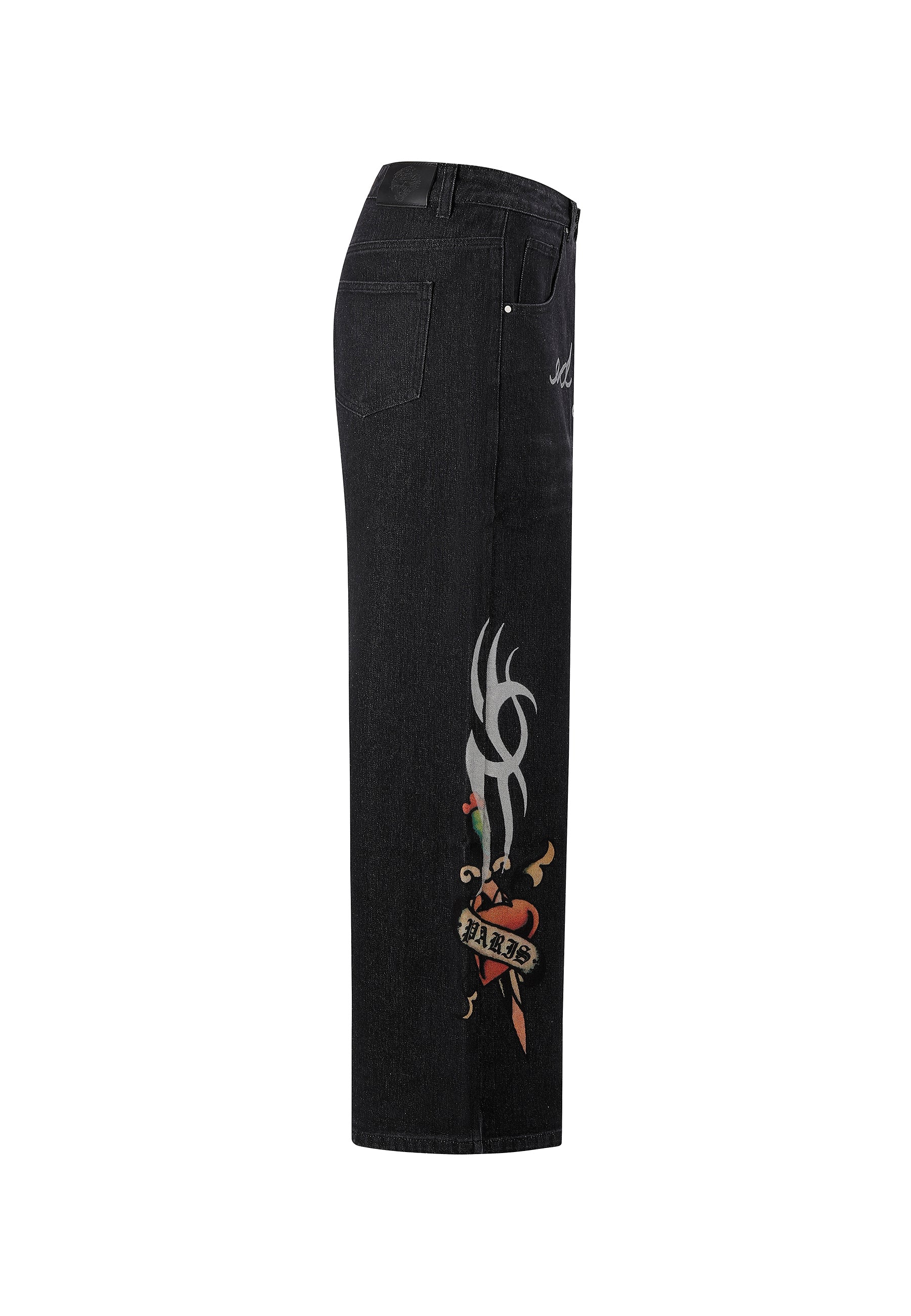 - VINTAGE WASHED DAGGER HEART PRINT TO LEGS