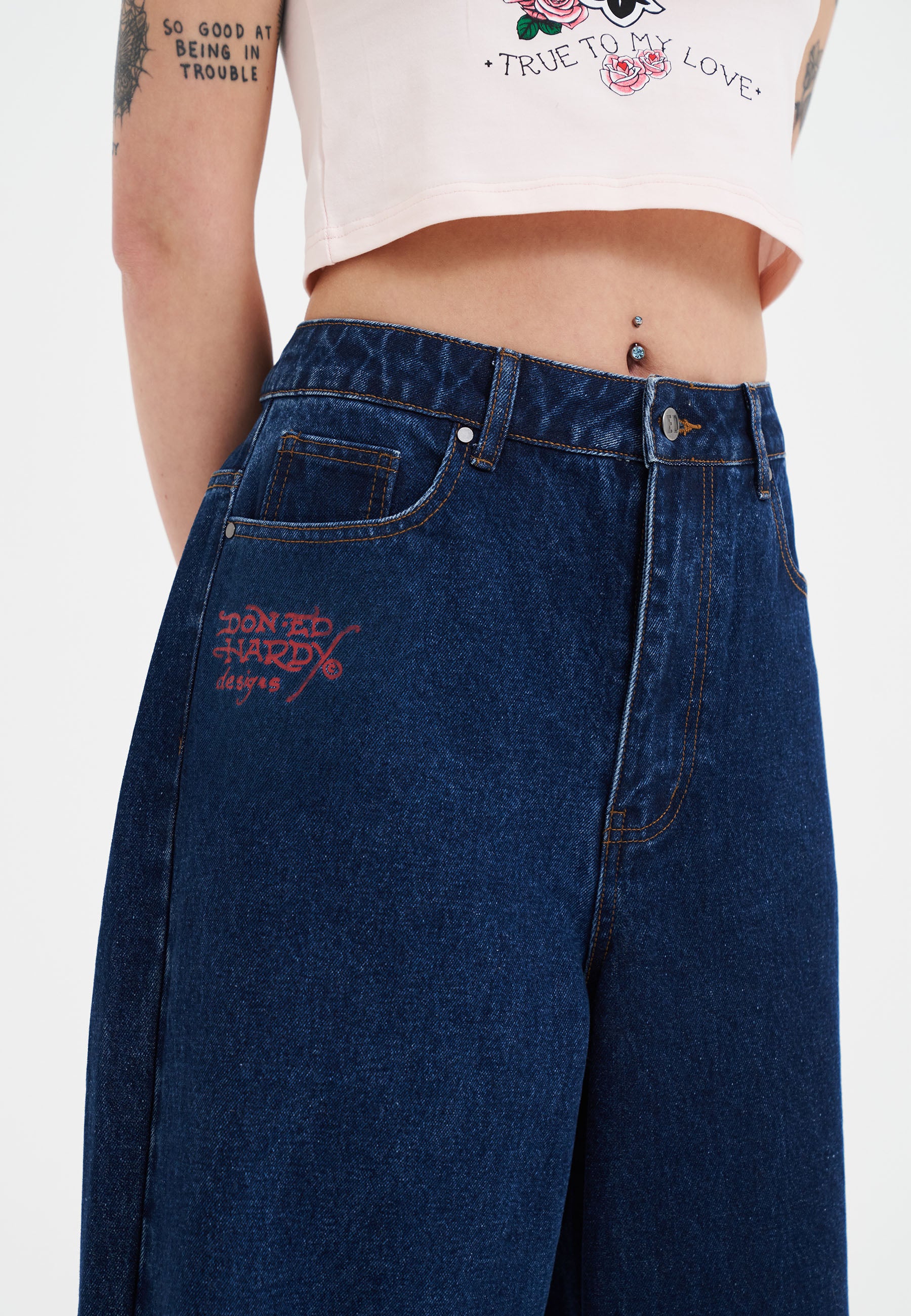 - Script Ed Hardy embroidery logo at the back in red