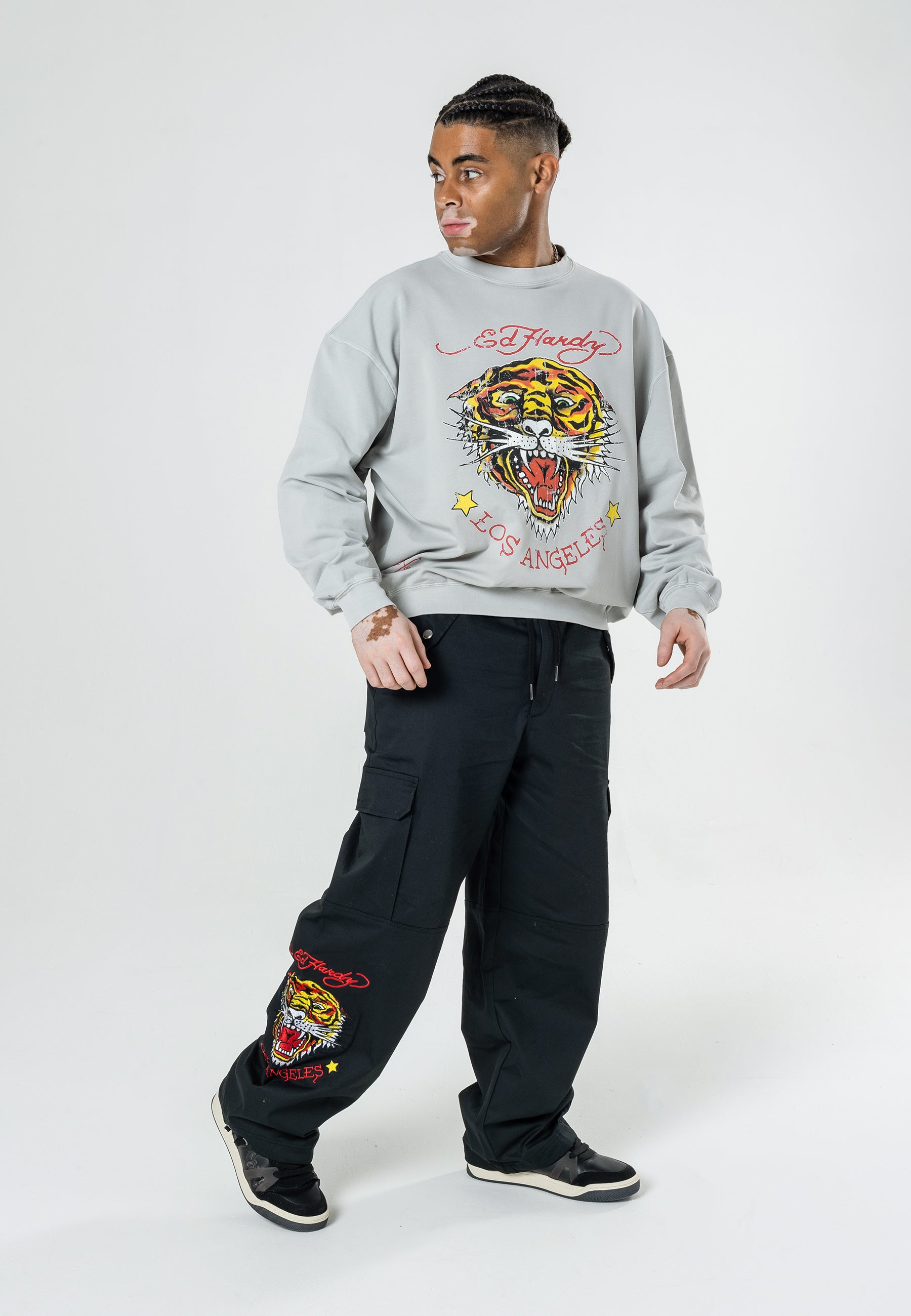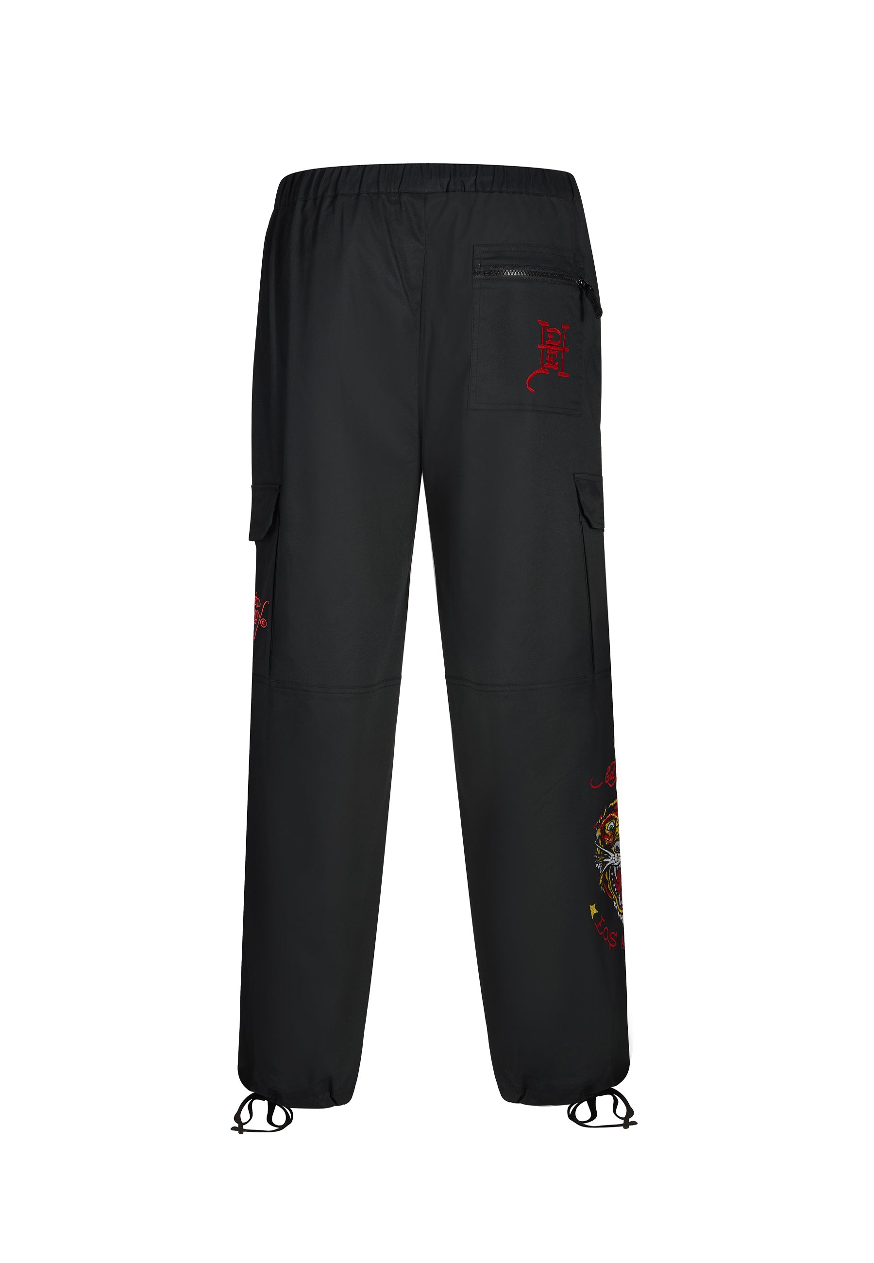 Mens Roar Tiger Cargo Pants Trousers - Black